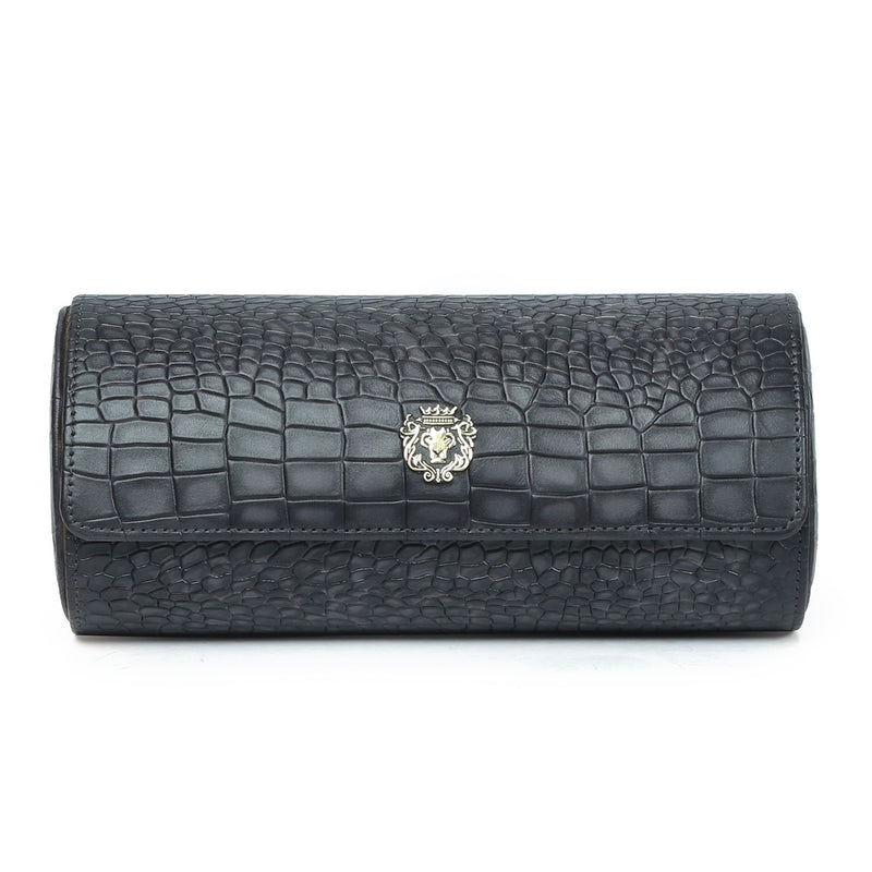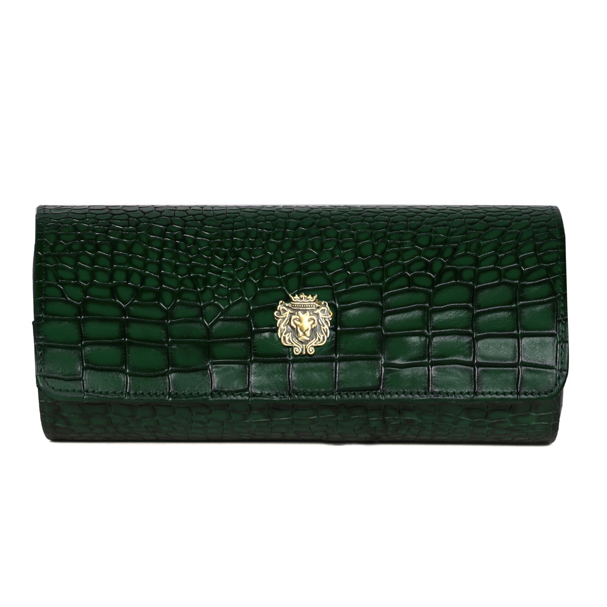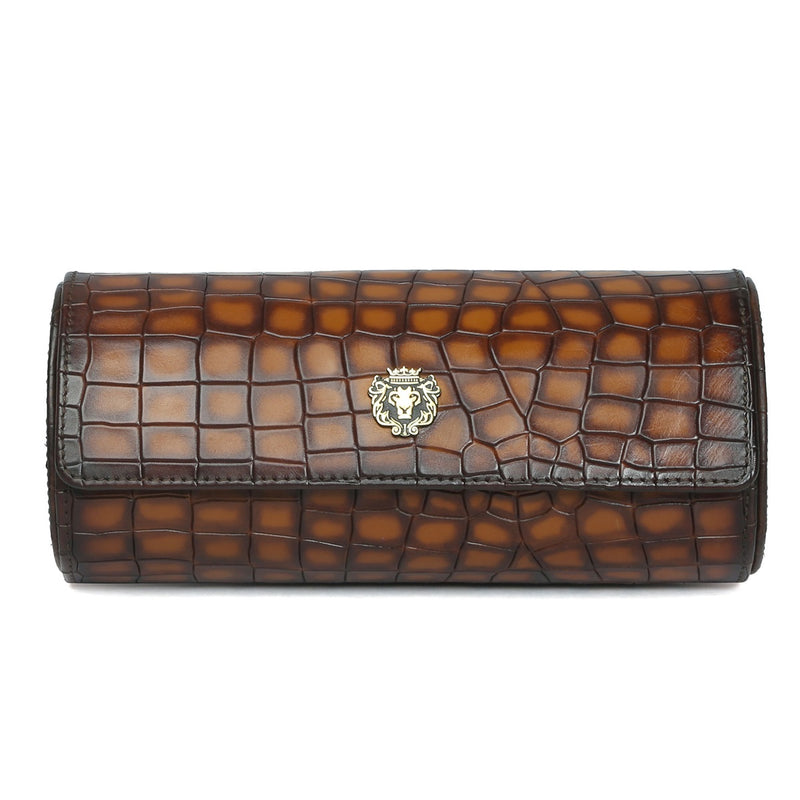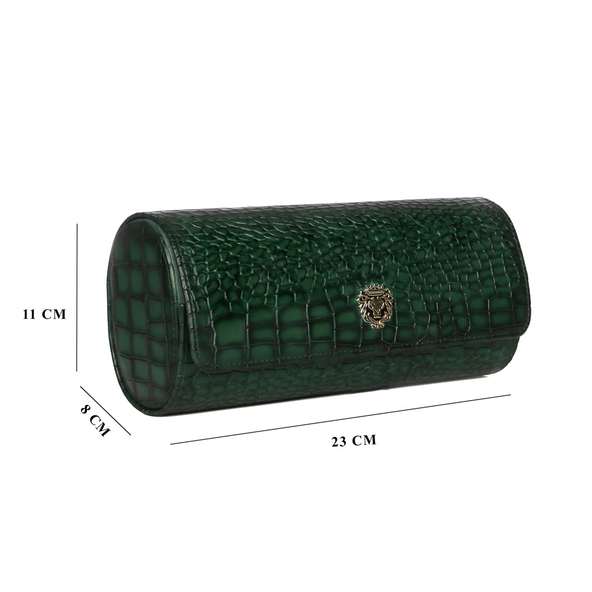 Metal lion Smokey Finish Green Croco Textured Leather Wrist Watch Roll