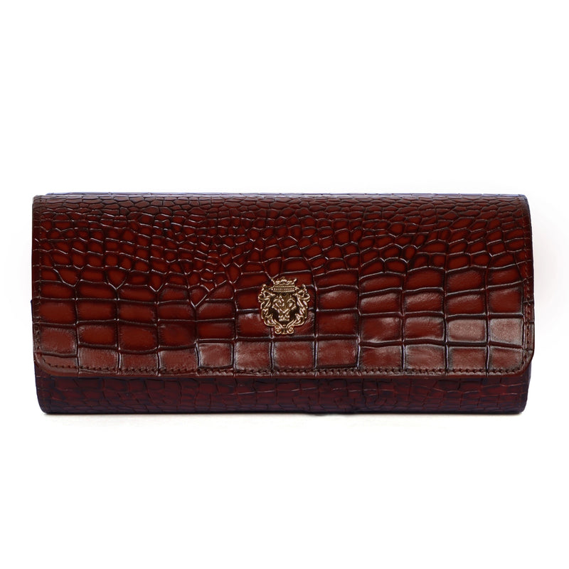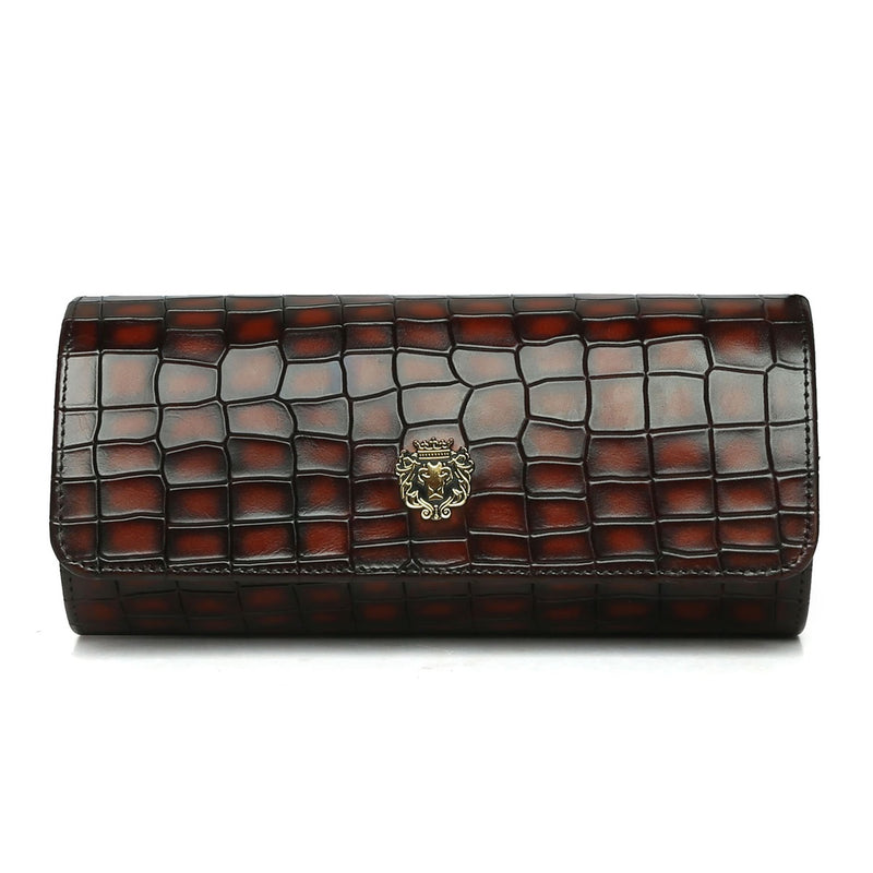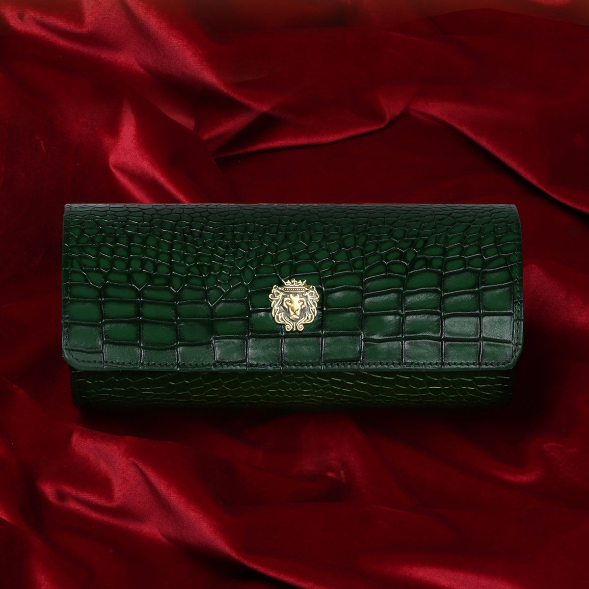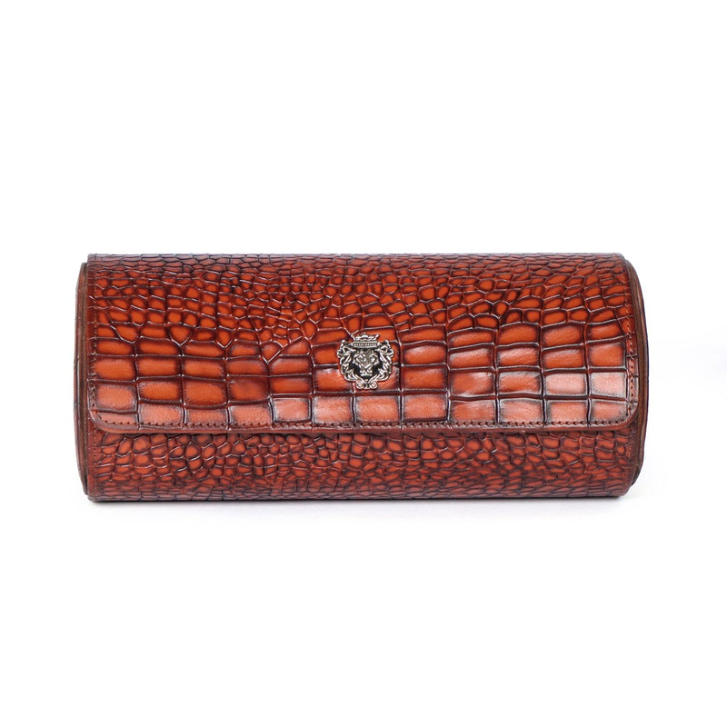 Metal lion Smokey Finish Green Croco Textured Leather Wrist Watch Roll