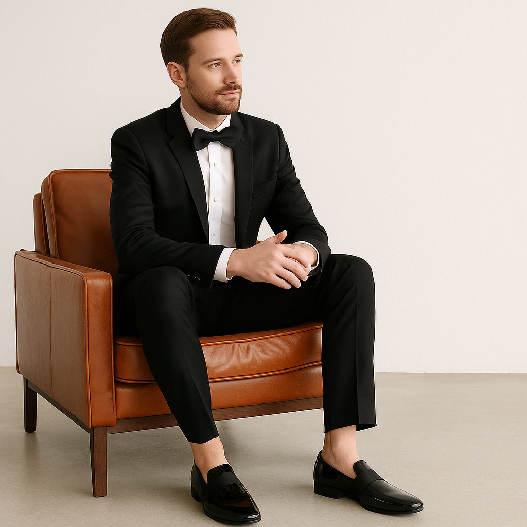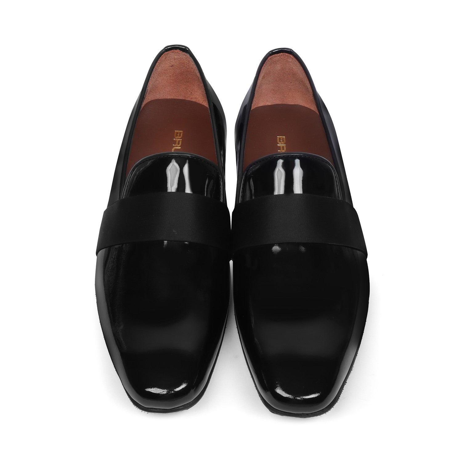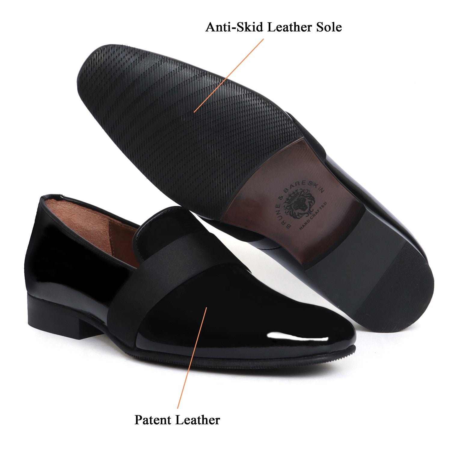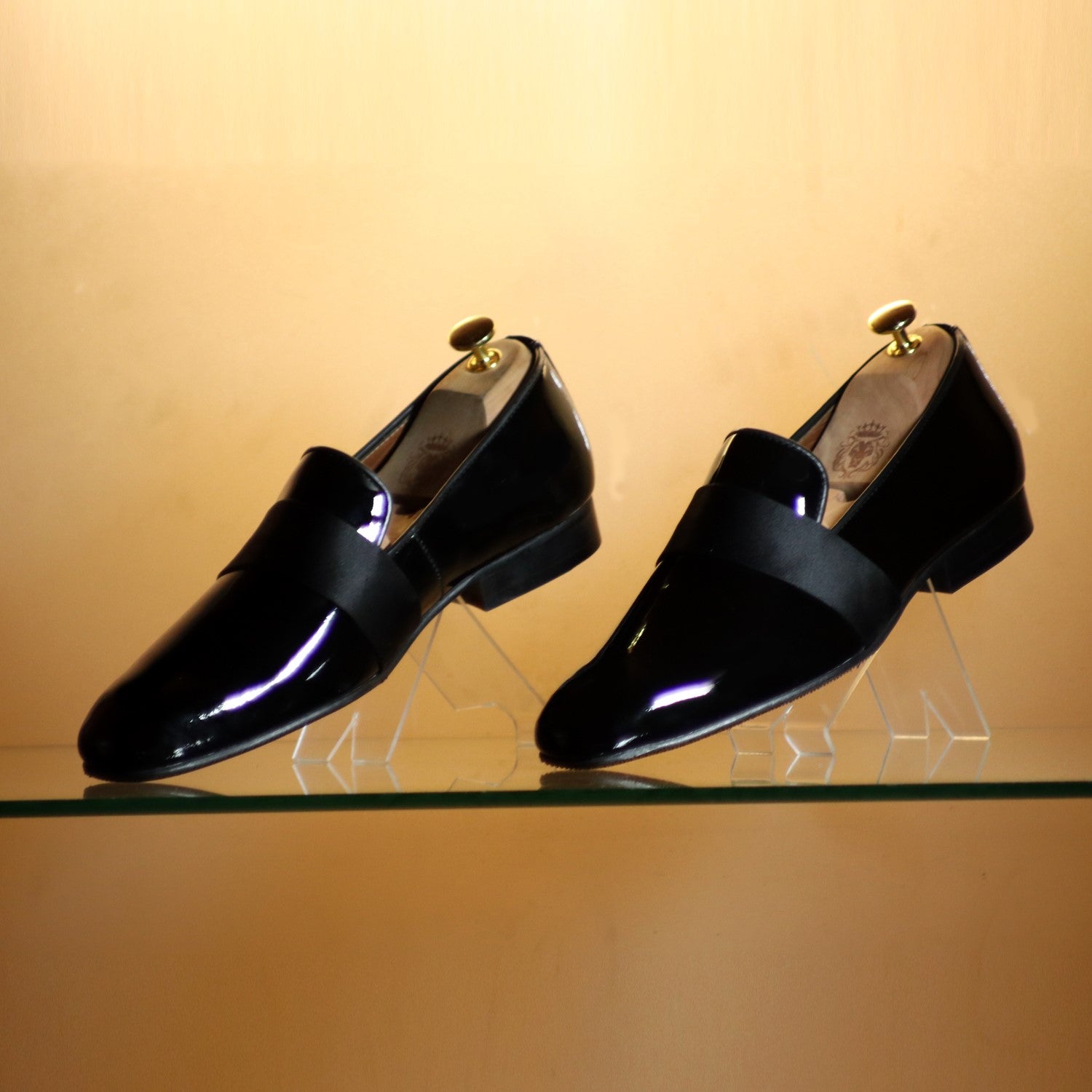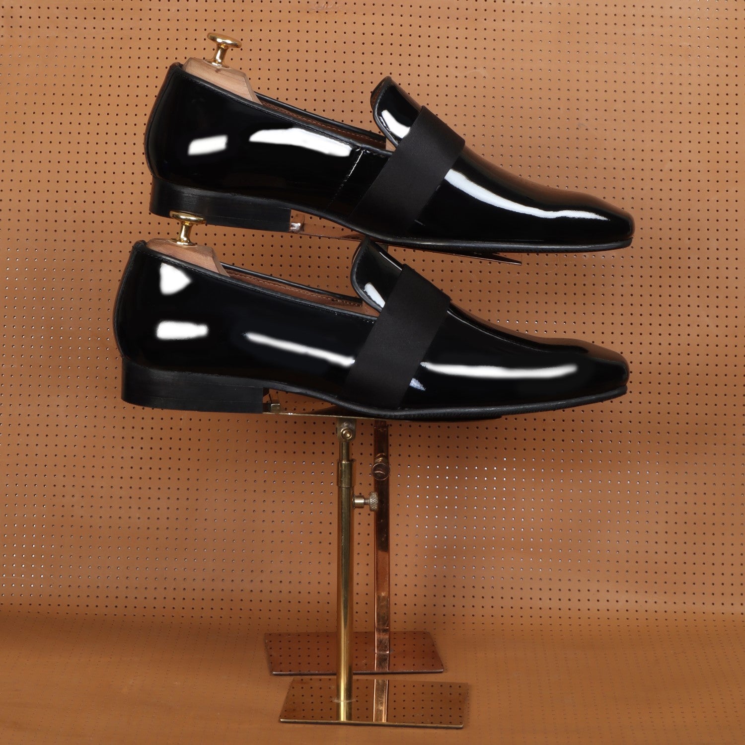 An elegant pair of Black Shiny Patent Leather Slip-On shoes is a must-have for every well dressed man. This Brune & Bareskin black patent shiny leather shoes is an outcome of class apart craftsmanship and the strap at middle provides the extra oomph in it's style statement. Slip-On styling makes it a perfect match for on the go folks. This smooth Hand Made Patent Leather Black Slip-on with upper strap offered by "BRUNE & BARESKIN" gives an elite style and debonair look. This will be an amazing addition to your collection. The padded insole is adequately comfortable to wear these for a long time. Textured Non-Slip rubberized outsole with upraised heel provides the classic look and durability at the same time. Wear it with formal to casual and you are good to stand out of crowd. You can change the color and also ads your initials with our bespoke services.