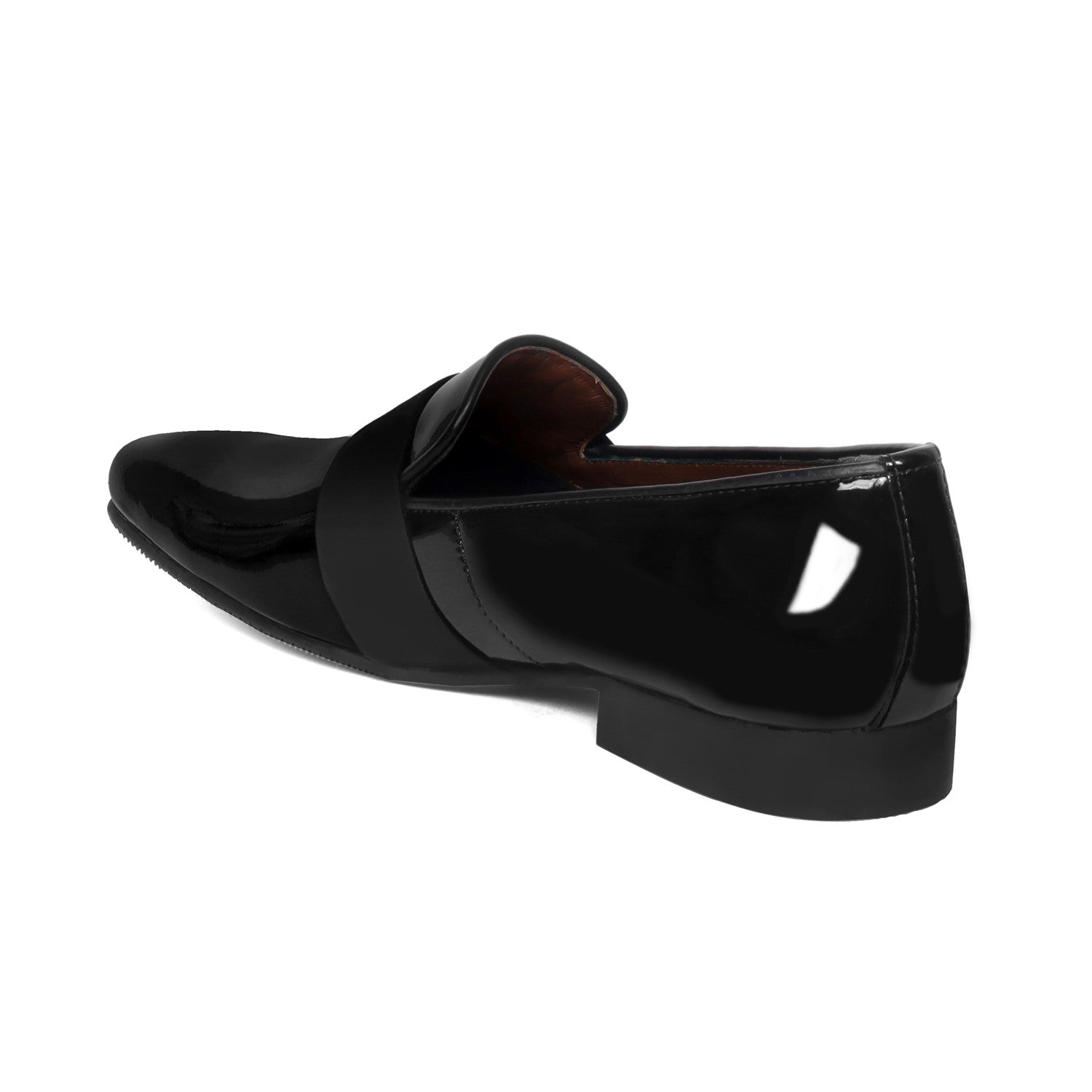 Black Patent Leather Slip-On Shoes with Mid-Strap Loafer Design