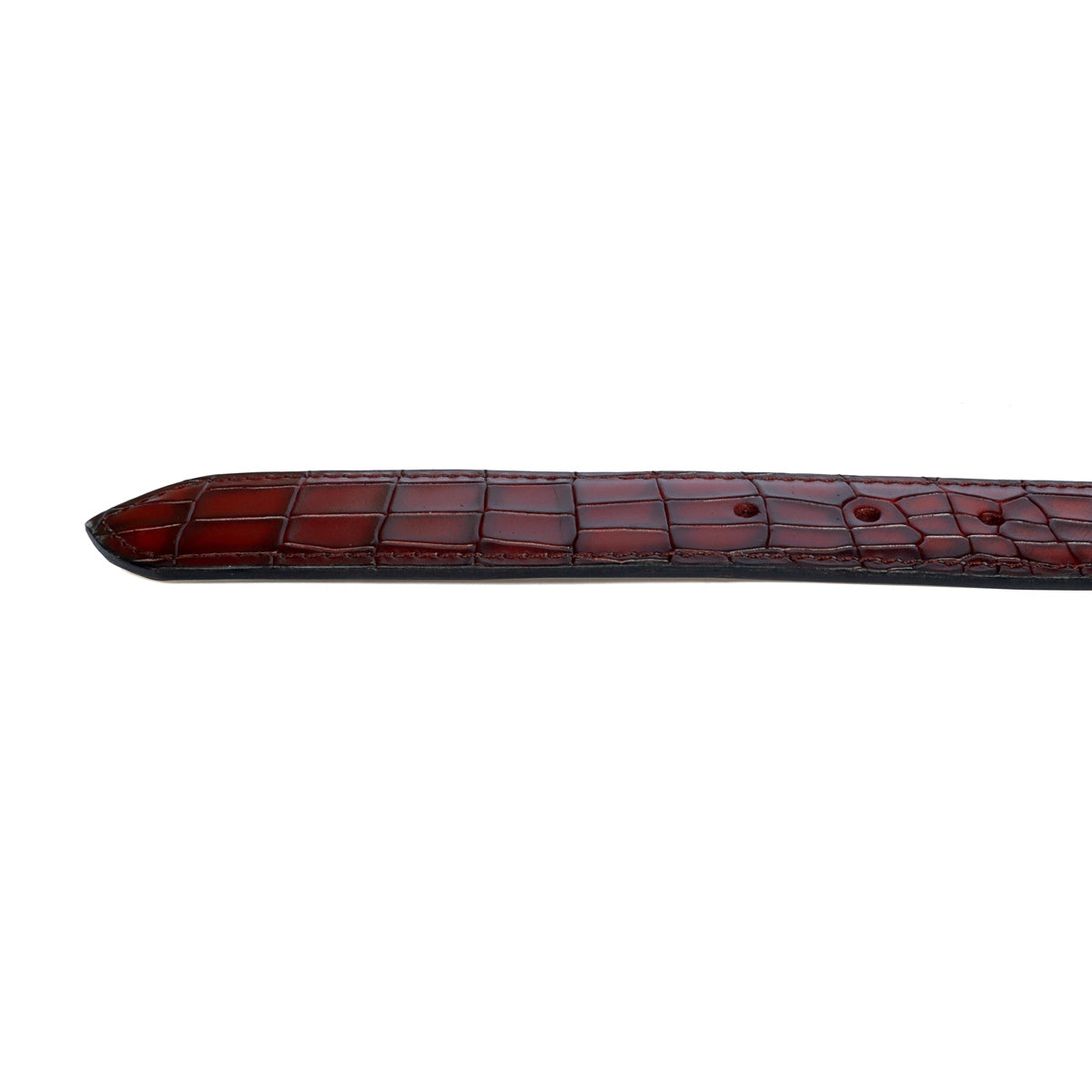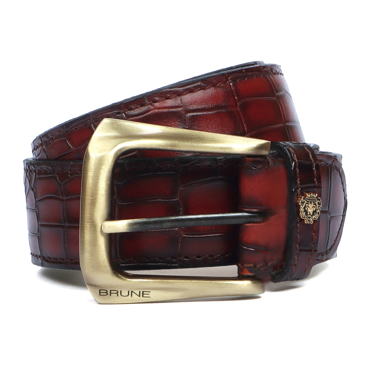 Smokey Finish Cognac Belt in Croco Textured Leather With Smokey Gold Slant Shape Buckle