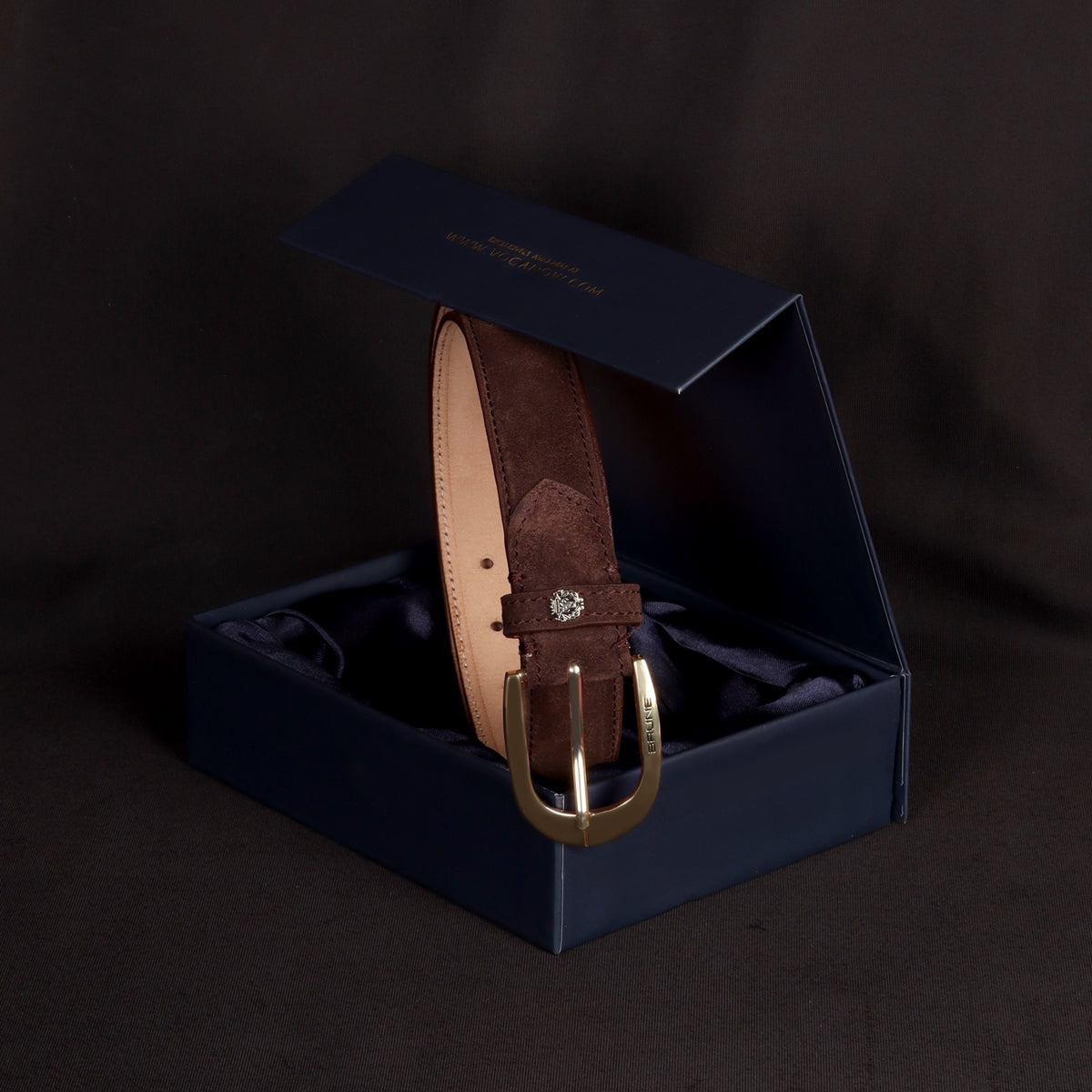 Mini Lion Dark Brown Suede Leather Oval Shape Buckle Men's Formal Belt By Brune & Bareskin