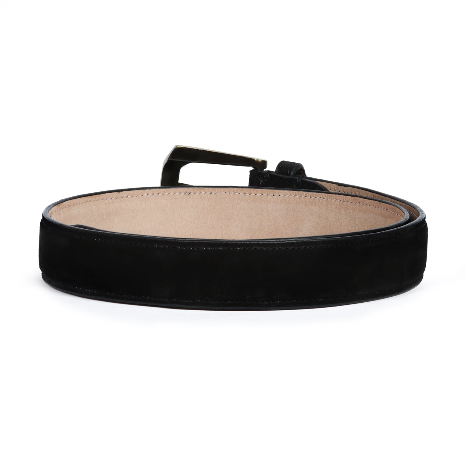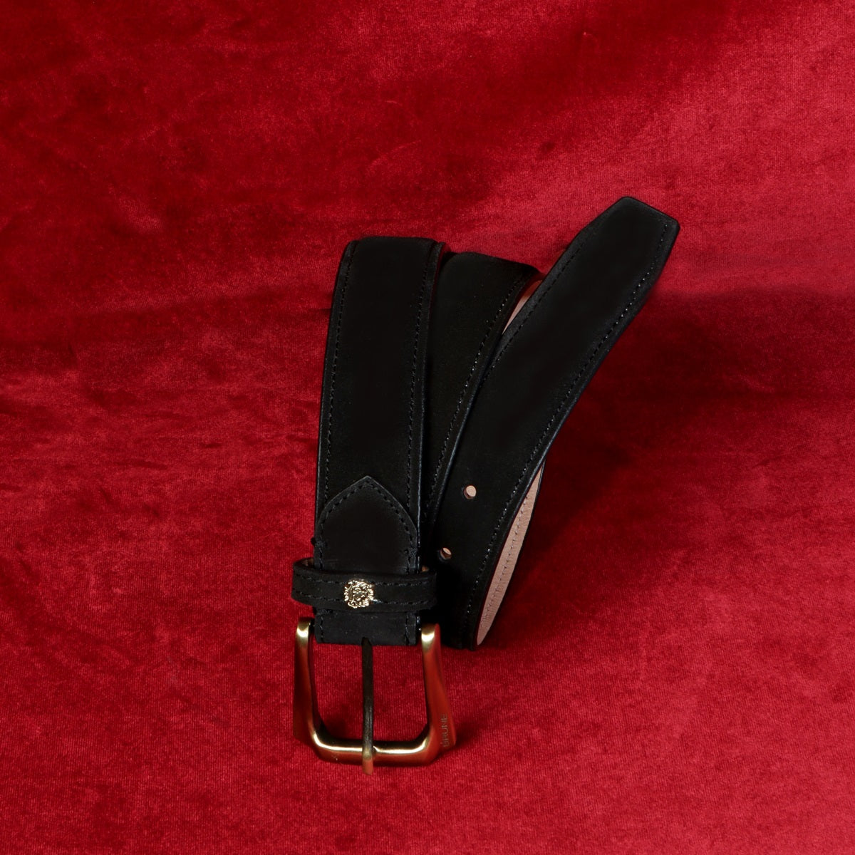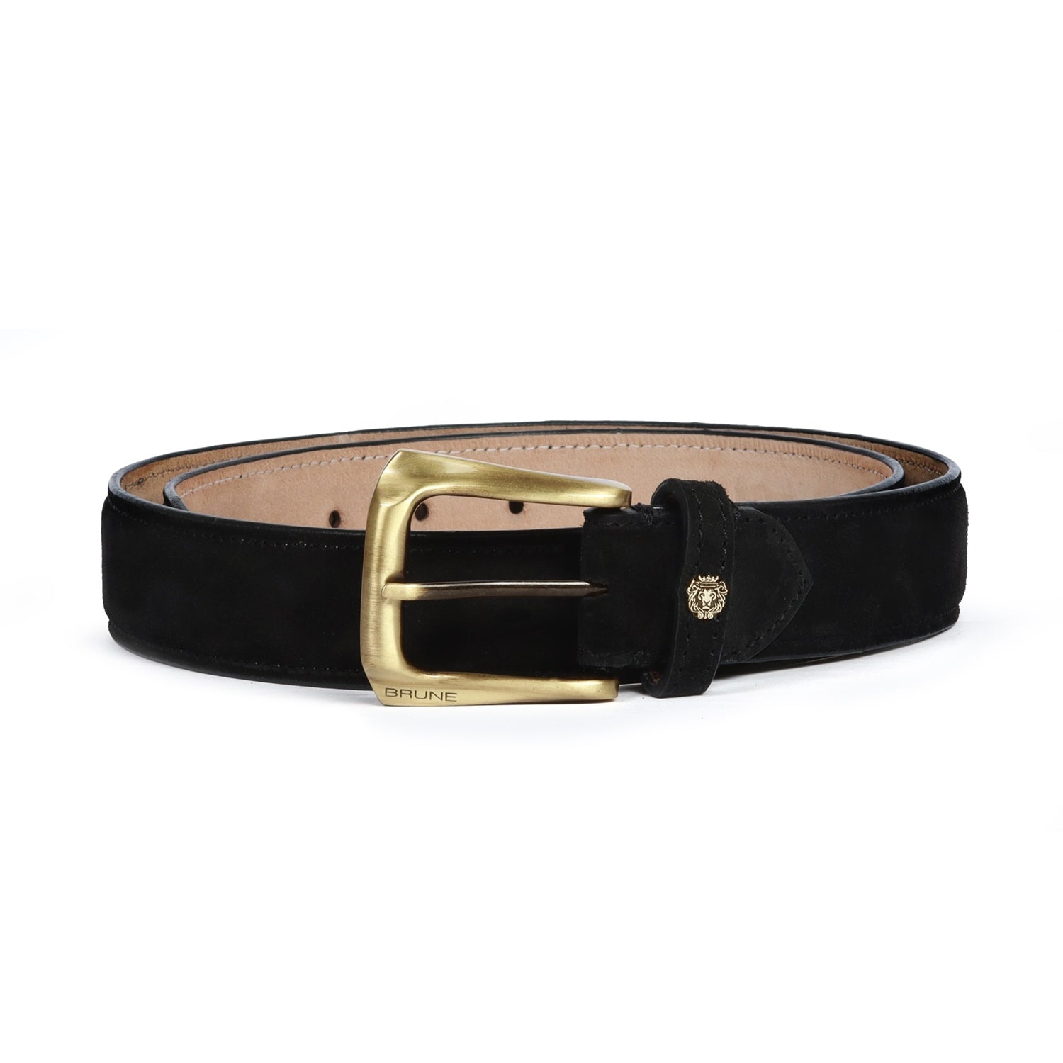 Mini Lion Mens Black Suede Belt With Golden Slant Shape Buckle By Brune & Bareskin