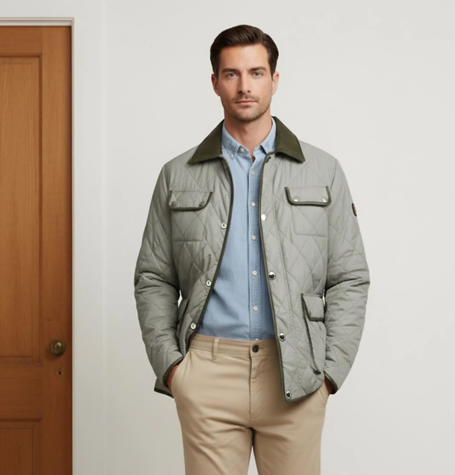 Elevate your style with this premium diamond-stitched jacket, designed for both elegance and functionality. Featuring a both sides flap pocket on the chest, it offers a subtle yet practical detail for essentials.