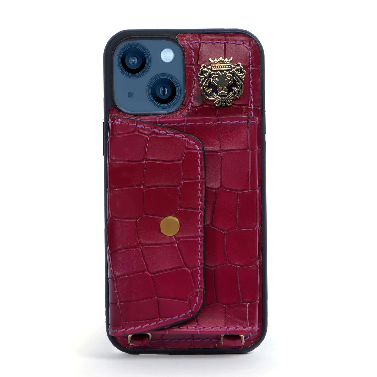 Delight in the luxurious convenience of the unisex mobile case cover with crossbody wrist strap wallet holder deep cut textured leather by Brune & Bareskin. Crafted from fine materials, this plush pink protective case is elegantly adorned with a golden lion logo and features an adjustable wrist strap dog hook for hands-free convenience. Expertly handmade for superior protection and stylish design, your phone and snap button wallet will be both securely kept with you at all times. You can get your name initials on wallet with our bespoke services.