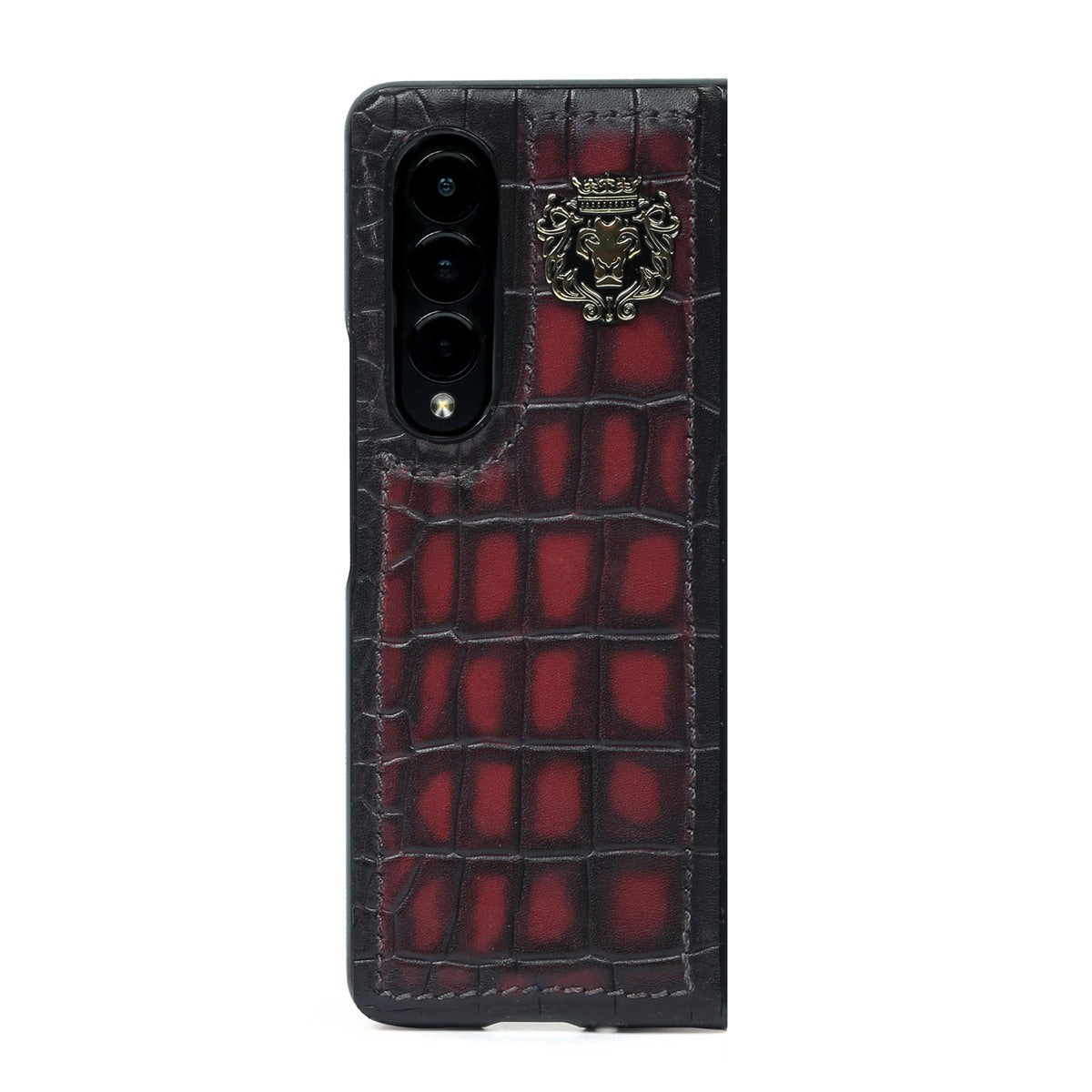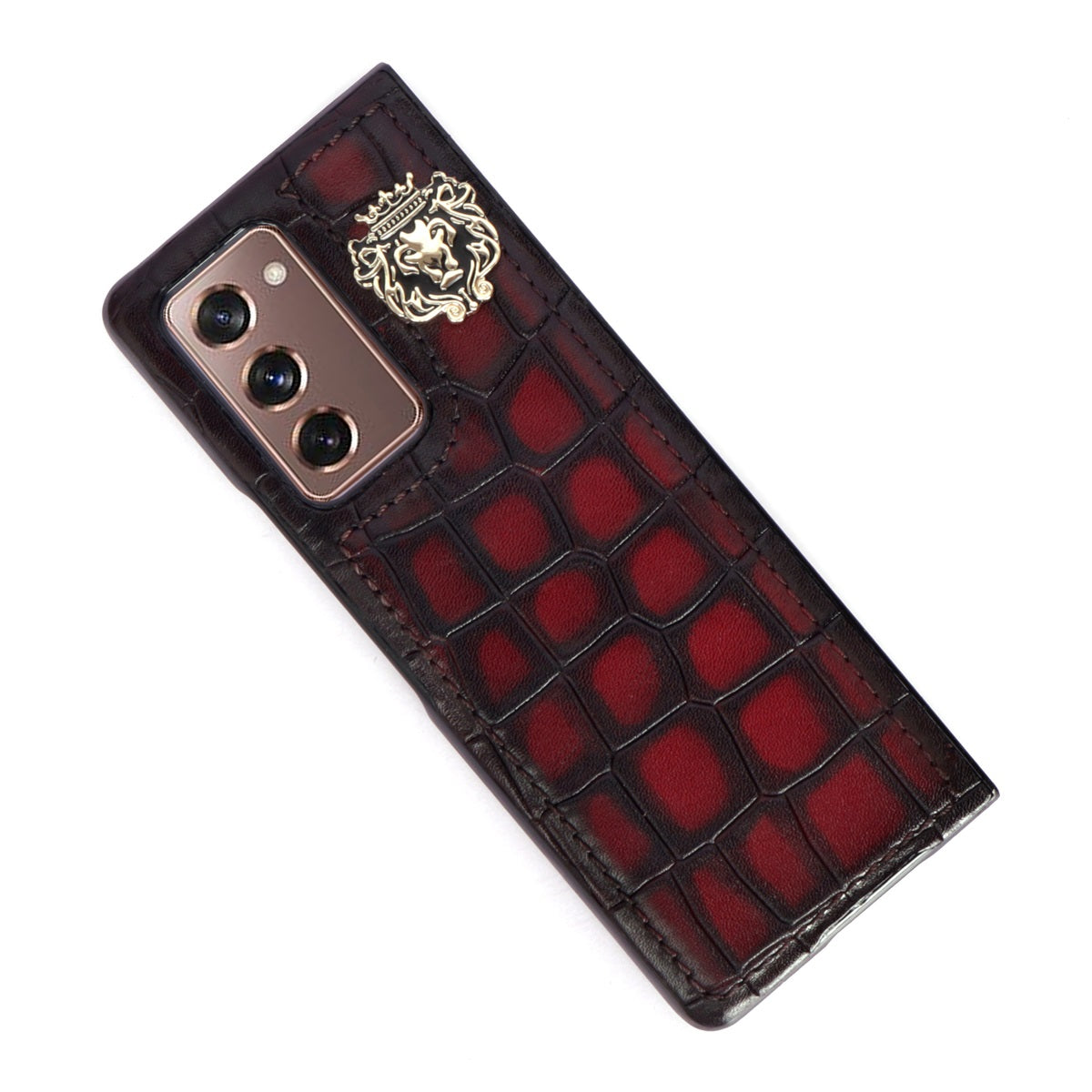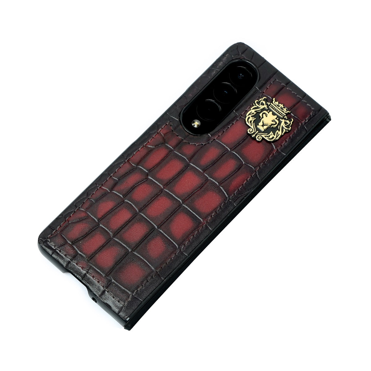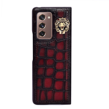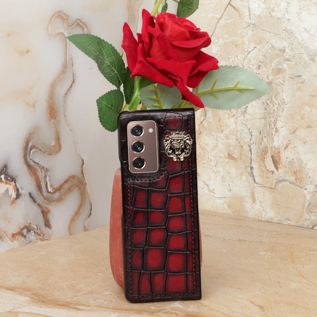 Samsung Galaxy Fold Series Mobile Cover In Wine Deep Cut Croco Textured Leather