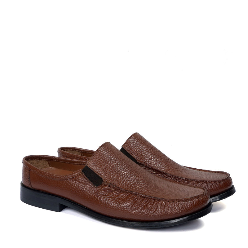 Moccasin Style Men's Mule In Textured Tan Leather