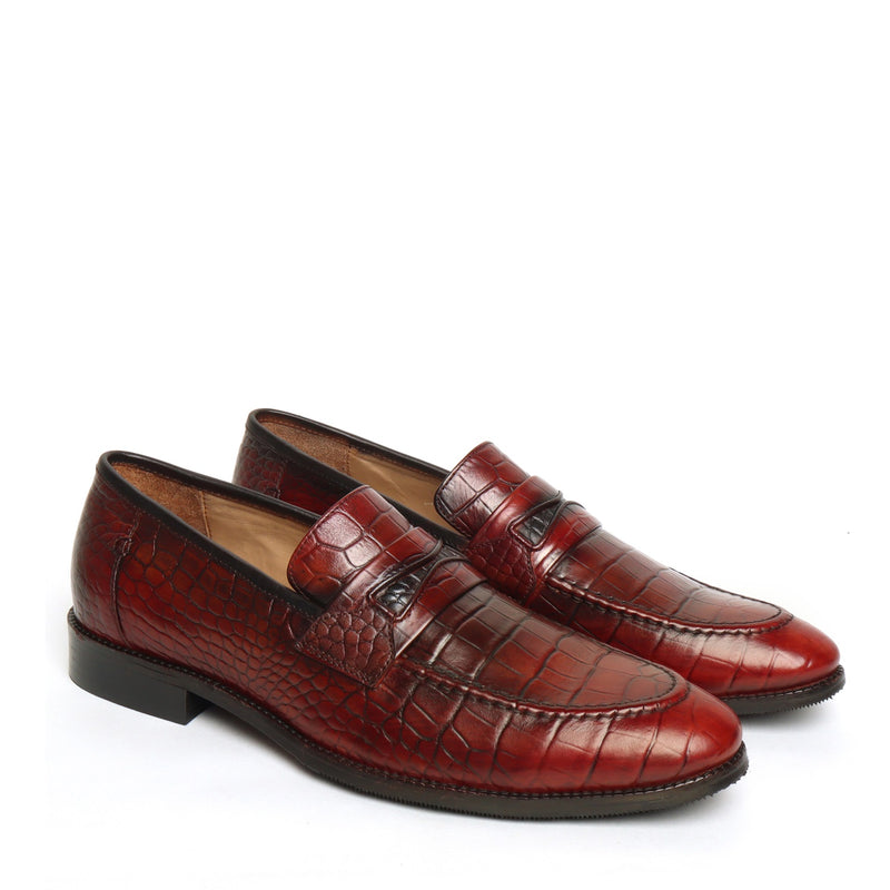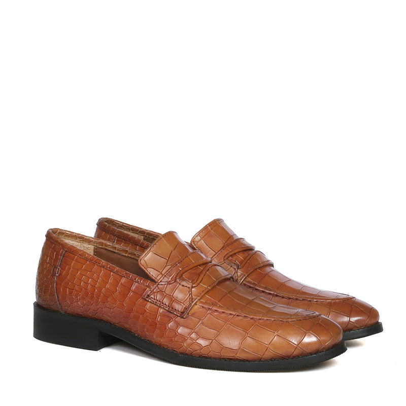 Step out in style with this sophisticated loafer from Brune & Bareskin. Crafted from premium deep cut croco print leather and featuring a rubber sole for durability and comfort, this Mod Look Tan shoe is essential for the modern man's wardrobe. Extra padded insole gives that extra cushiony comfort which helps to wear this for long. Expertly crafted for the highest standards of quality and design, You can customize this Shoe in any of your favorite color with our bespoke services.