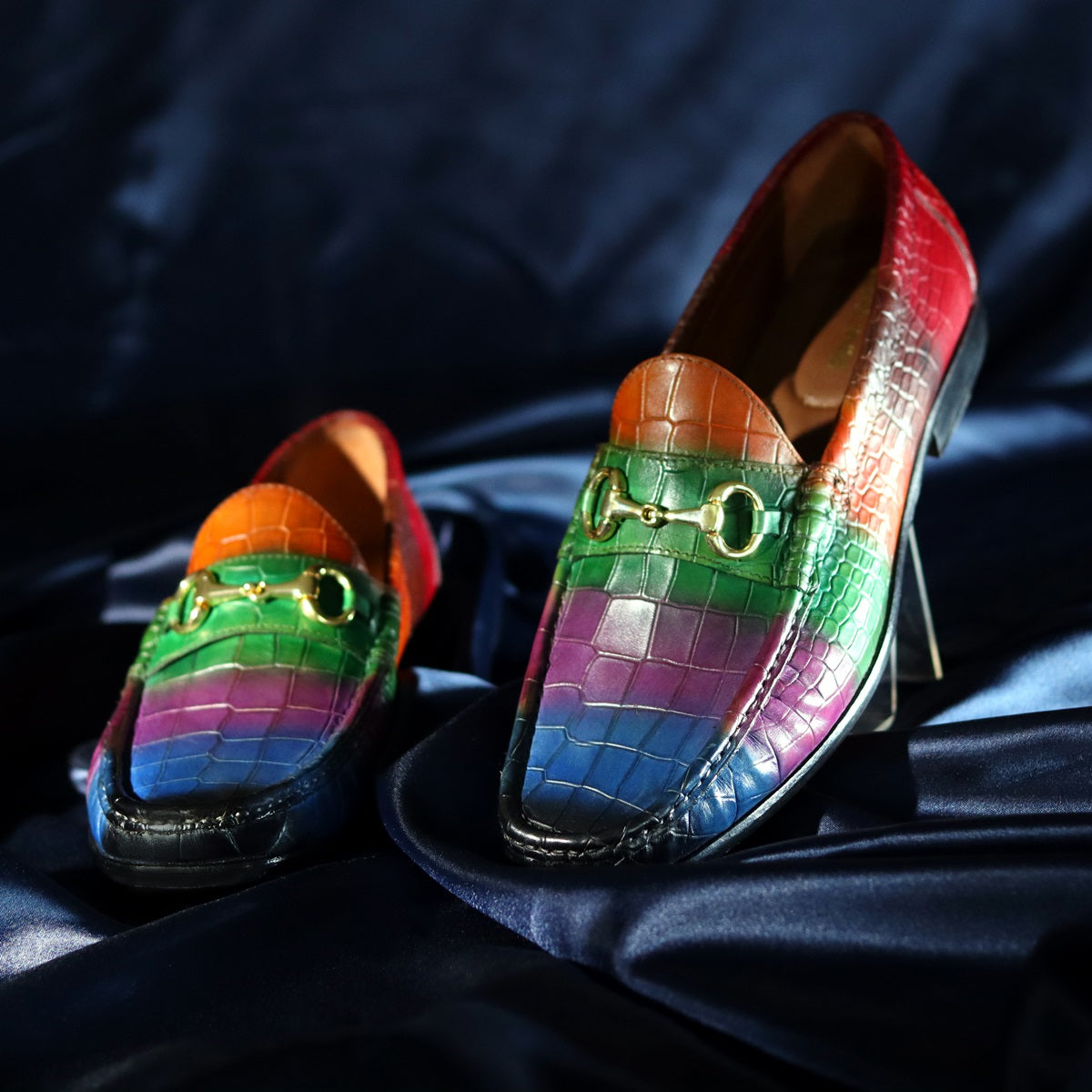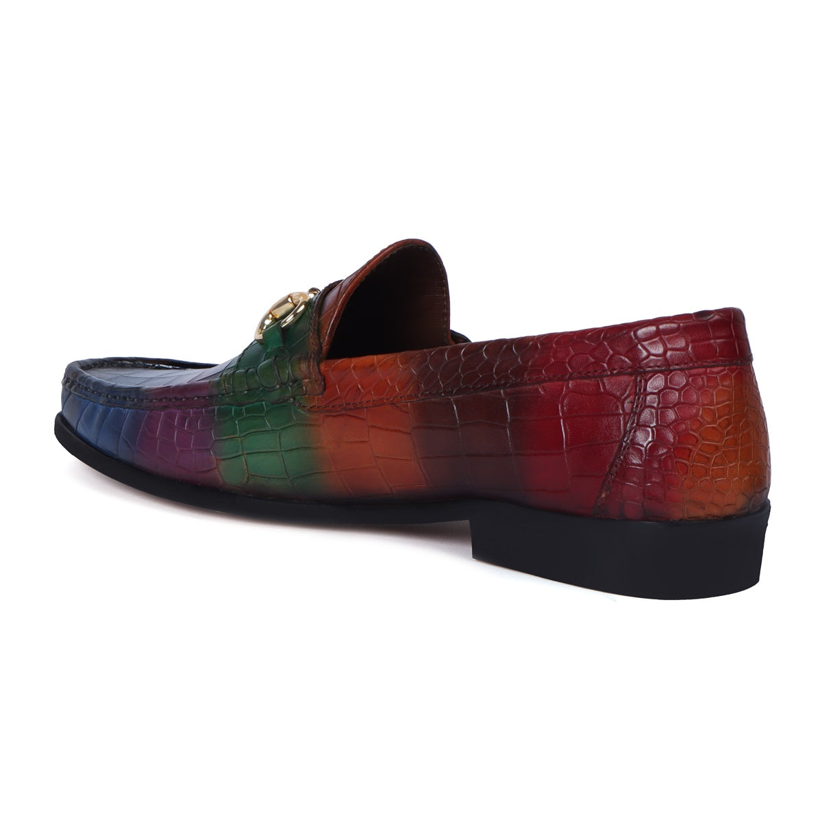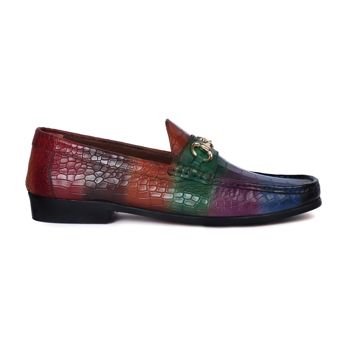 Multi Colored Leather Loafer in Deep Cut Croco Textured Horse-bit Buckle