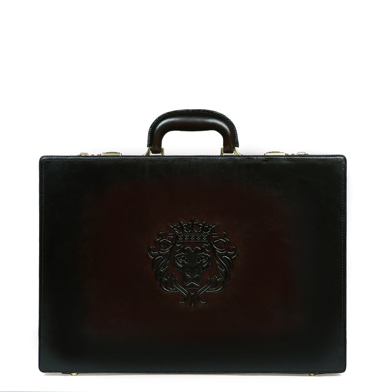 Multi-Functional Office Briefcase in Wine Croco Textured Leather with Embossed Lion