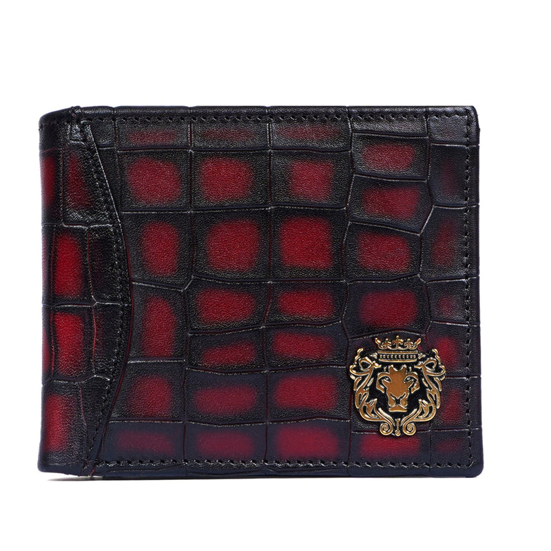 This bi-fold Cognac Croco print leather wallet with hand painted Smokey finish looks very elegant. The BRUNE & BARESKIN signature metal Lion brand logo increases the style quotient. Bi-fold opening wallet features two main pockets along with small secure pocket on both sides. It has the total of 10 pockets, which makes it a perfect buy for today's generation. It provides the style and storage with artistic Patina regime leather color shades. You can get it personalized and customized with any color shade & name initials with our bespoke services.