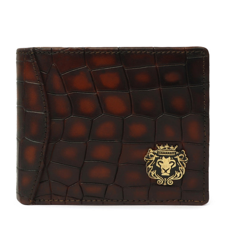 Cognac Croco Tectured Multi Pocket Bi-Fold Wallet