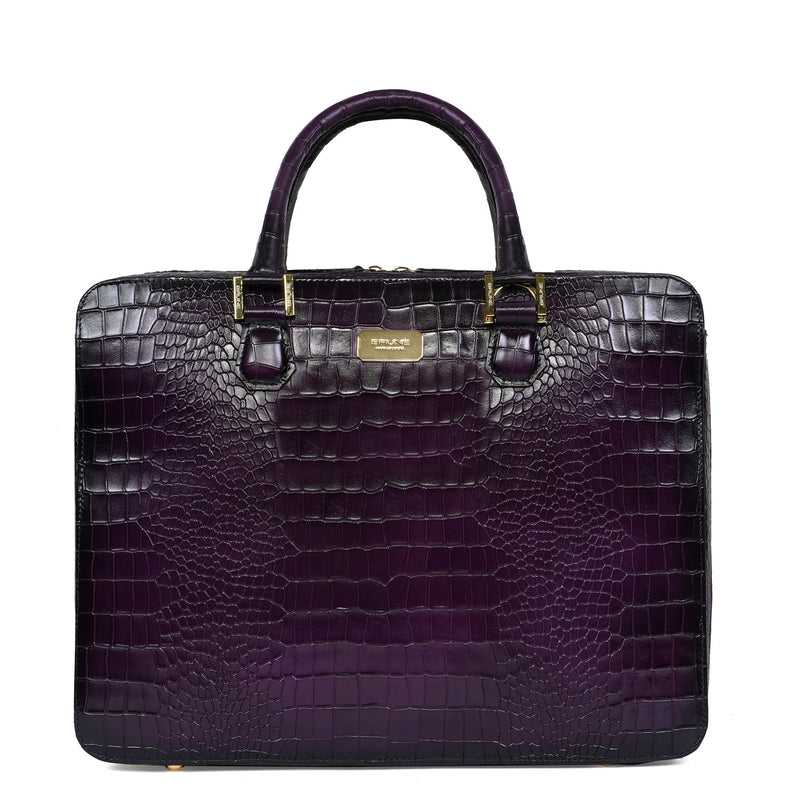 Multicolor Laptop Briefcase in Deep Cut Croco Textured Leather