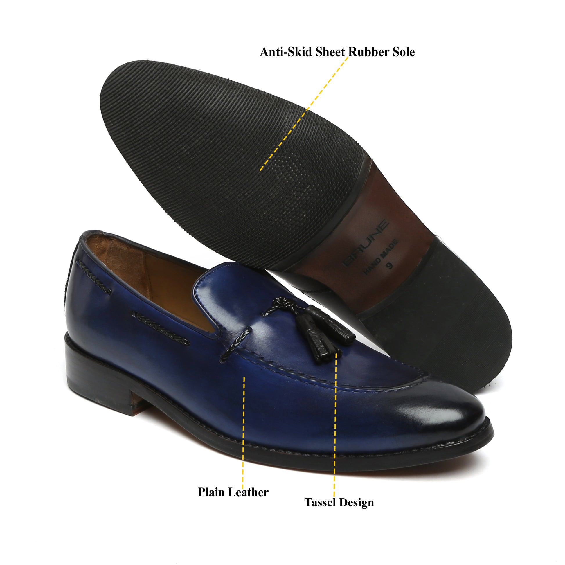 Side Lacing Tassel Loafers in Navy Blue Genuine Leather By Brune & Bareskin