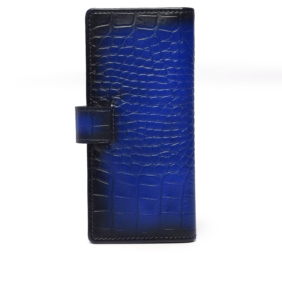 Navy Blue Long Wallet in Croco Textured Leather