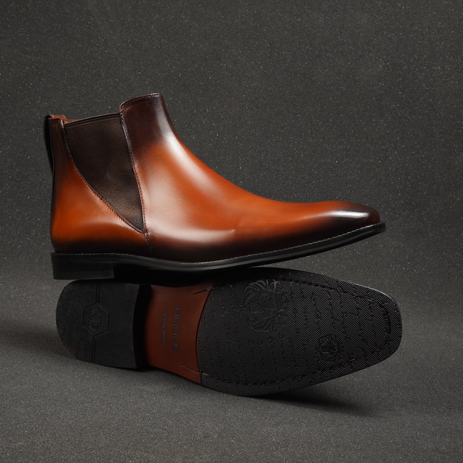 New shape Tan Leather Chelsea Boot by Brune & Bareskin with a Stylish Sharp Elastic Design