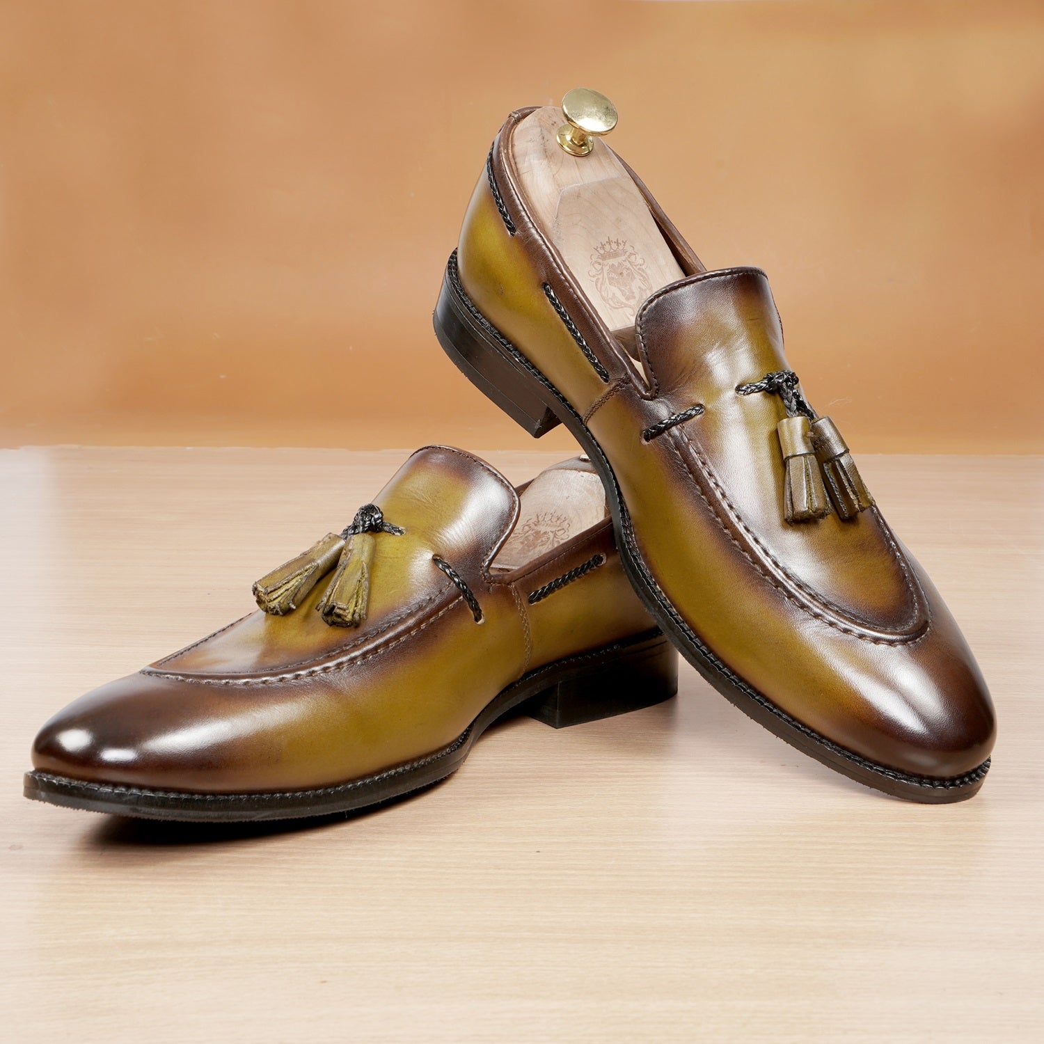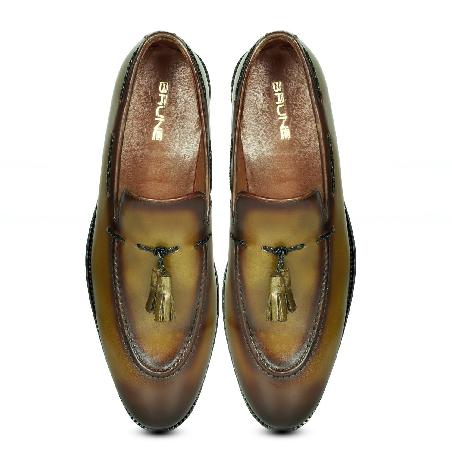 Olive Green Tassel Loafers in Genuine Leather By Brune & Bareskihn