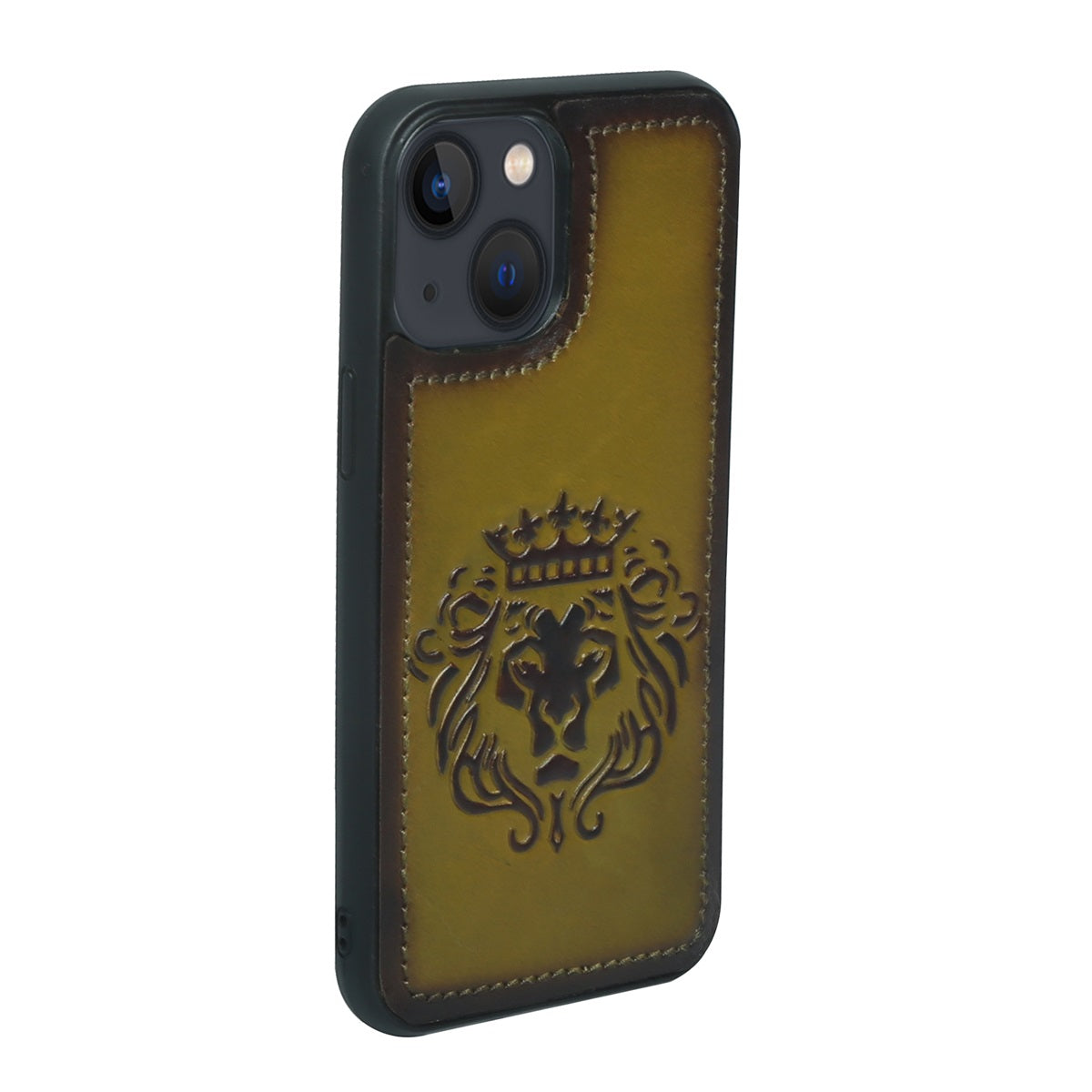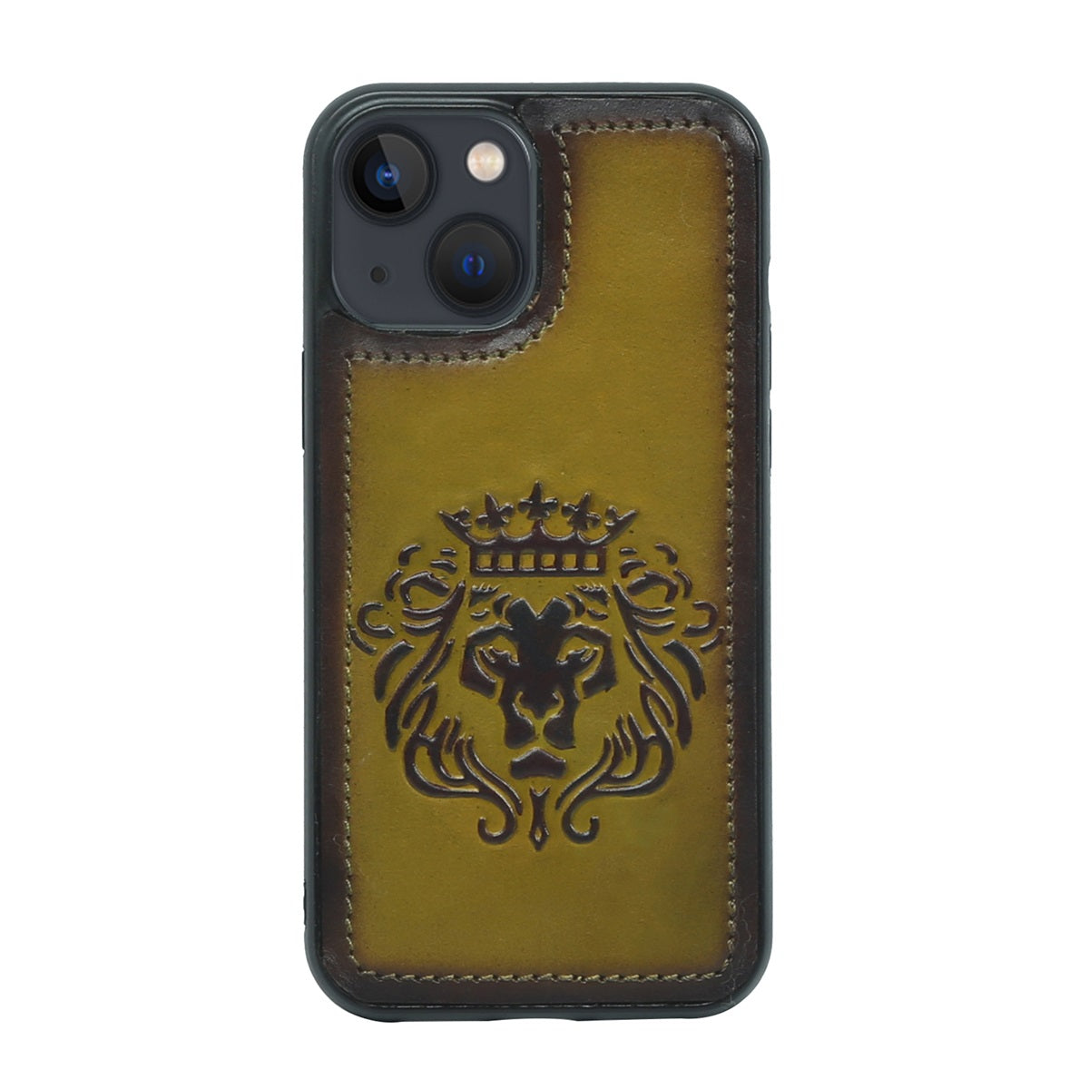 Olive Leather Lion Embossed Mobile Cover by Brune & Bareskin