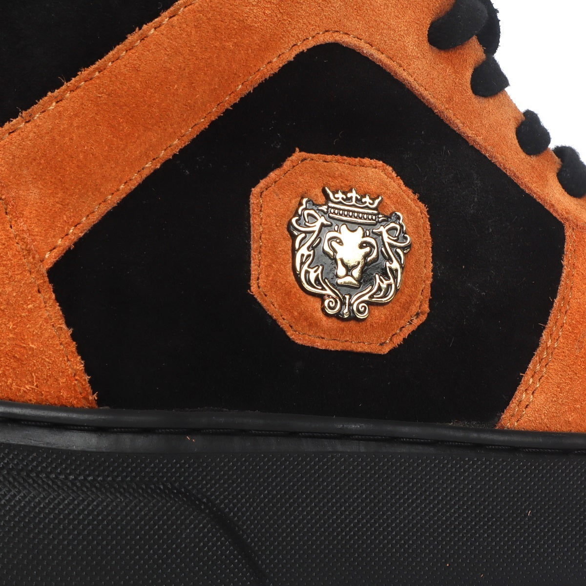 Orange & Black Detailing Suede Leather Mid Top Sneakers by Brune & Bareskin