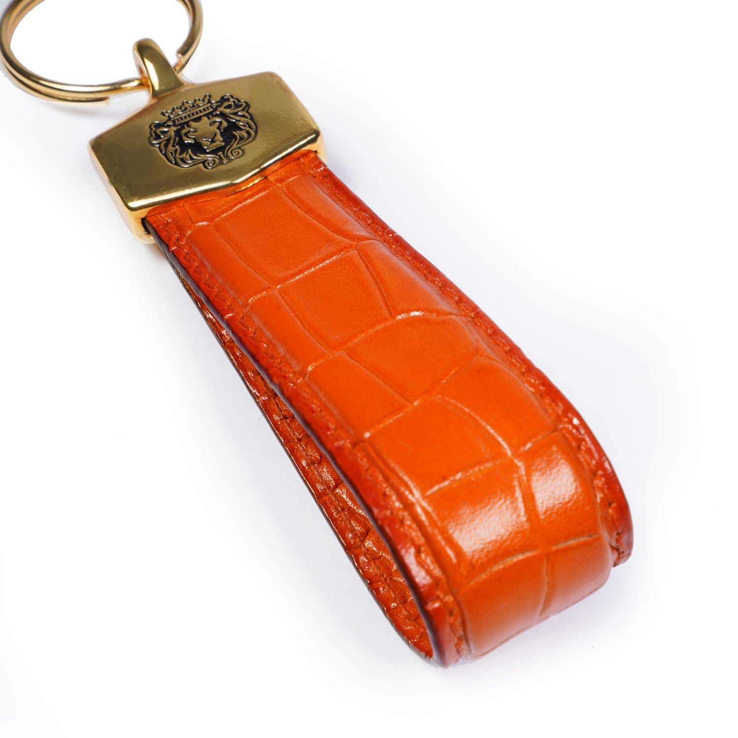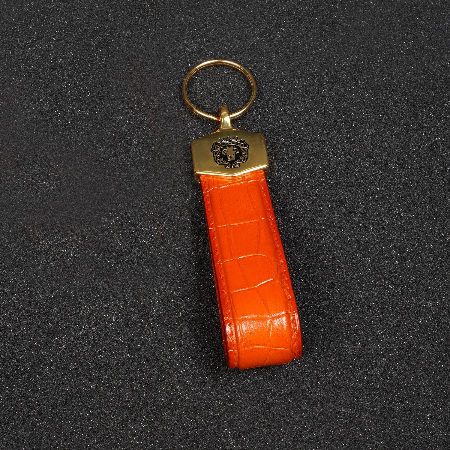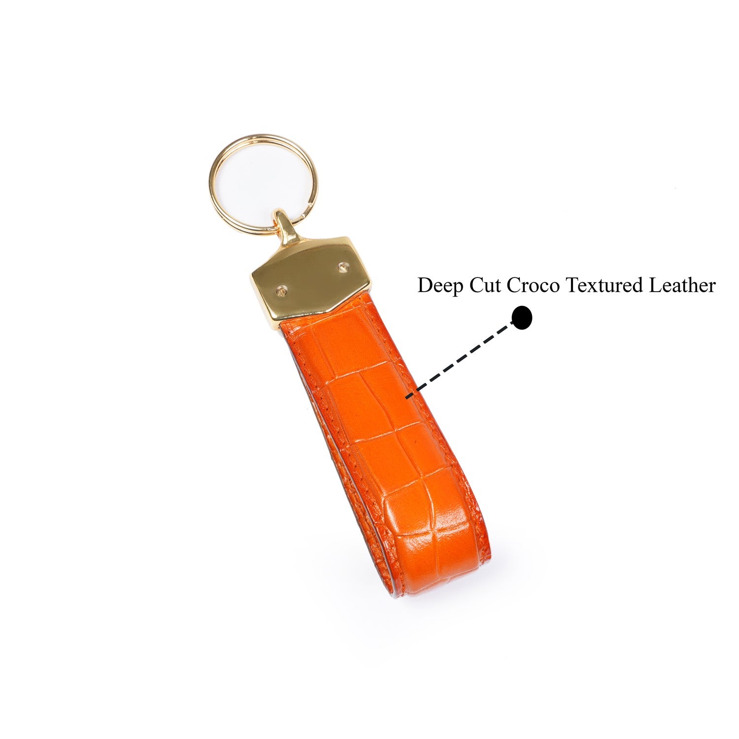 Orange Deep Cut Croco Textured Leather Elegant Keychain