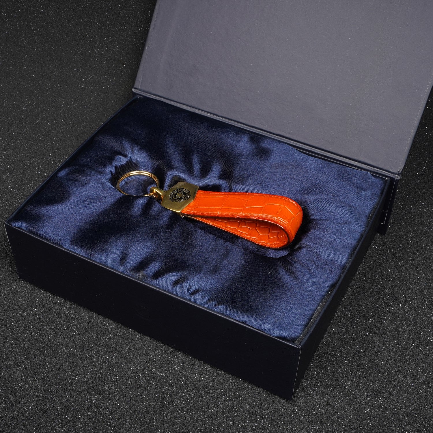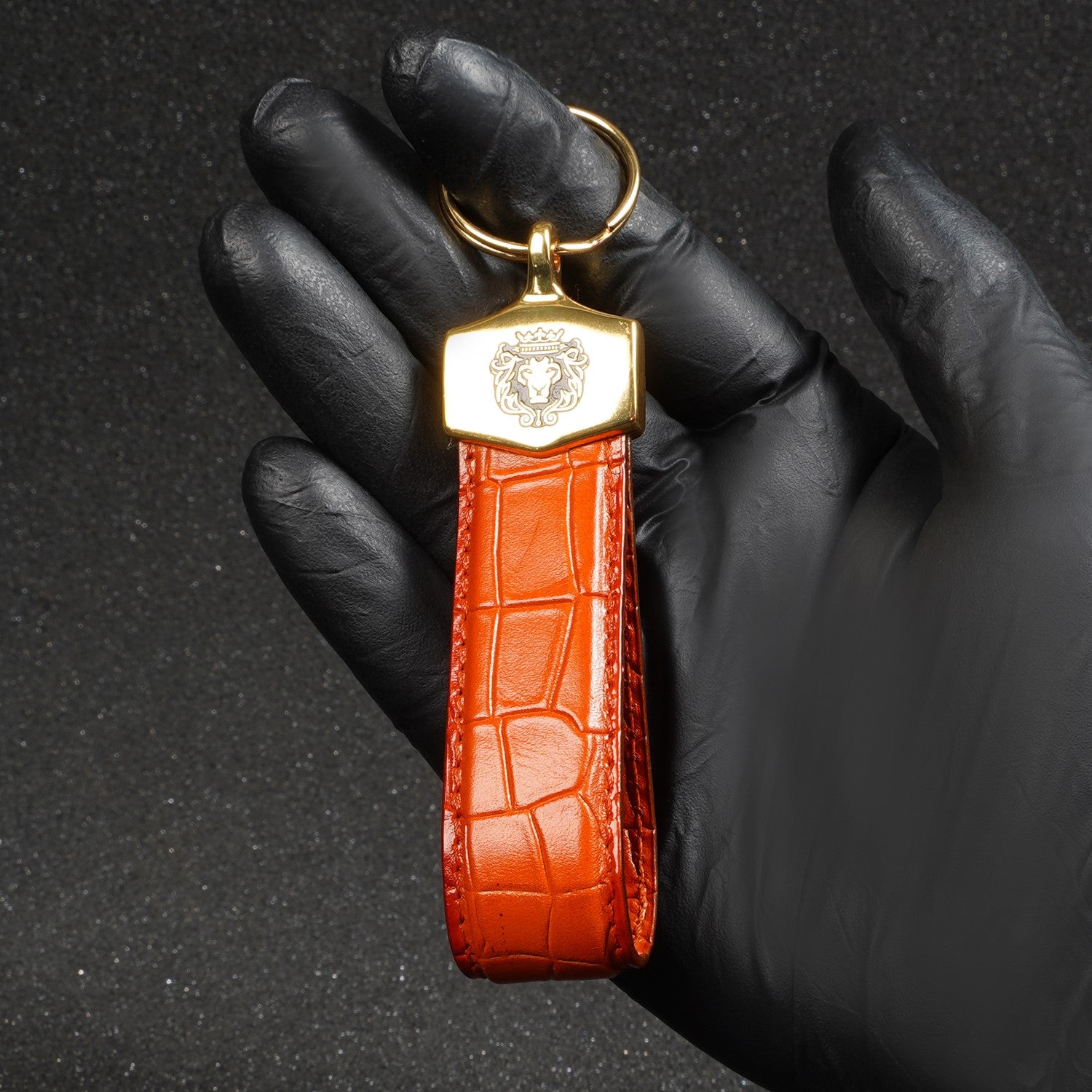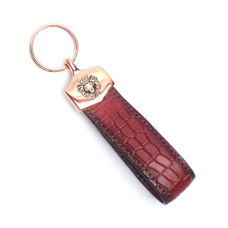 Orange Deep Cut Croco Textured Leather Elegant Keychain
