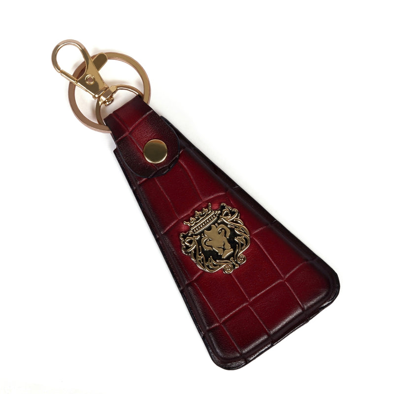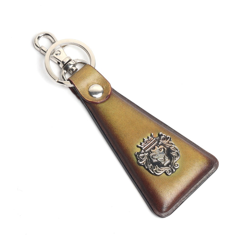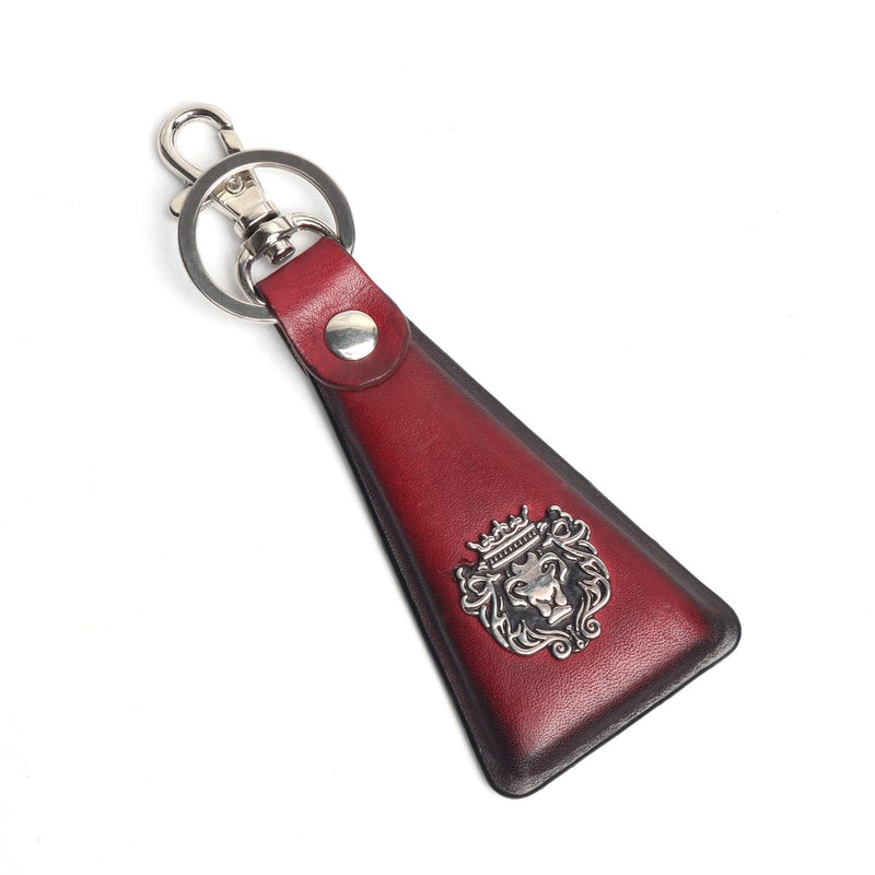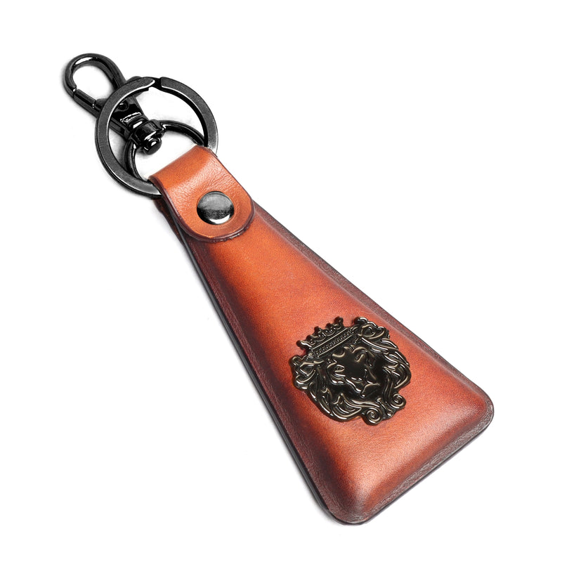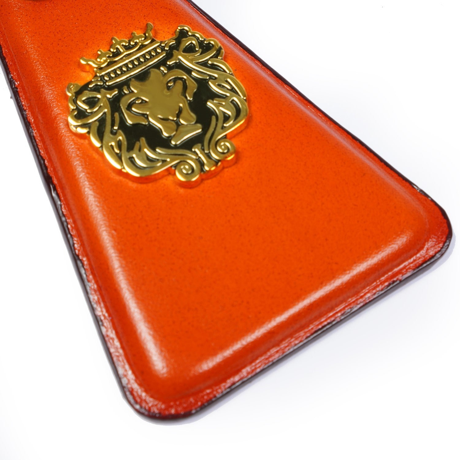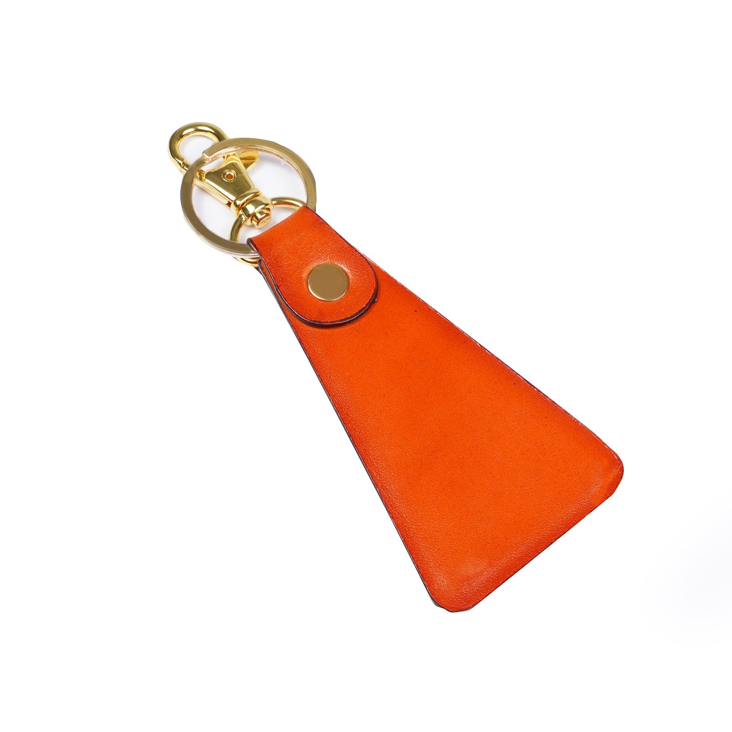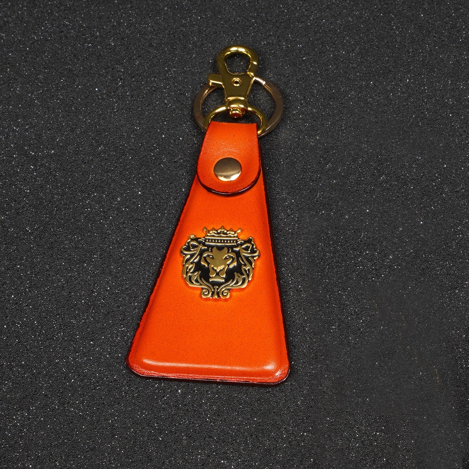 Orange Leather Triangular Key-chain With Metal Lion Belt Loop
