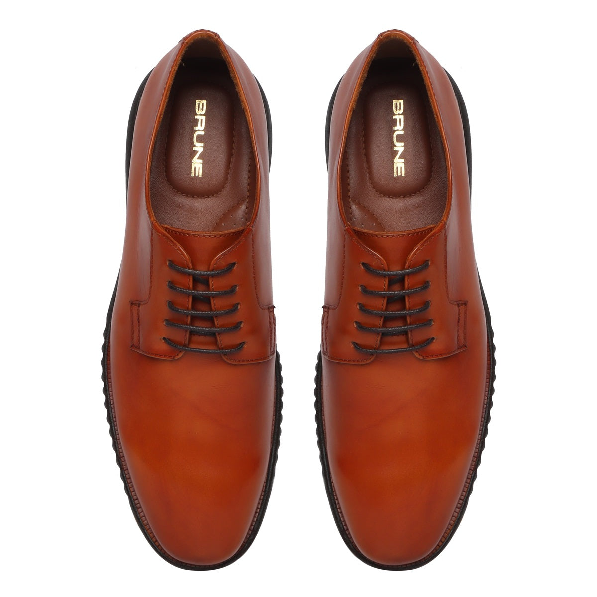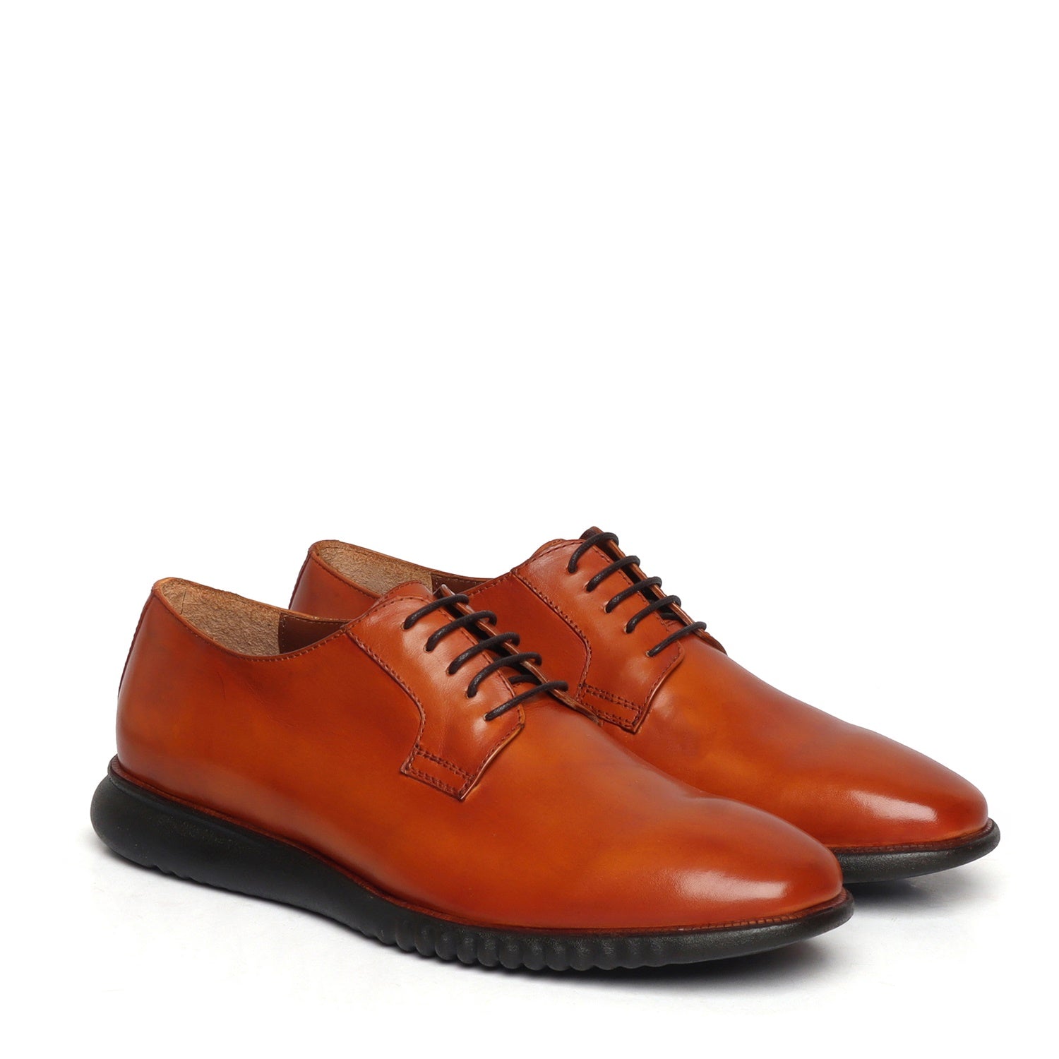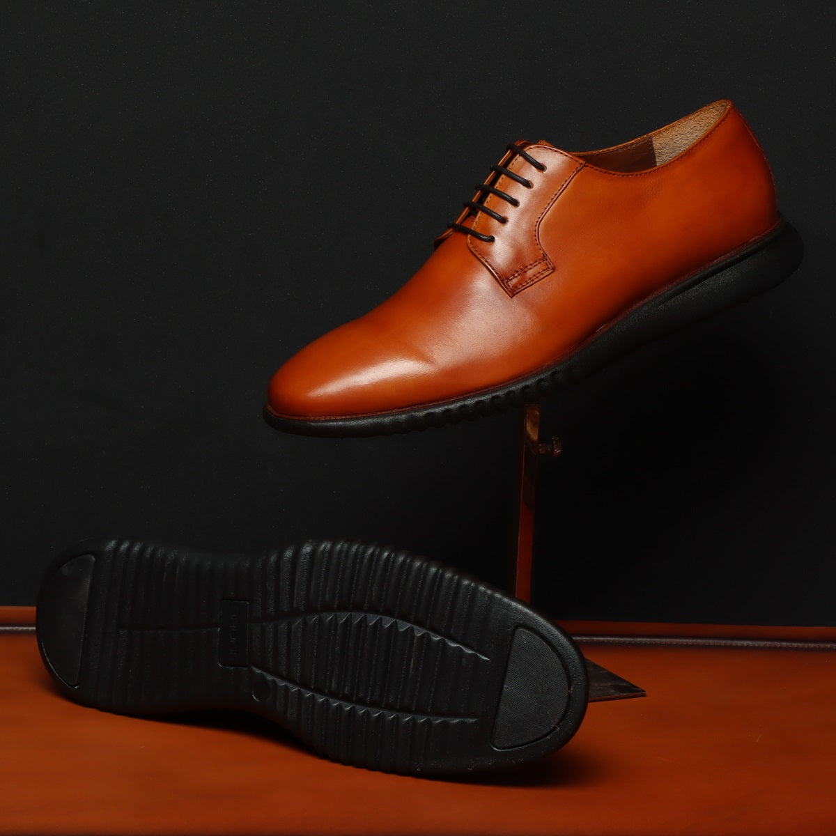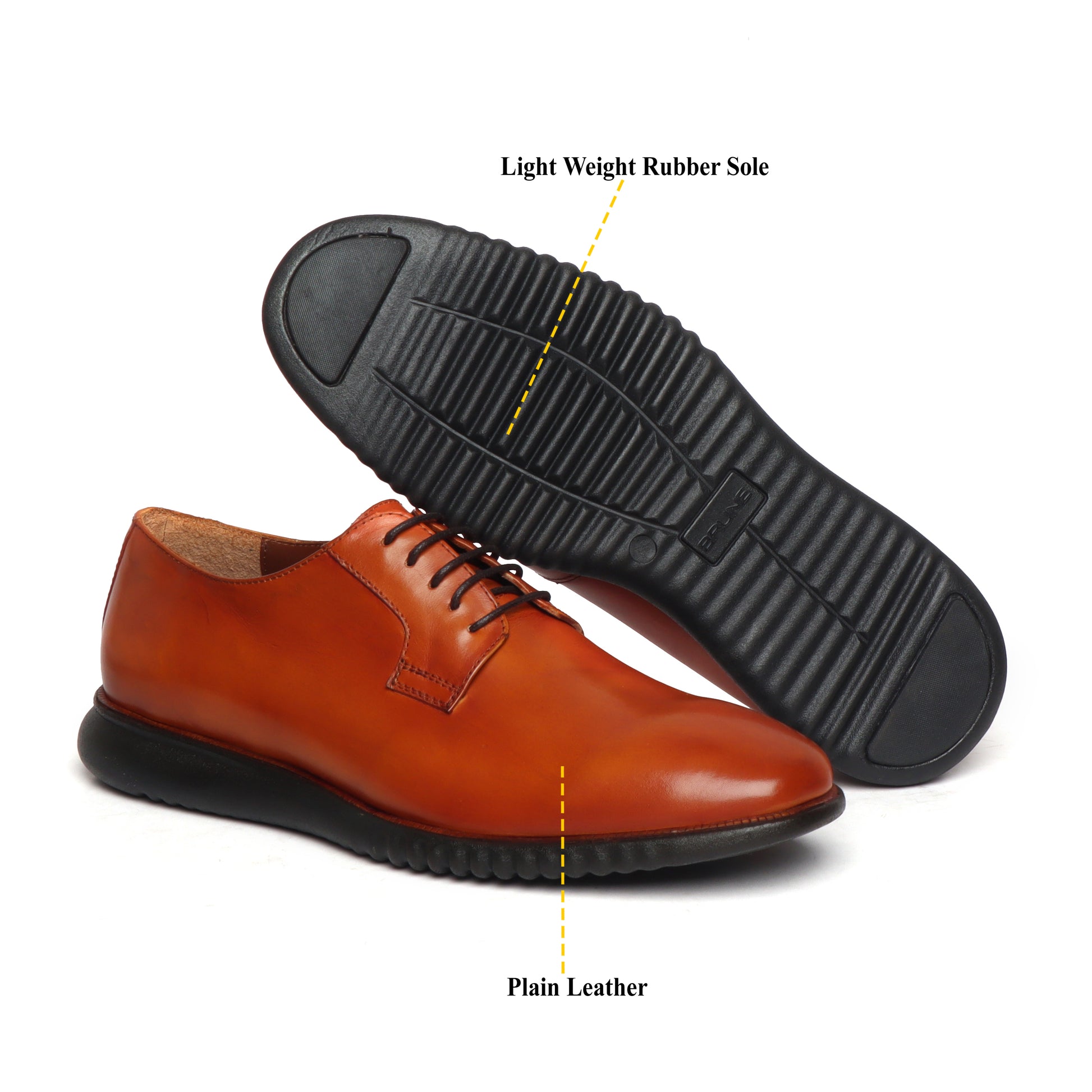 Light Weight Formal Shoes in Orangish Tan Leather With Black Sole