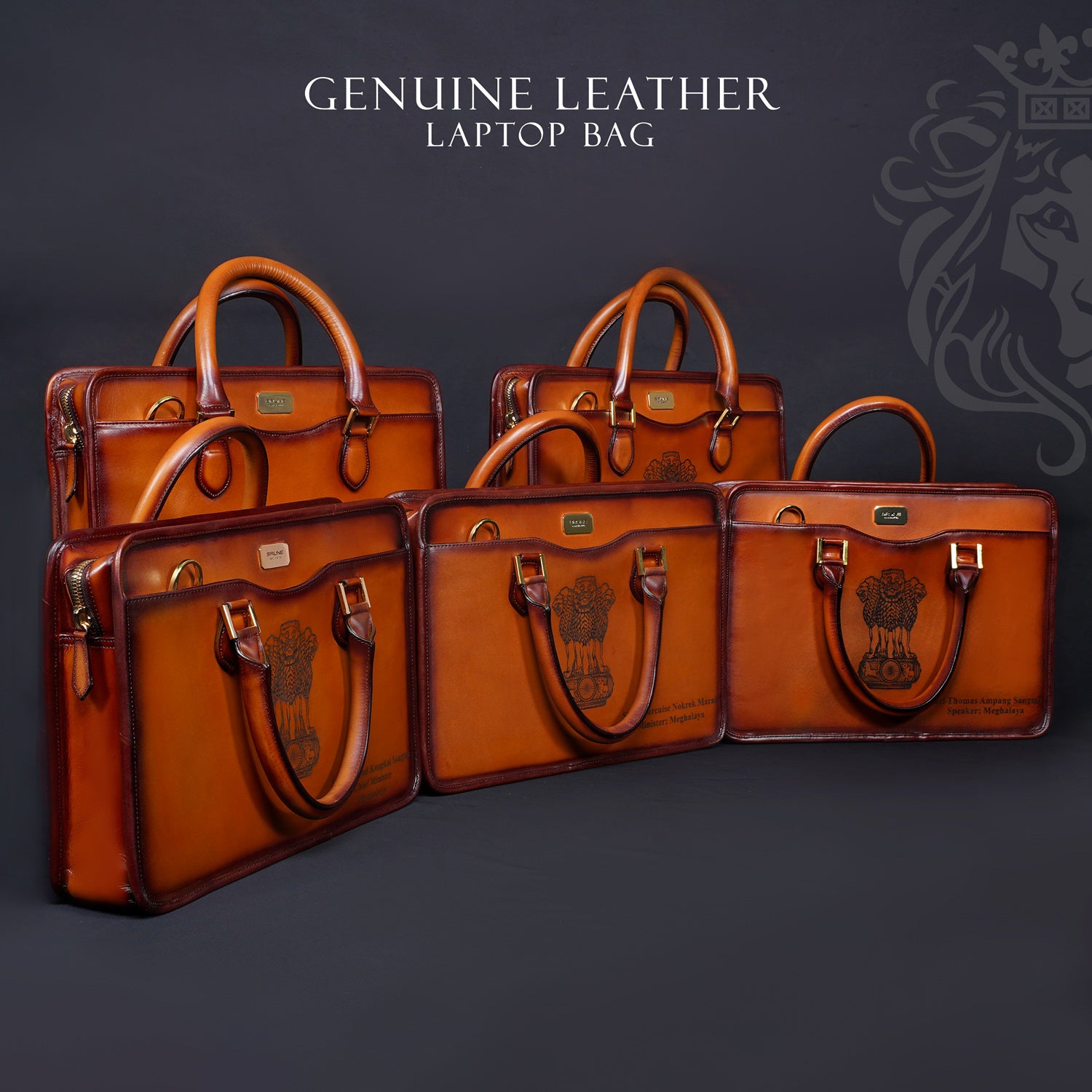 Specially crafted for Honourable Chief Minister of Meghalaya the initial will be mentioned on the bag with the Laser and the "NATIONAL EMBLEM OF INDIA" mentioned on the front of Laptop Briefcase.