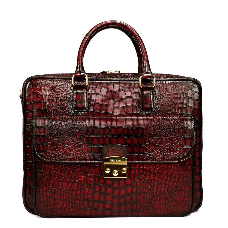 This unisex Laptop/Office Briefcase is a handcrafted masterpiece by Brune & Bareskin. Its navy blue Textured Leather gives it a unique and professional look, making it perfect for business meetings and travel. The durable quality and secured push button flap over front pocket provide both style and function. Stay organized with dedicated compartments for documents, pens, cards, and a padded laptop sleeve. Plus, the detachable shoulder strap adds convenience during travel.