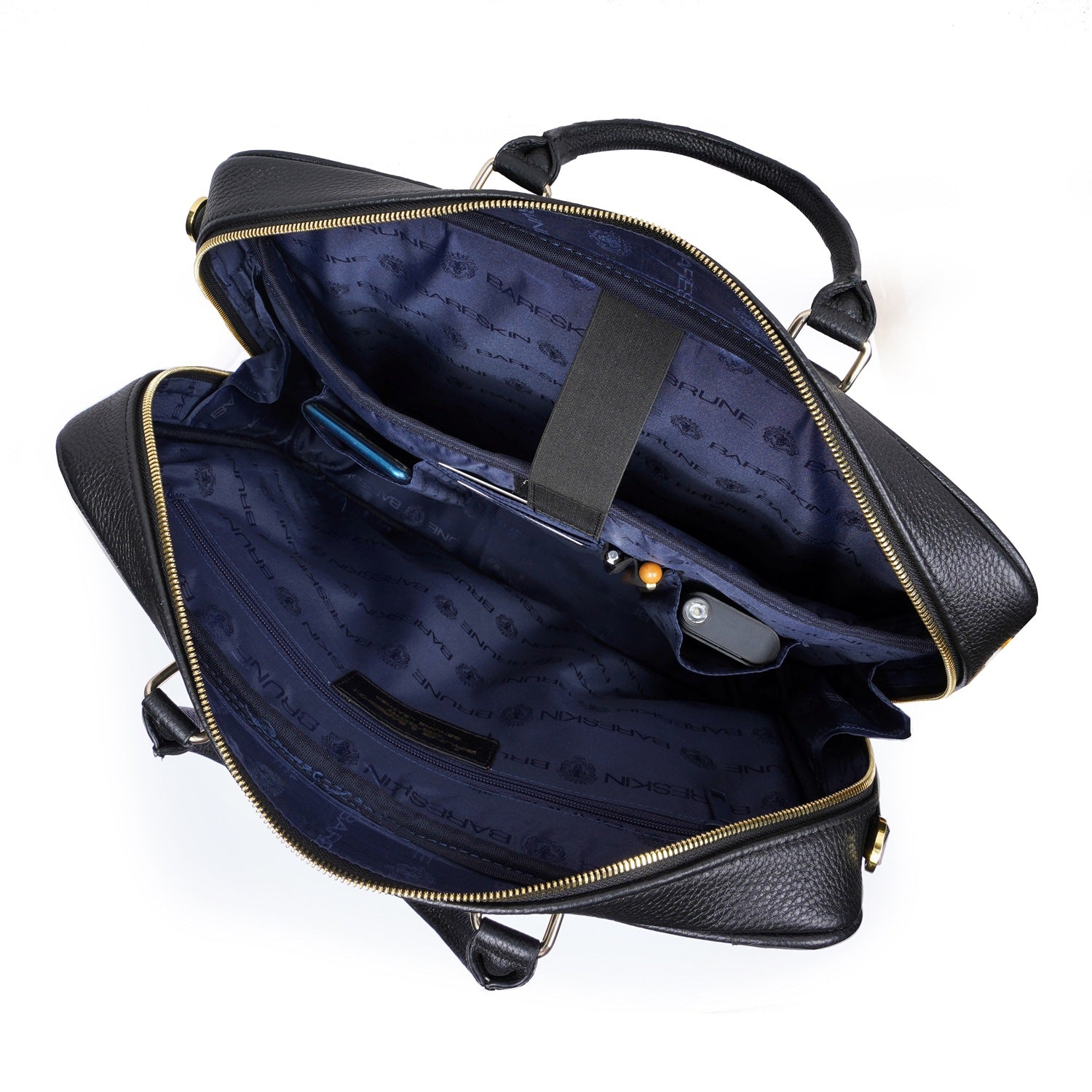 Organizer Laptop/Office Briefcase in Textured Black Leather