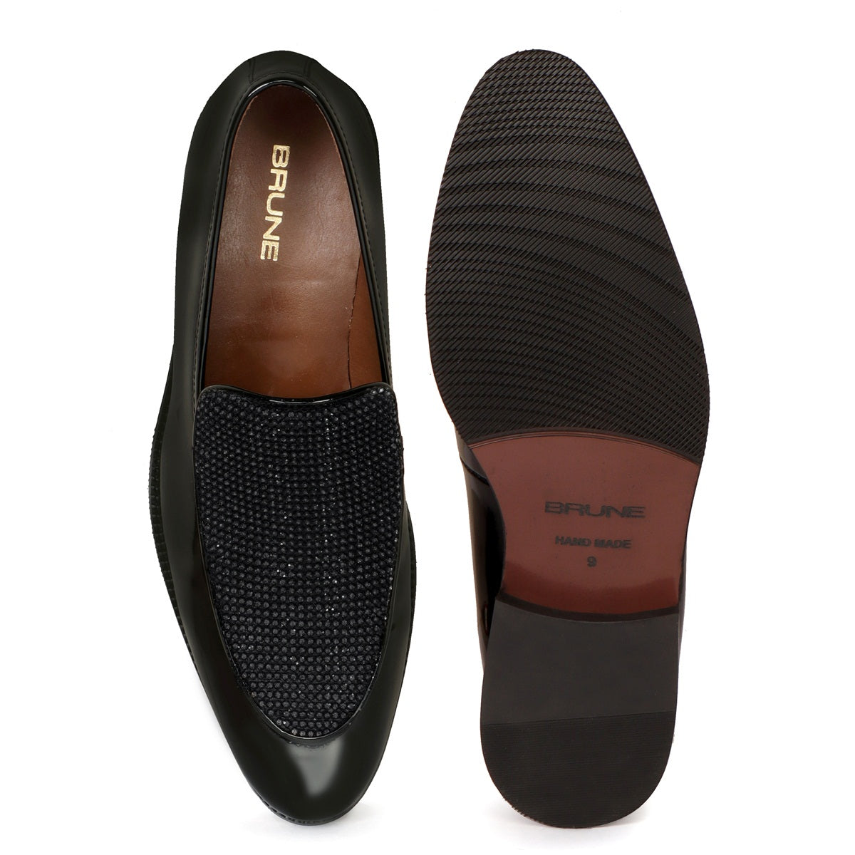 This is the best pair of shoes to win every party you attend. Stunning black loafer with black Flashy rhinestone Beads detail that is going to be reserved for special moments or if you go through life celebrating every day, then this is where your decisions end. This Shoe is entirely handcrafted by our expertise. Featuring Slip-On closure which helps to wear this vogue beauty effortlessly. Extra padded insole gives that extra cushiony comfort which helps to wear this for long. This shoe enhances the style quotient, especially with formal and semi-formal attires. This is a must-have addition to your fashion collection.