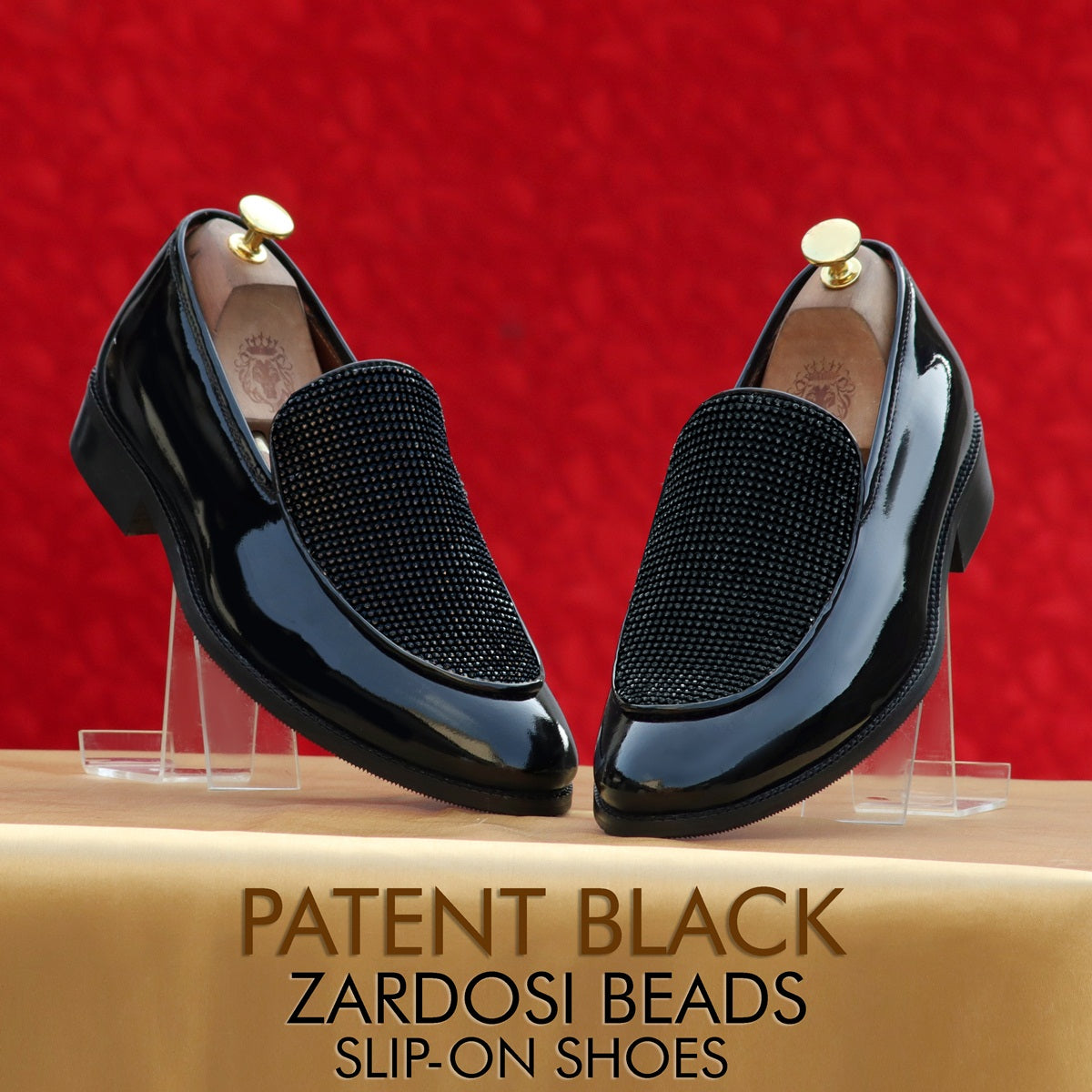 Patent Black Slip-On Shoe with Flashy Rhinestone Zardosi Beads Leather Loafers
