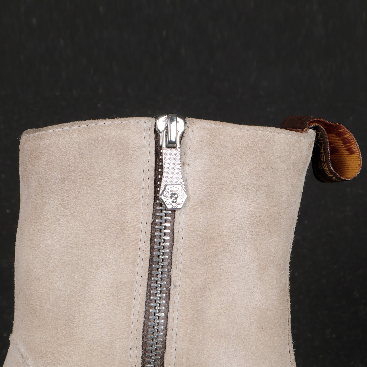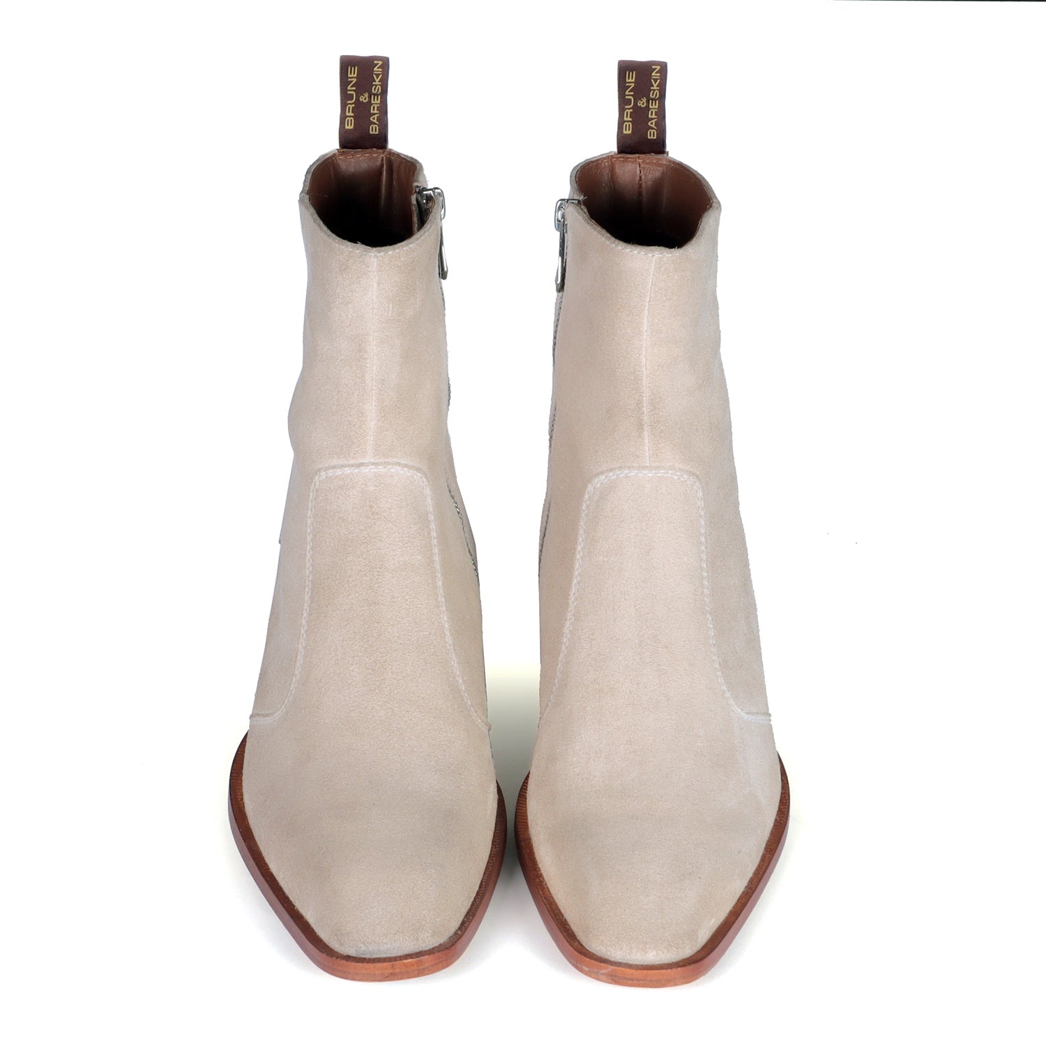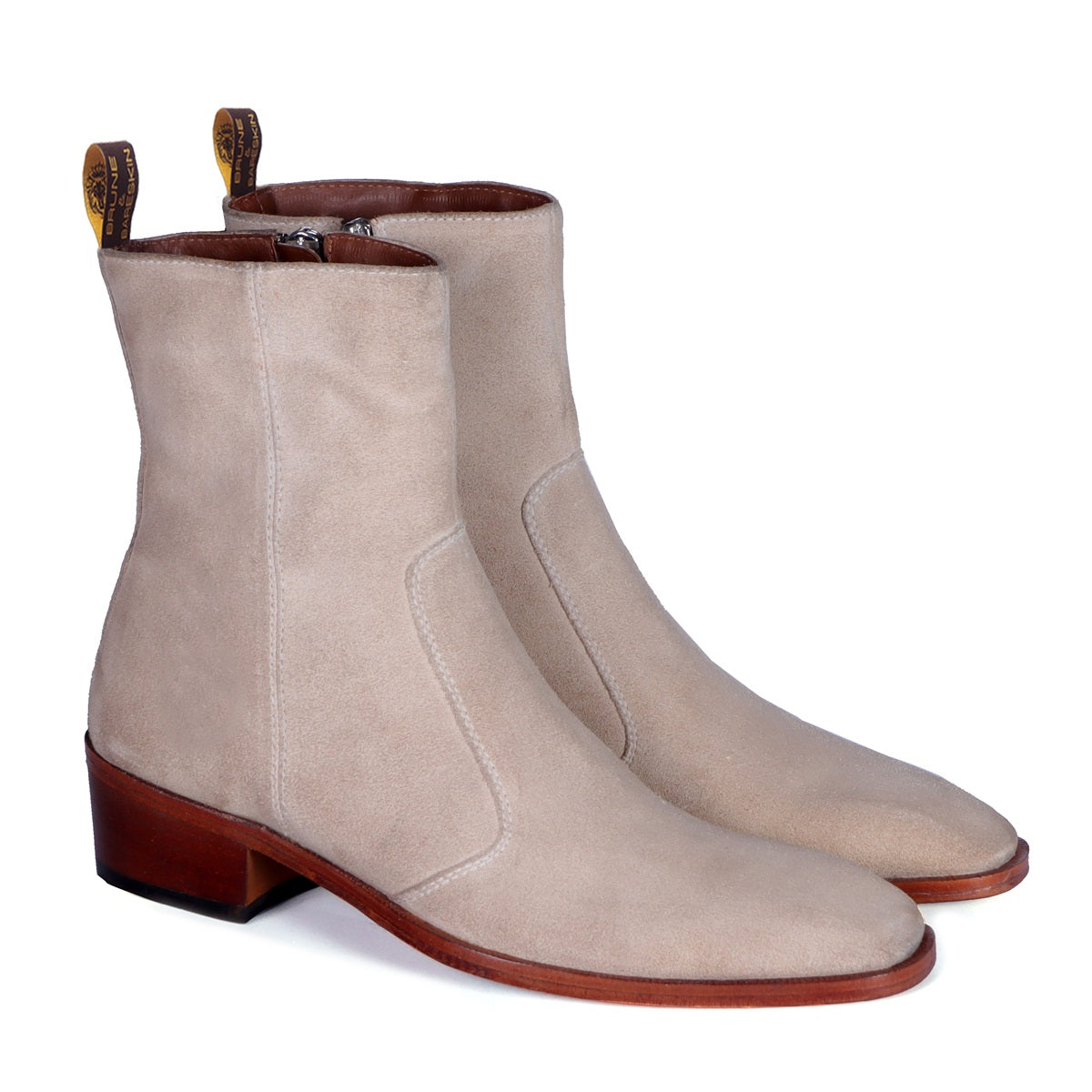 Perfect Cuban Heel Boot in Beige Suede Leather with Zipper Closure
