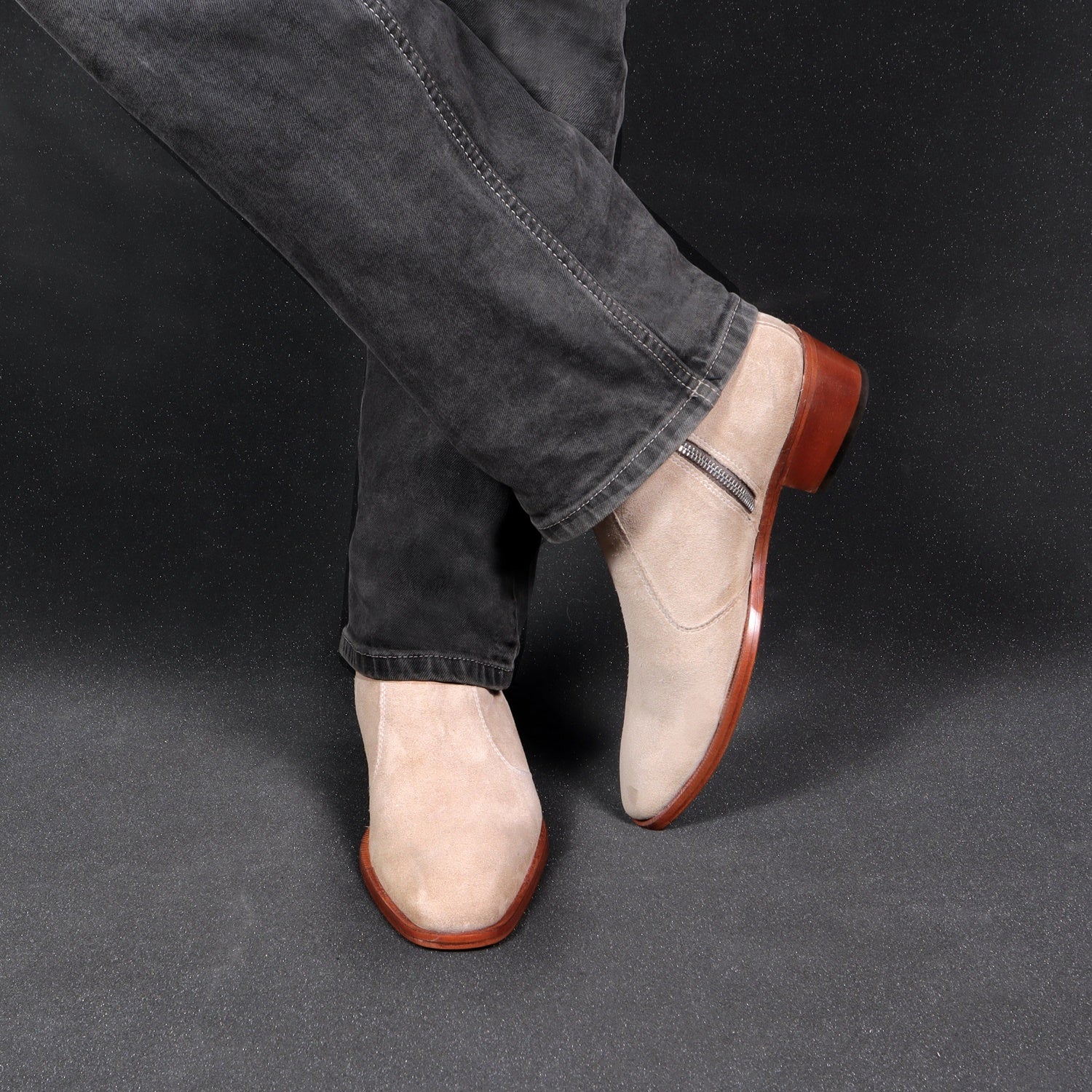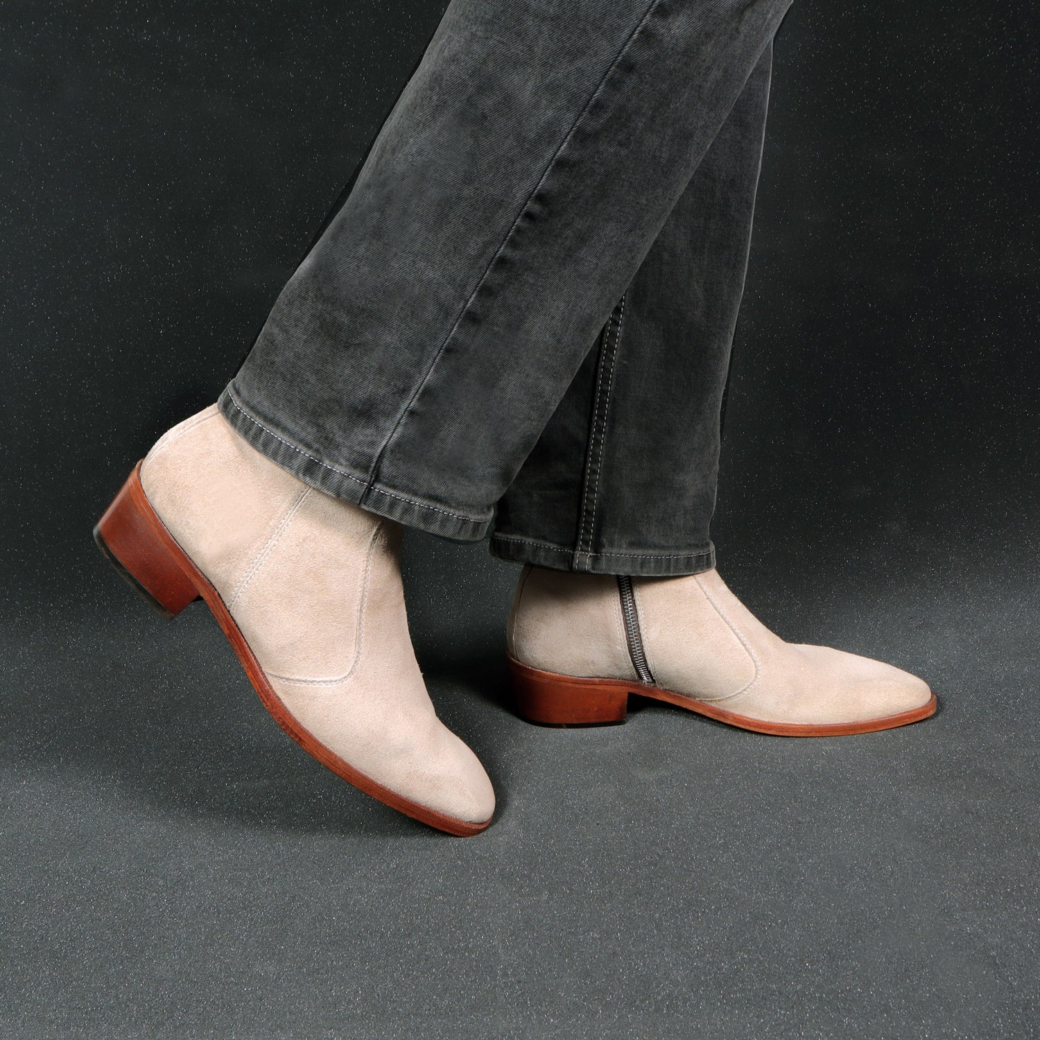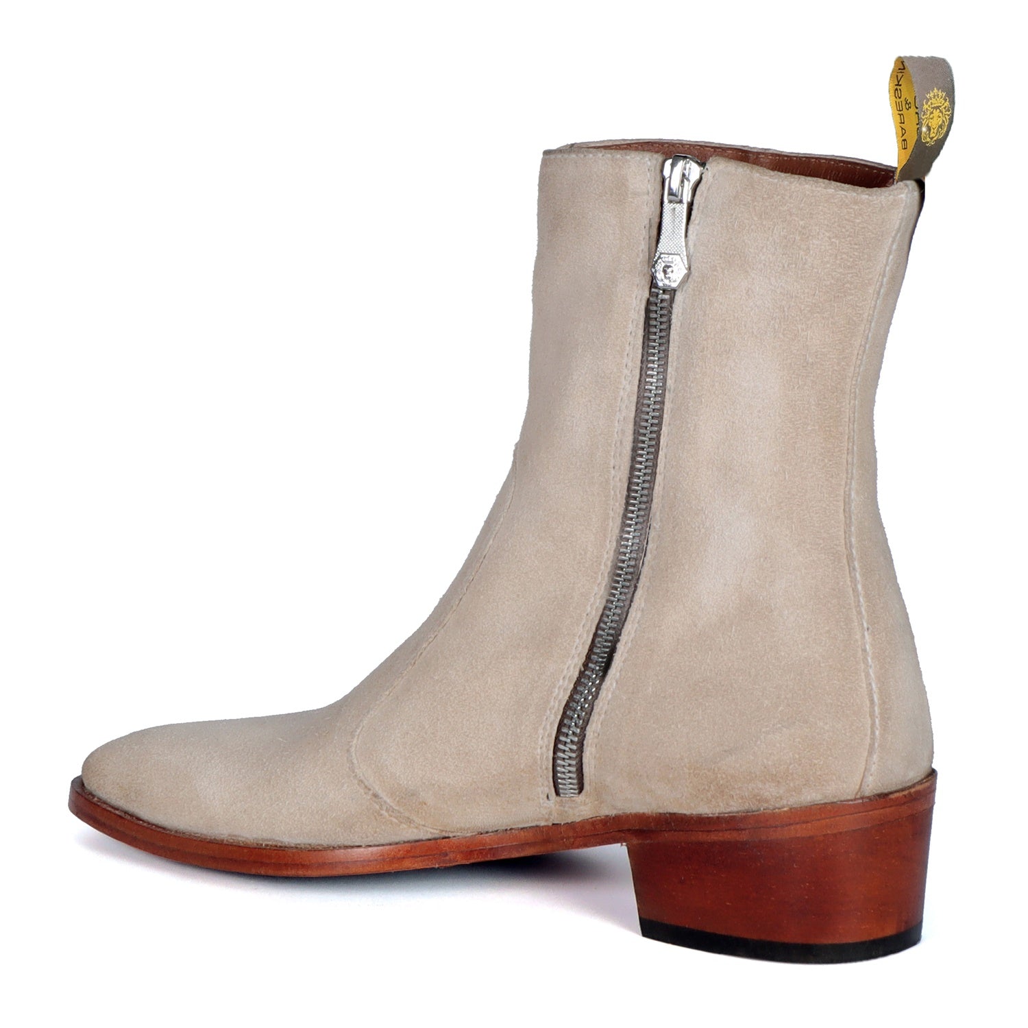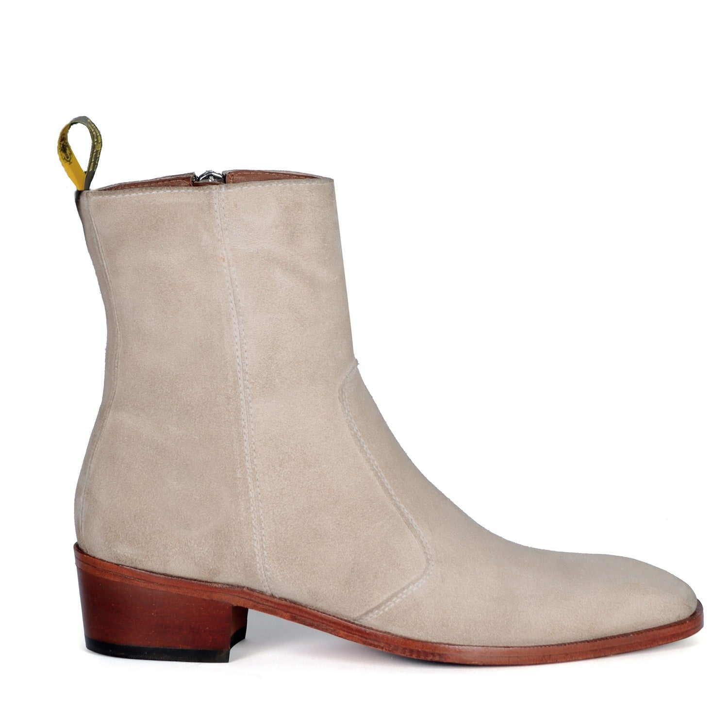 Beige boots in Suede Leather is always an elite choice for a formal occasion. We craft these high ankle Beige suede leather boots to give you an elite look. The stitched detailing on the quarter looks classy. The golden zip closure on inner side provides an extra ease to wear these exquisite boots. The pure leather sole & Cuban heel offers great comfort. Cuban Heel(40MM) Essentially, it is a straight, medium-high heel with a slightly curved back. This is one of a kind Chelsea boot with a perfect Cuban heel. You can customize this chic boots in any of your favorite color according to your attire with our bespoke services.