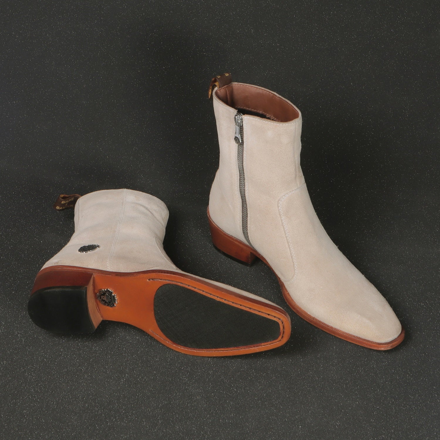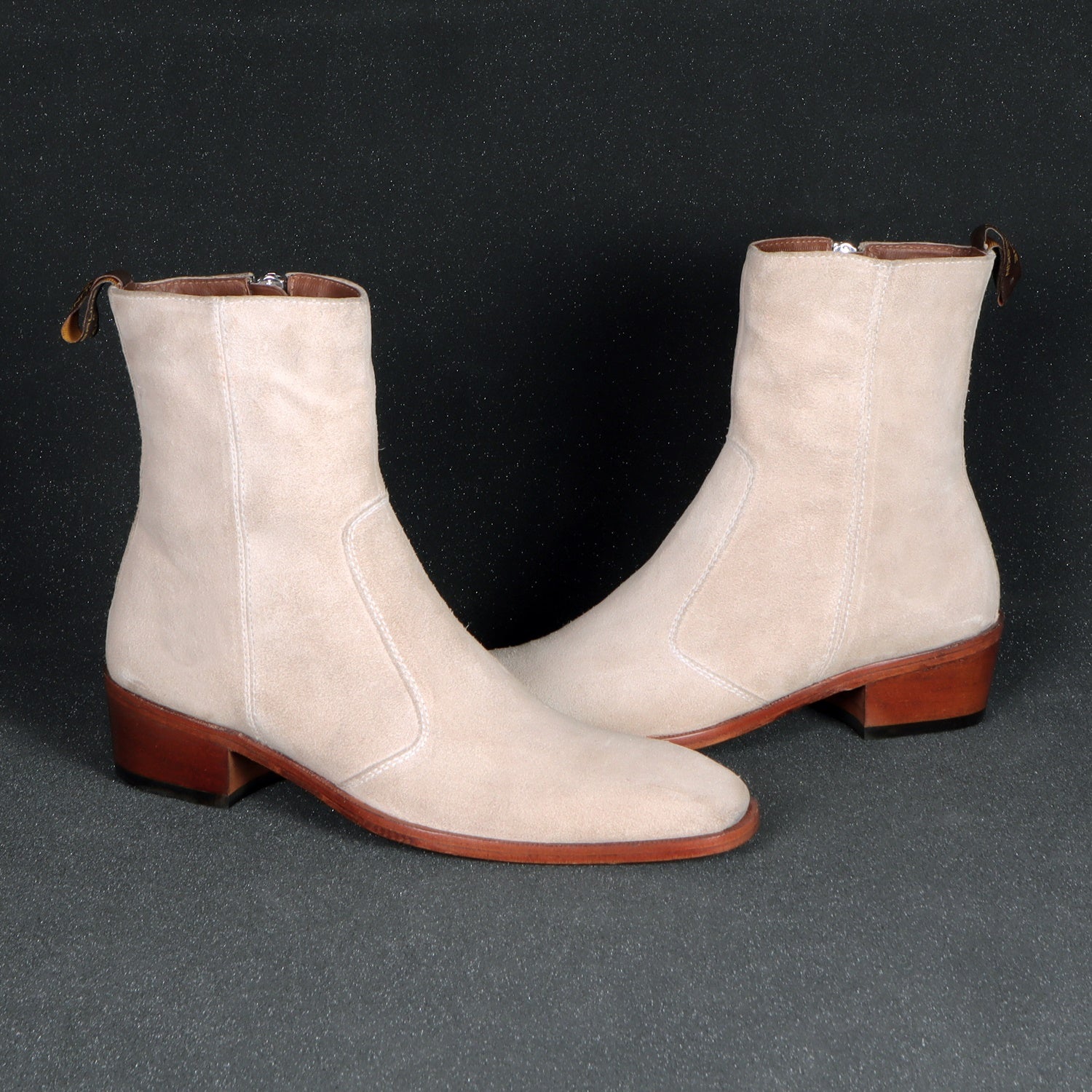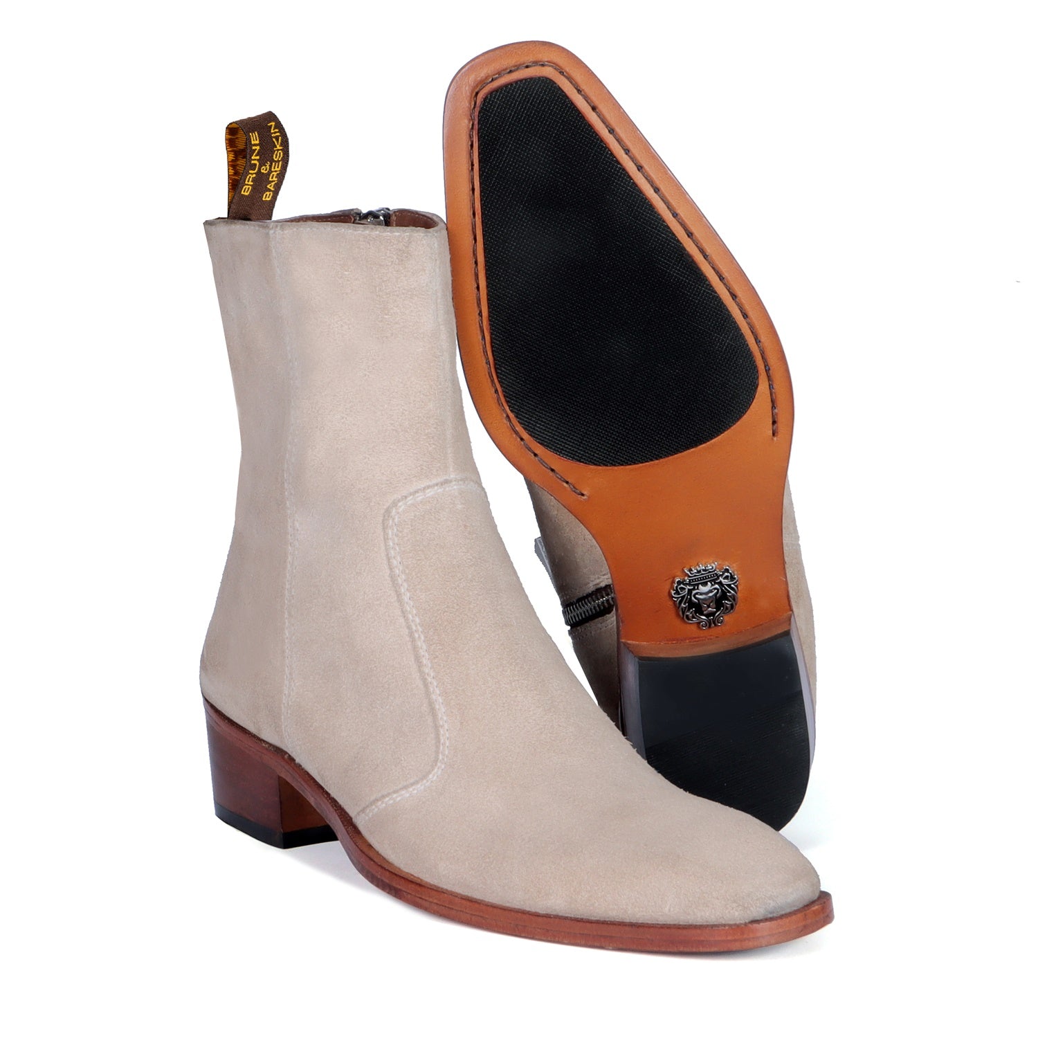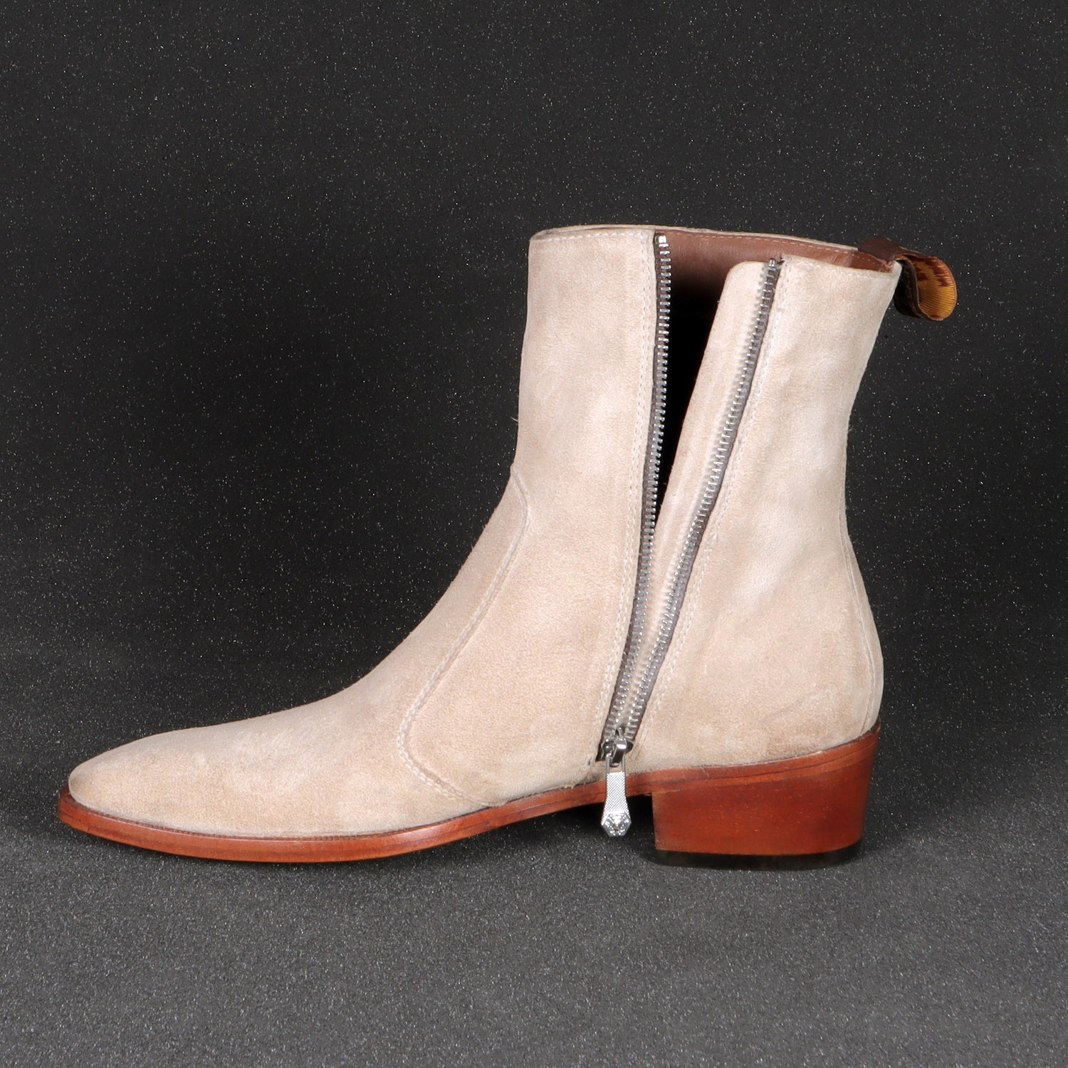 Beige boots in Suede Leather is always an elite choice for a formal occasion. We craft these high ankle Beige suede leather boots to give you an elite look. The stitched detailing on the quarter looks classy. The golden zip closure on inner side provides an extra ease to wear these exquisite boots. The pure leather sole & Cuban heel offers great comfort. Cuban Heel(40MM) Essentially, it is a straight, medium-high heel with a slightly curved back. This is one of a kind Chelsea boot with a perfect Cuban heel. You can customize this chic boots in any of your favorite color according to your attire with our bespoke services.