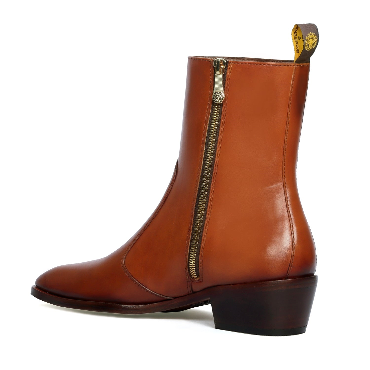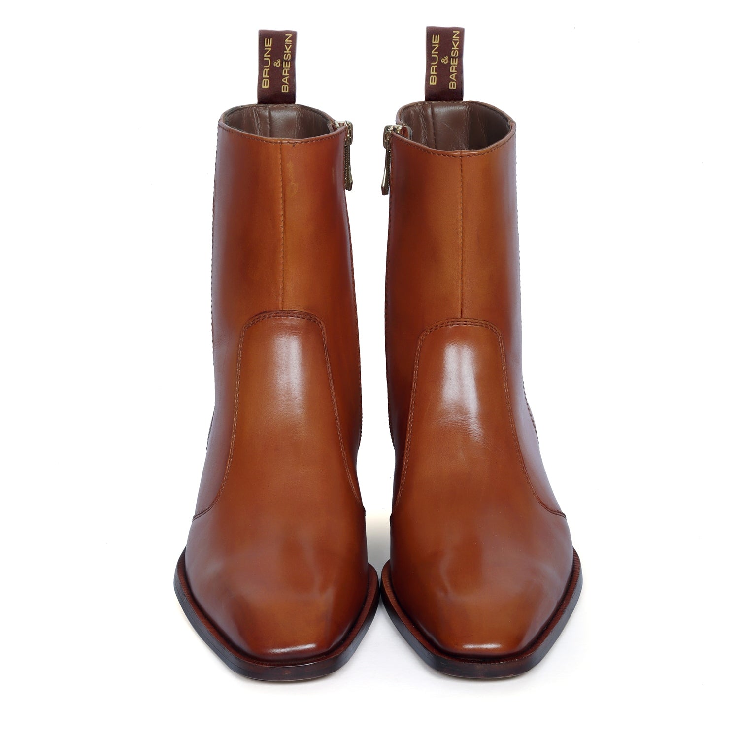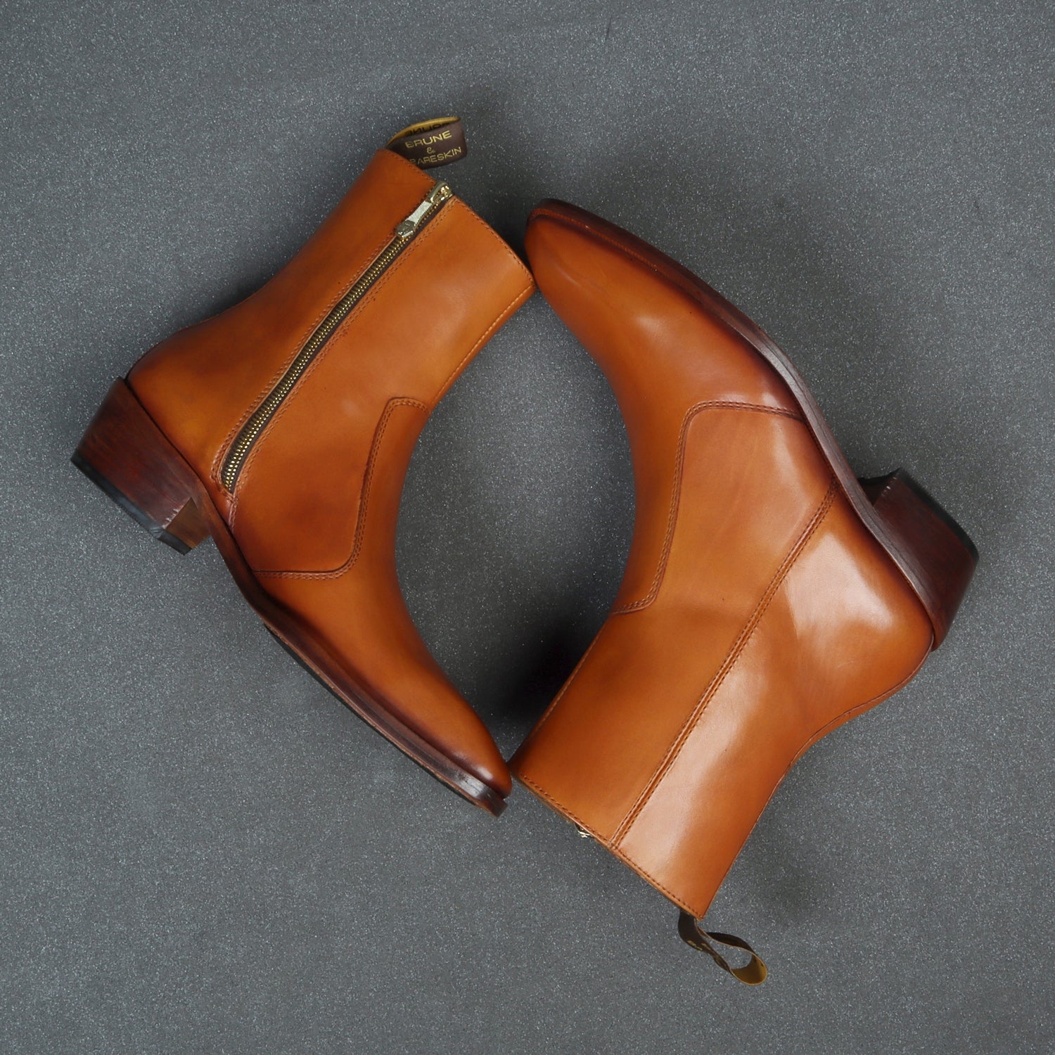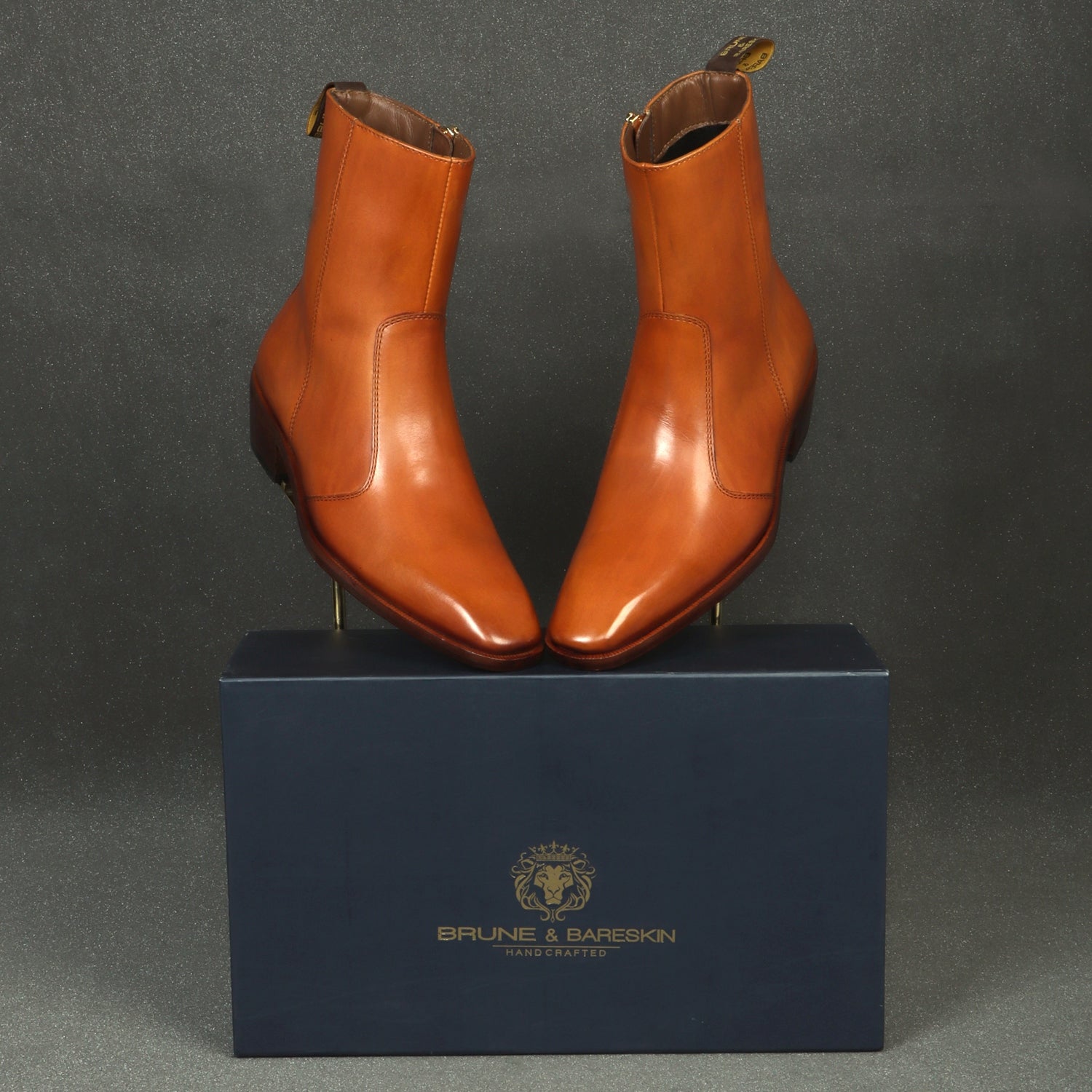Perfect Cuban Stitched Tan Boots High Ankle Zip Closure By Brune & Bareskin