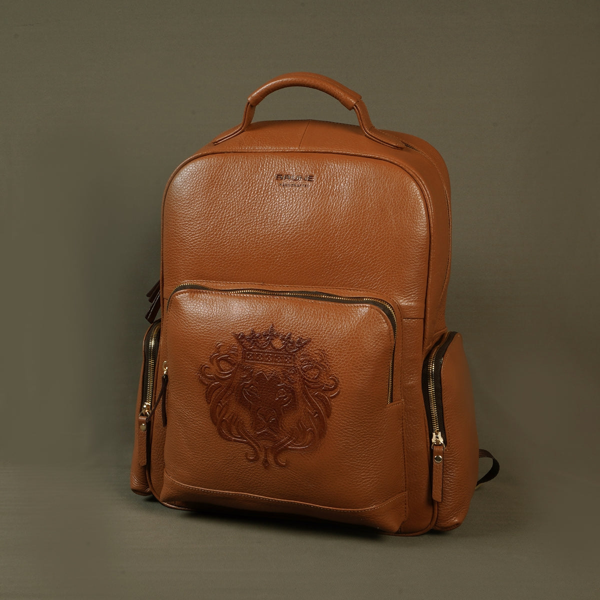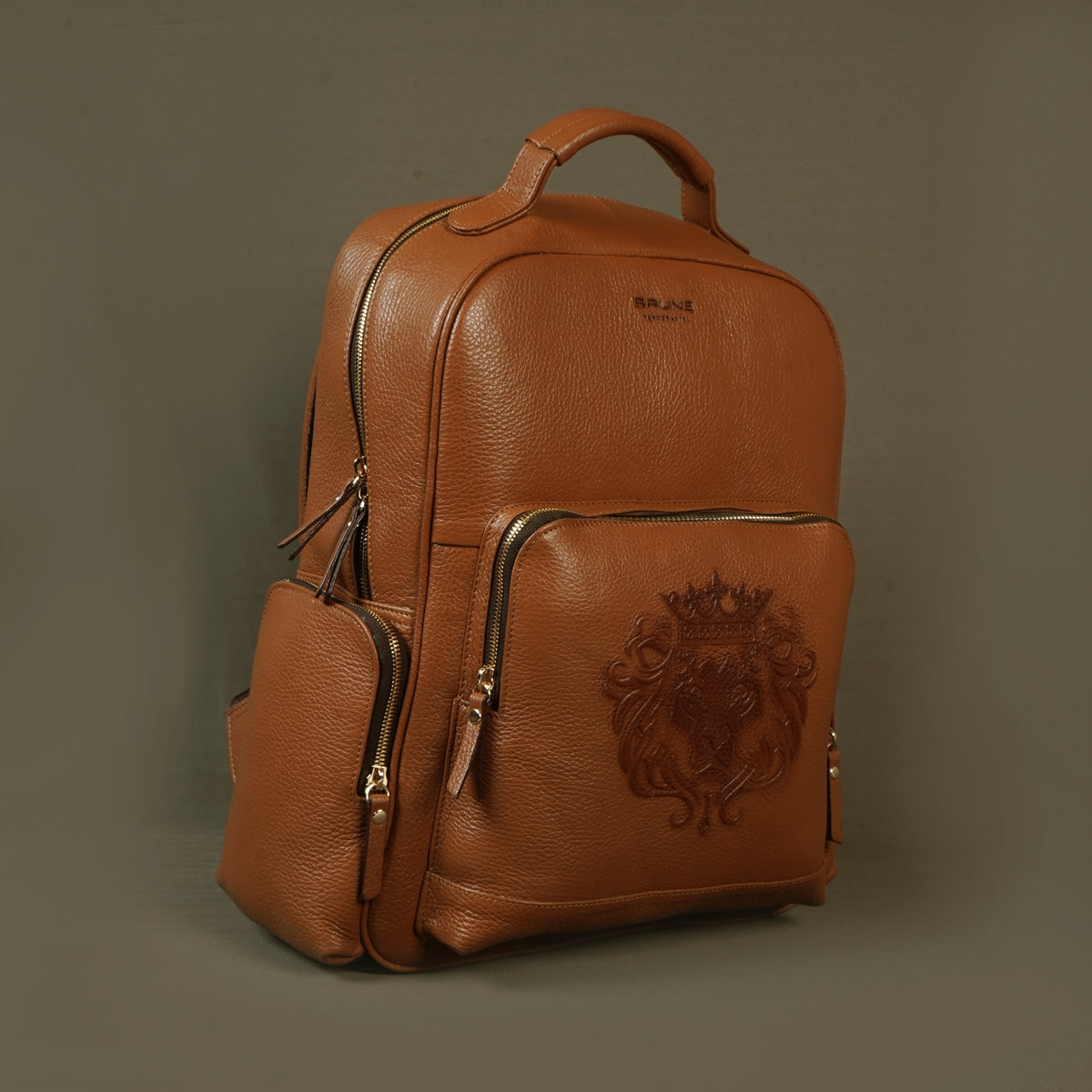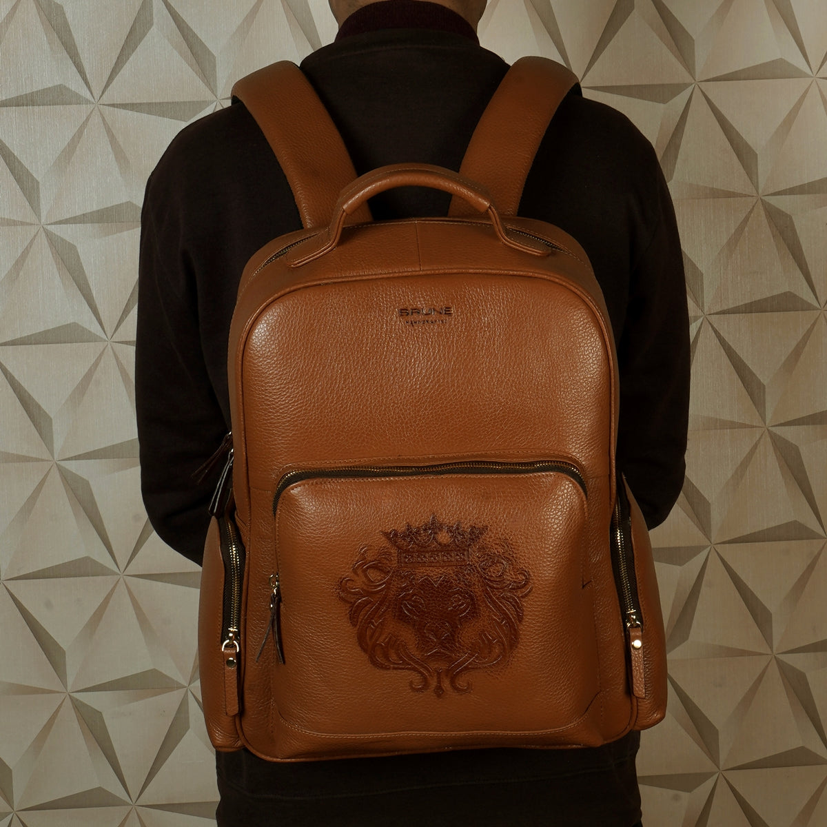 Perfect Handmade Large Tan Backpack Textured Leather Signature Lion by Brune & Bareskin
