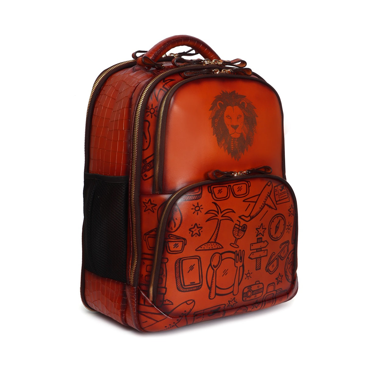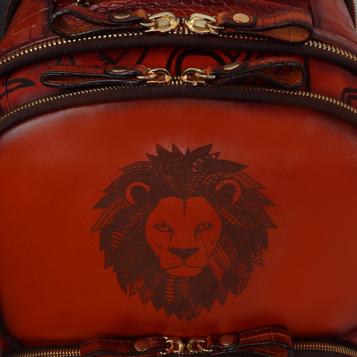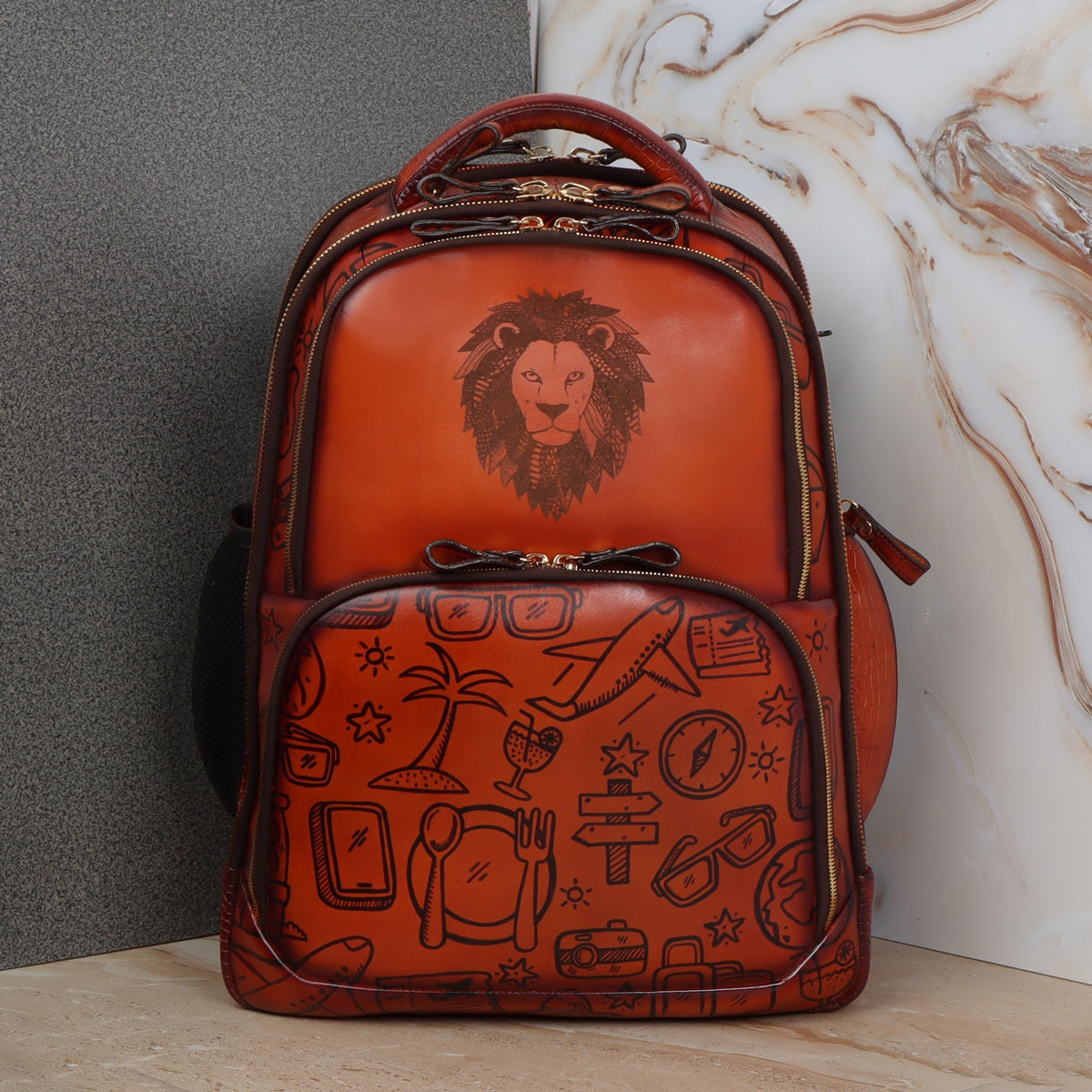 Personalized Laser Lion Hand Painted Doodle Art Tan Leather Backpack By Brune & Bareskin