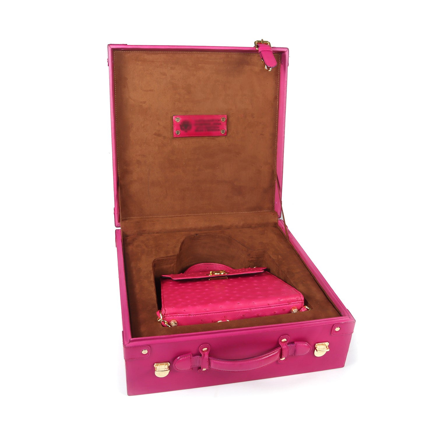 The Pink Leather Case from Brune & Bareskin is the perfect accessory for your wardrobe. This luxurious case is handcrafted from high-quality full grain leather and features an embossed lion logo on the front. With its dual mechanism push button lock and extra security, your handbag will stay protected and stylishly organized.