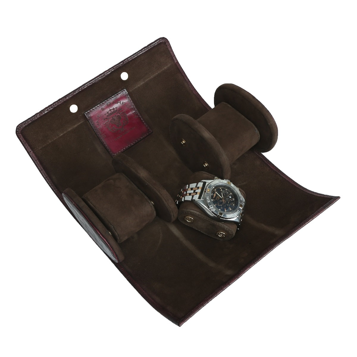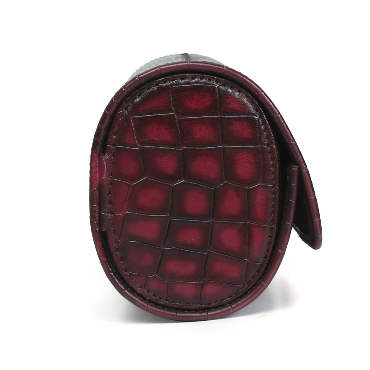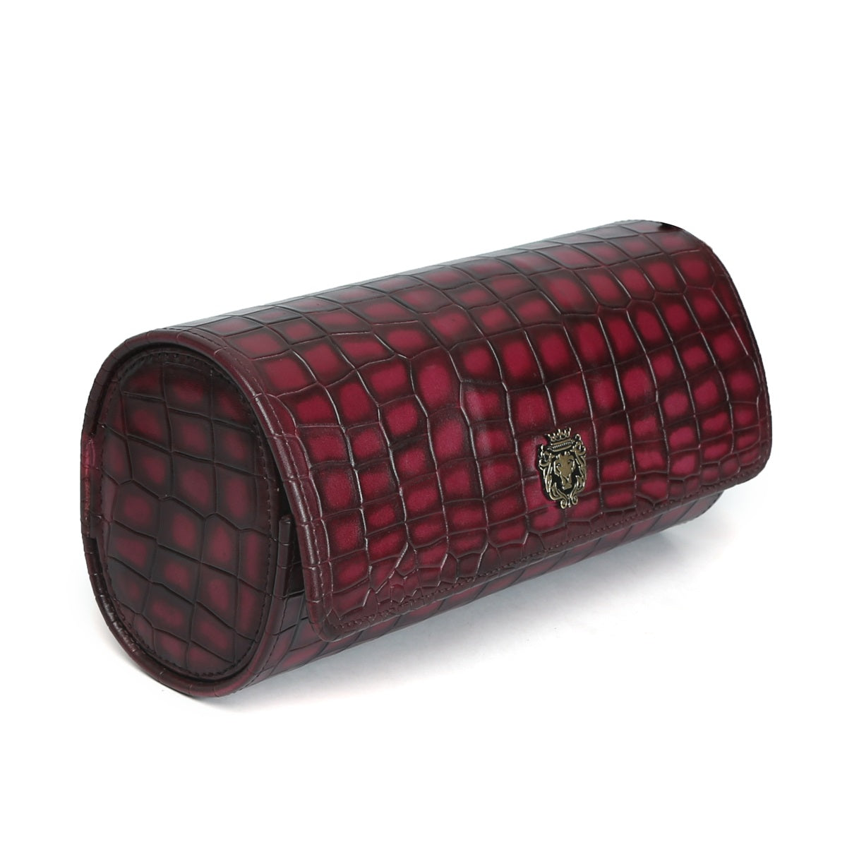Pink Smokey Finish Deep Cut Croco Leather Wrist Watch Roll by Brune & Bareskin