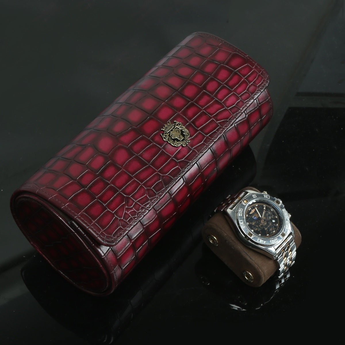 Precisely crafted deep cut croco leather watch rolls for 3 watches by BRUNE & BARESKIN is a perfect travel accessory. It is one of the most sophisticated & luxurious watch accessory you can buy in genuine leather. It keeps your watches safe & secure with a stylish appearance. It has two detachable pallets to fix watch in cover. Buy this branded watch roll in your favourite color as we provide color customization & name Initials options also.