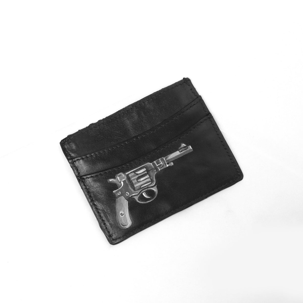 Pistol Hand Painted On Black Leather Card Holder by Brune & Bareskin
