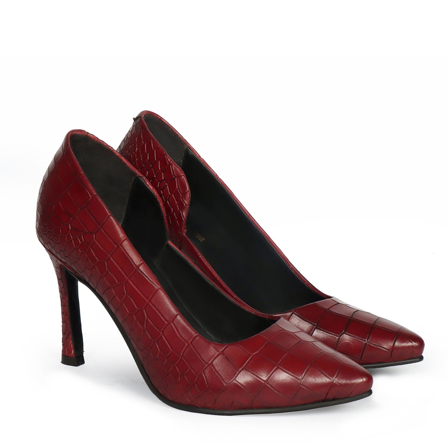 Pointed Toe Croco Textured Chic Wine Sleek Stiletto Ladies Pencil Heel By Brune & Bareskin