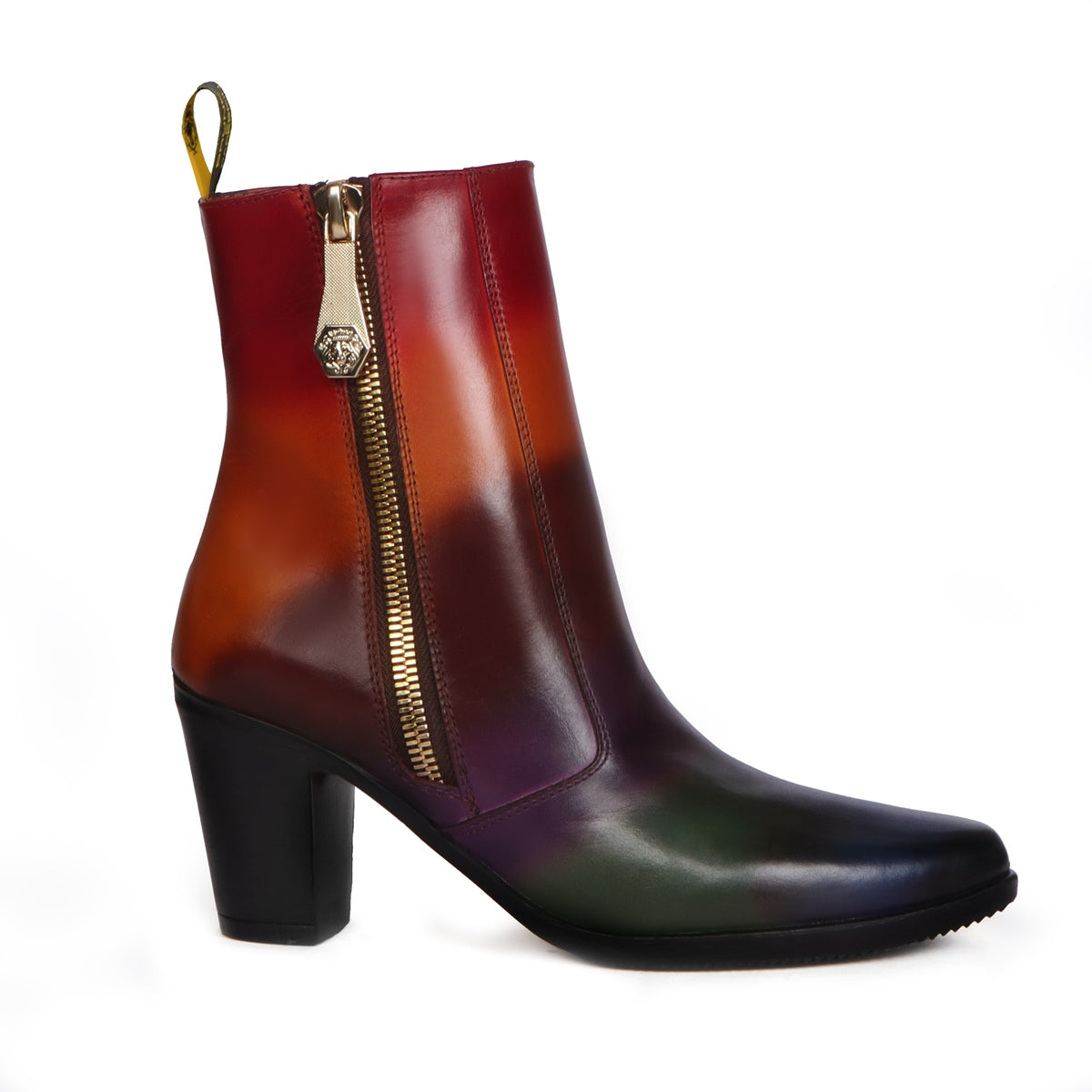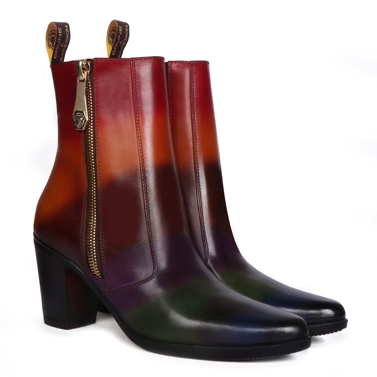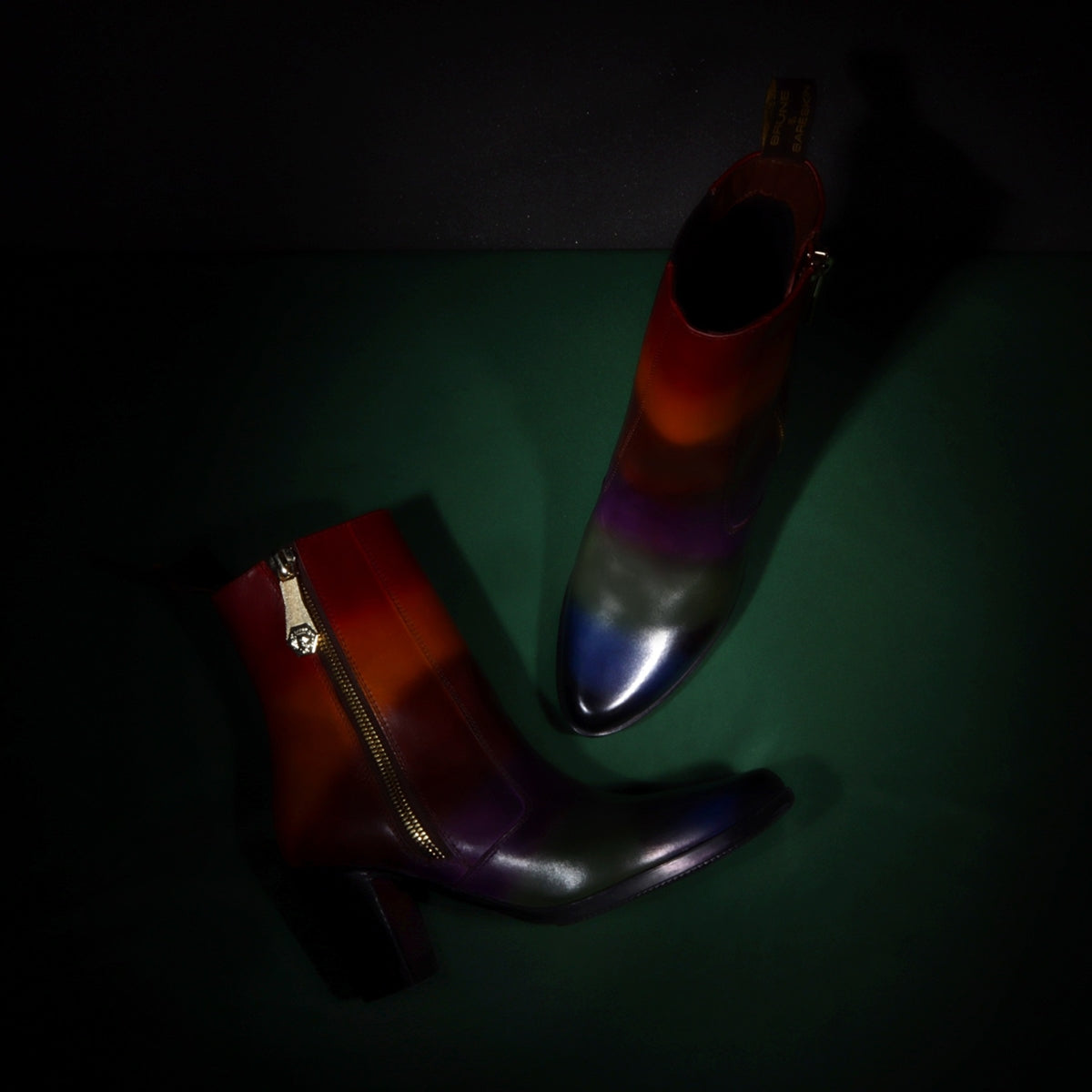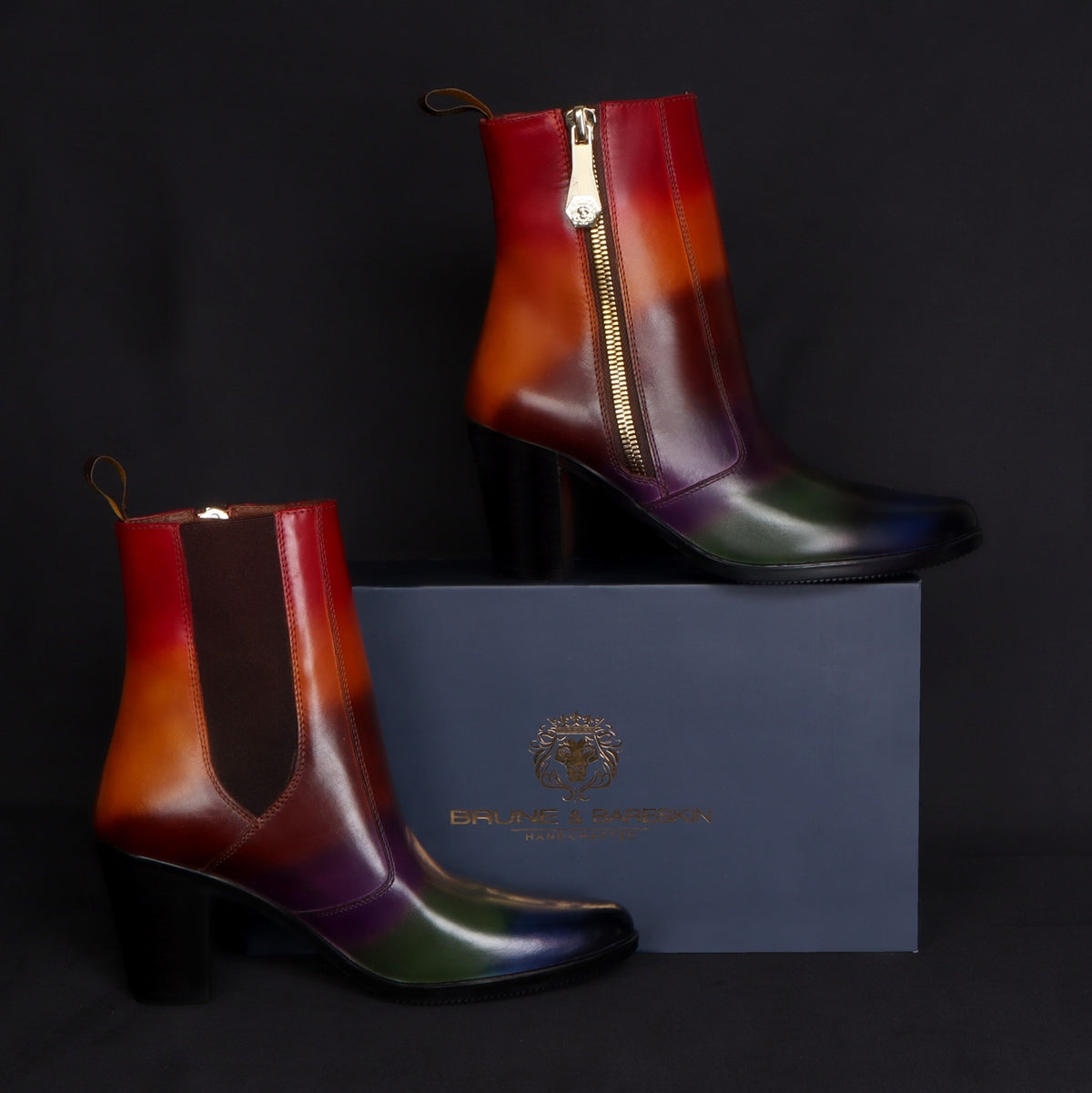Multi Colored Leather Ladies Blocked Heel Boots Pointed Toe Zip Closure by Brune & Bareskin