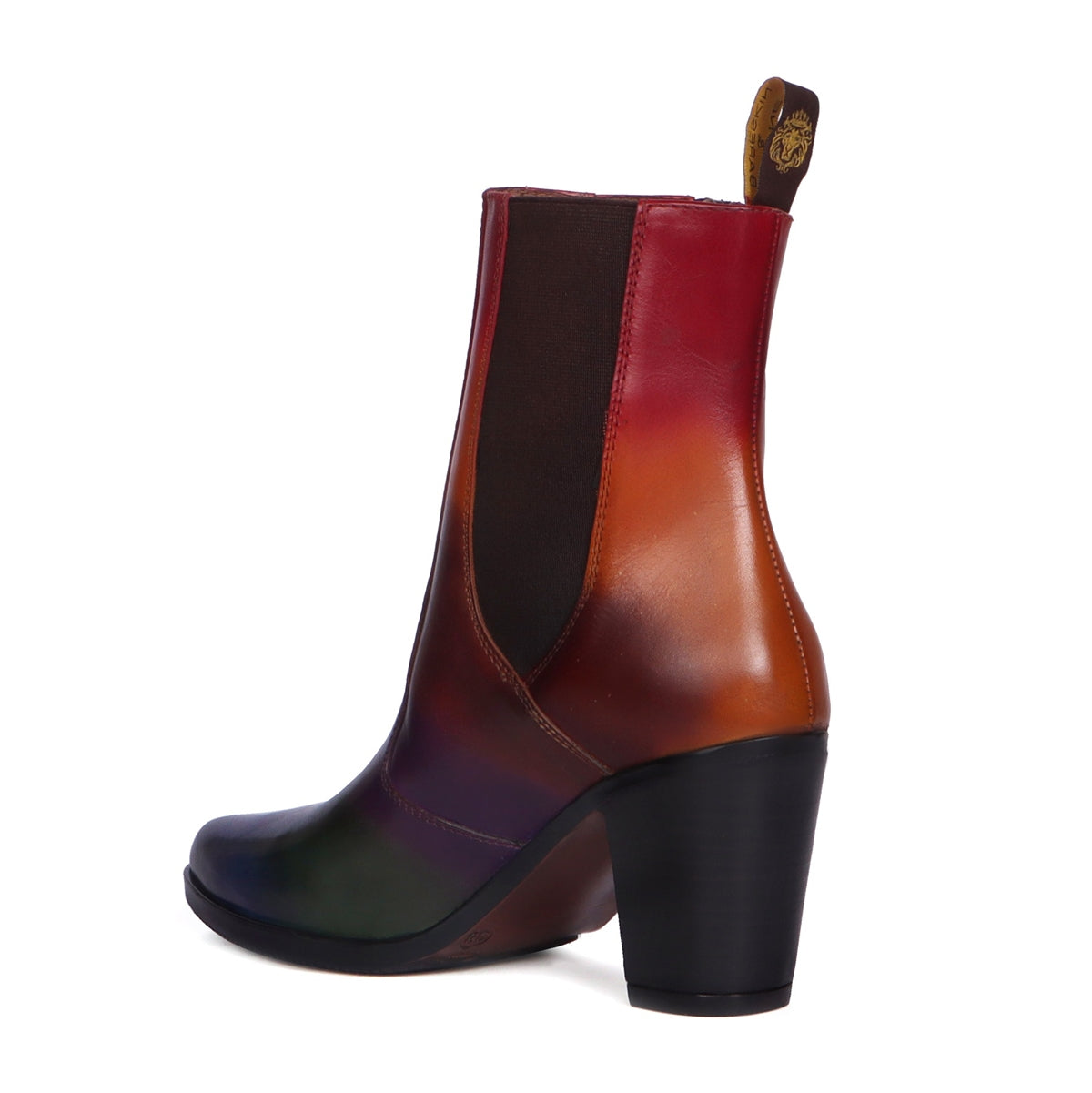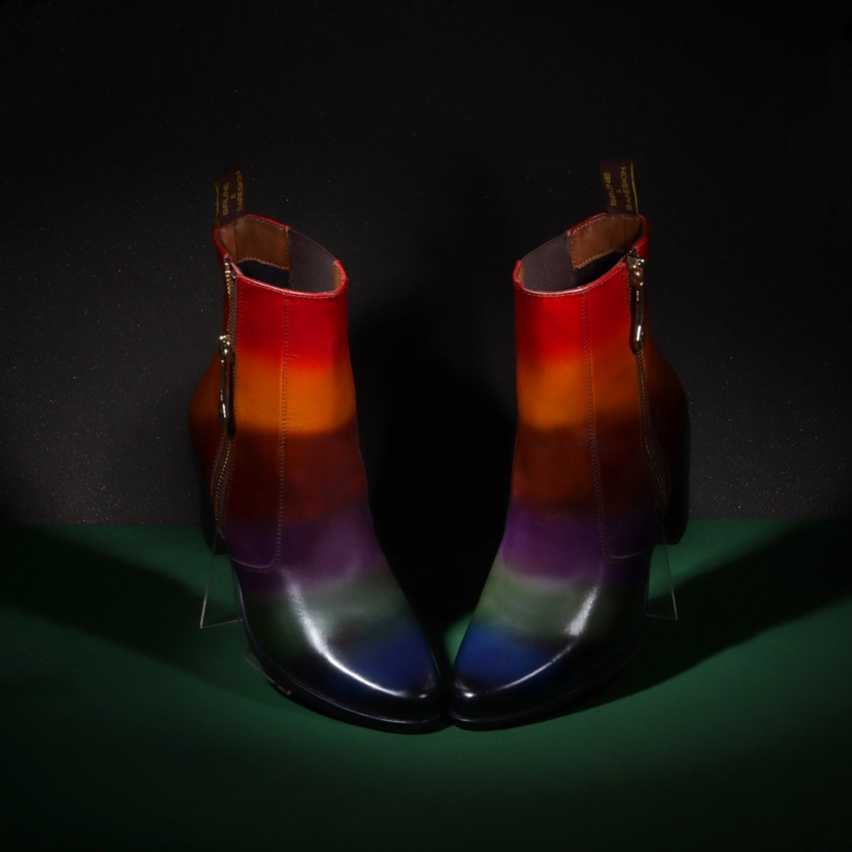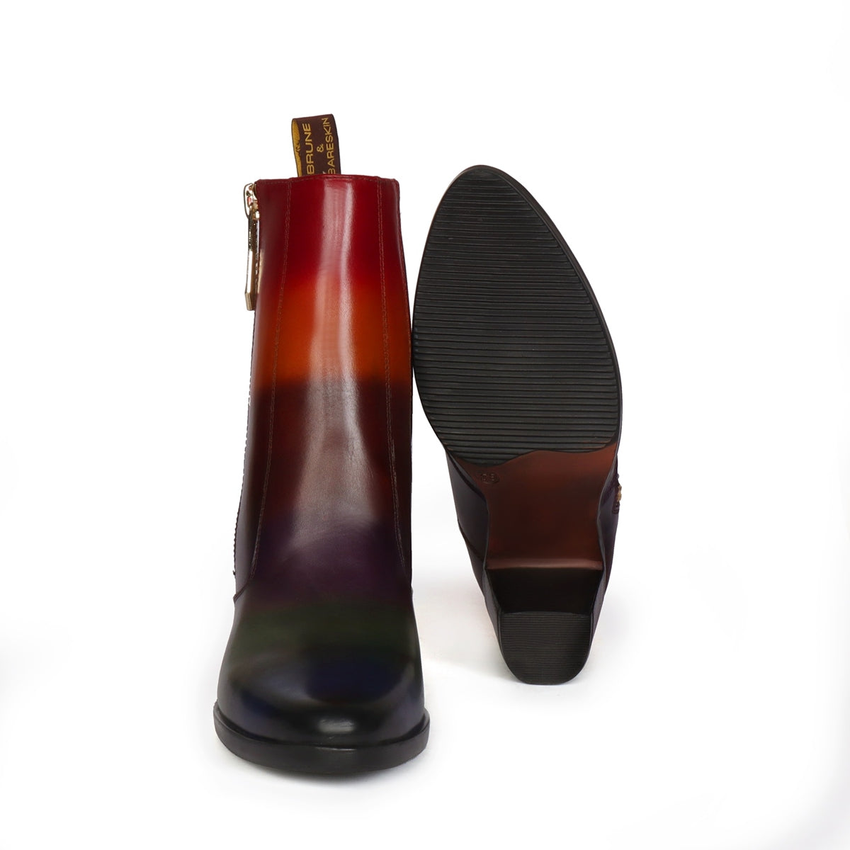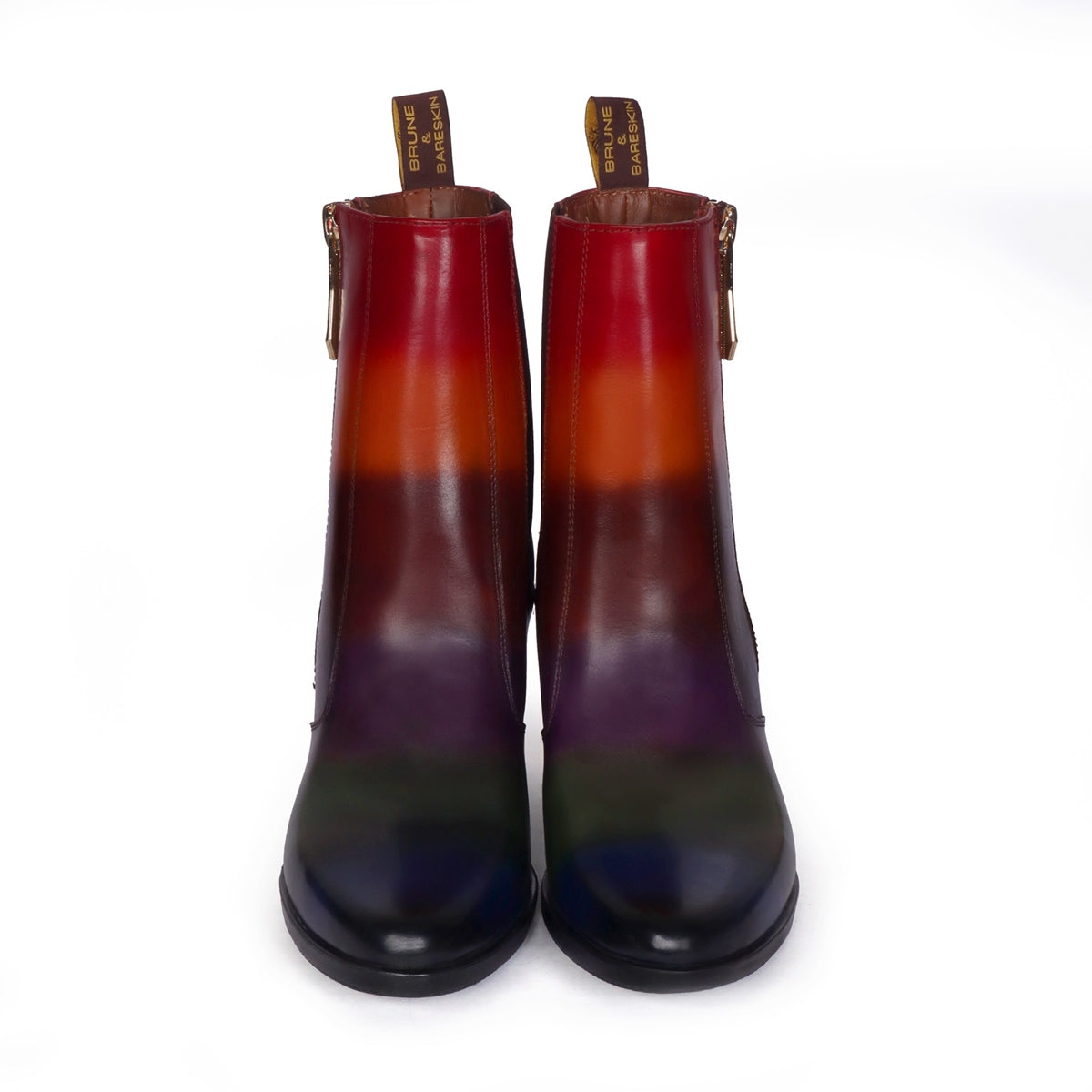Multi Colored Leather Ladies Blocked Heel Boots Pointed Toe Zip Closure by Brune & Bareskin