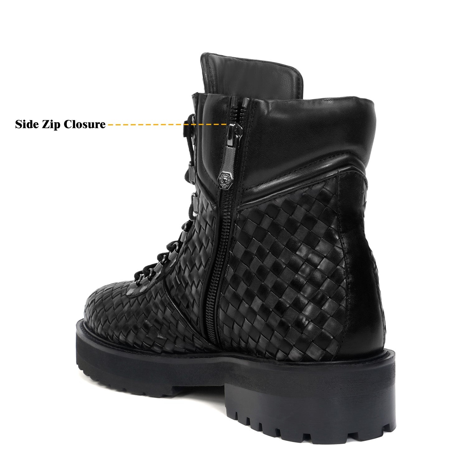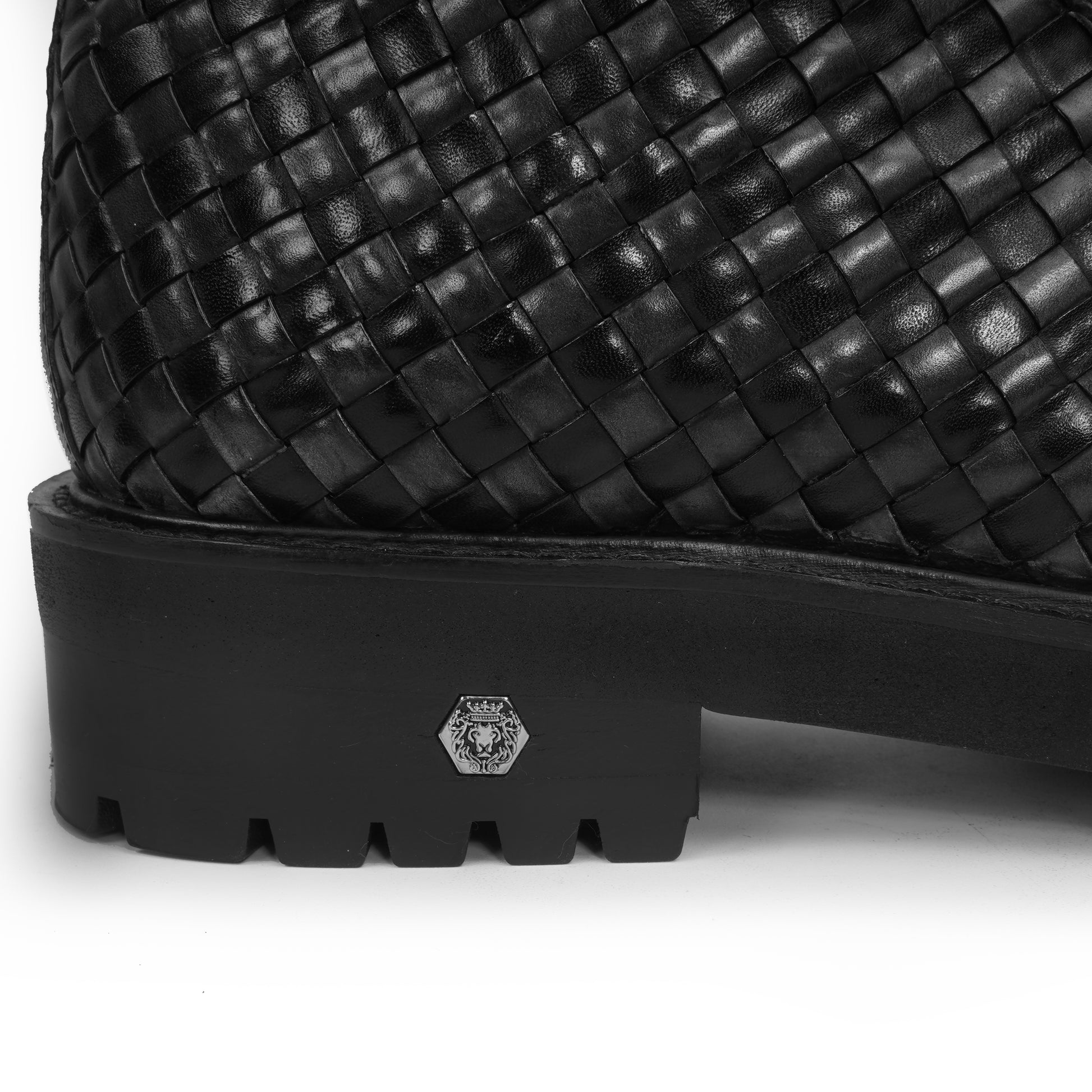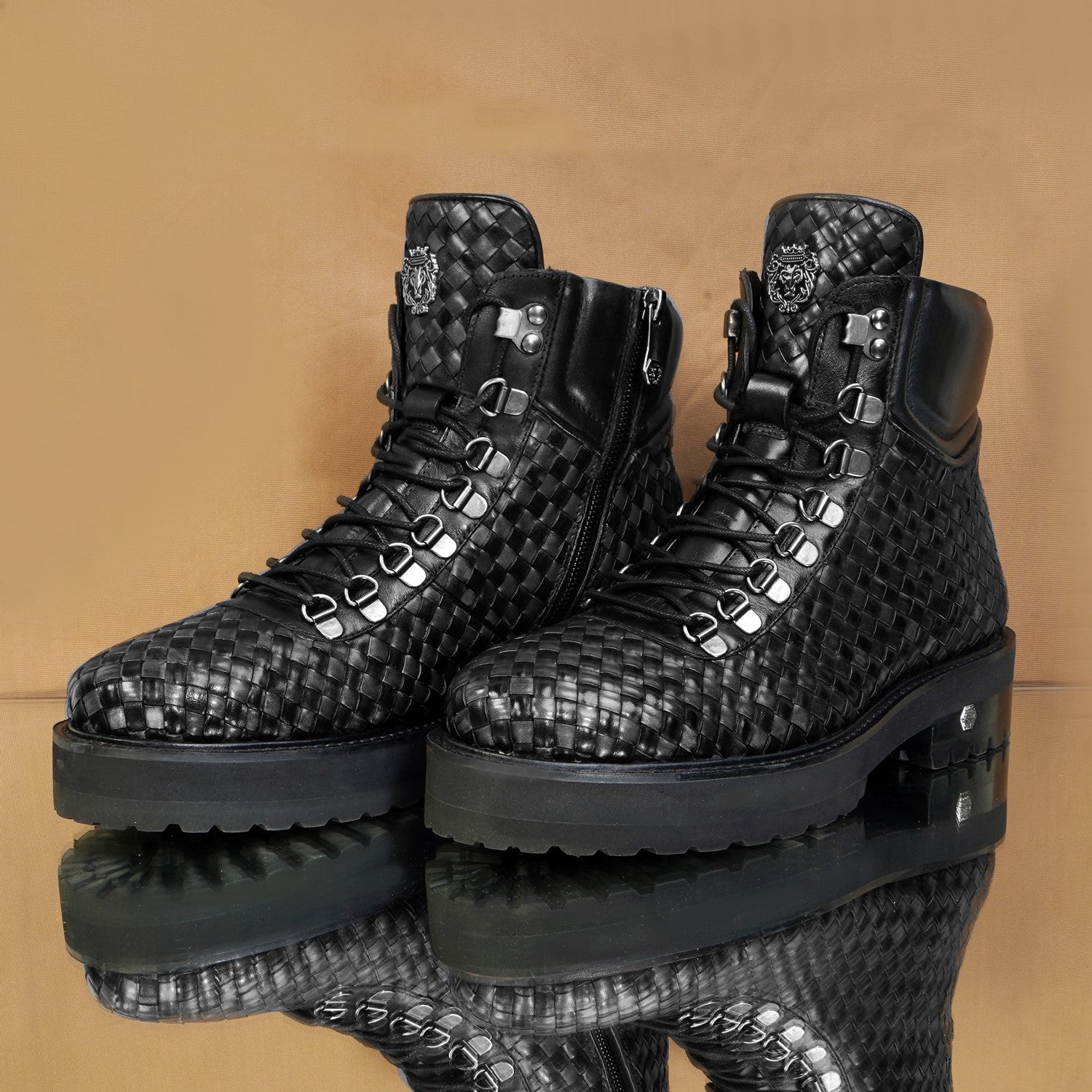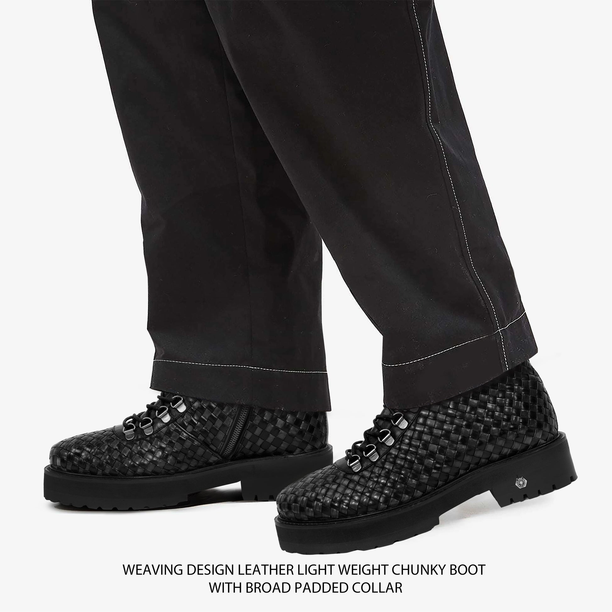 Premium Black Weaved Pattern Leather Lightweight Chunky Boots