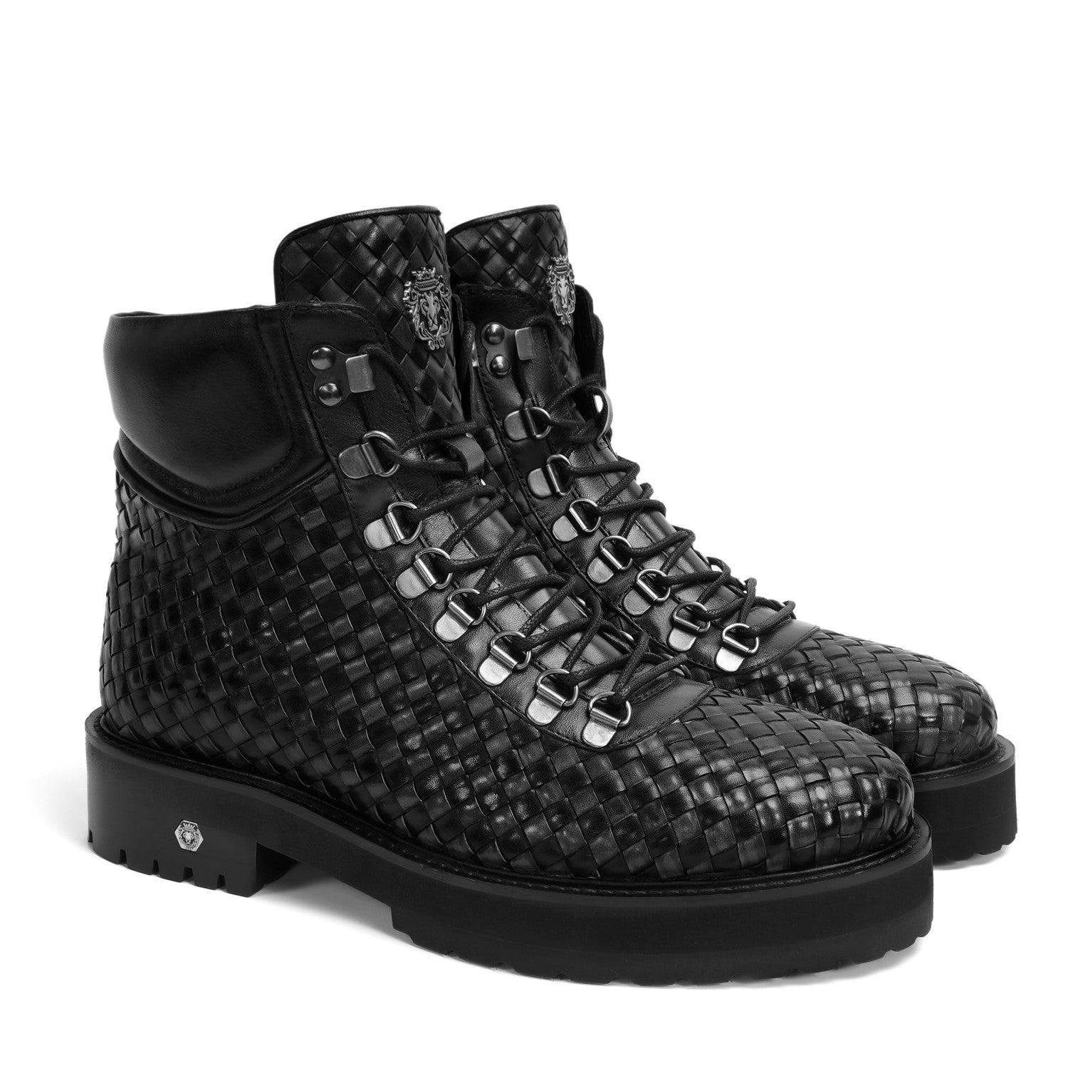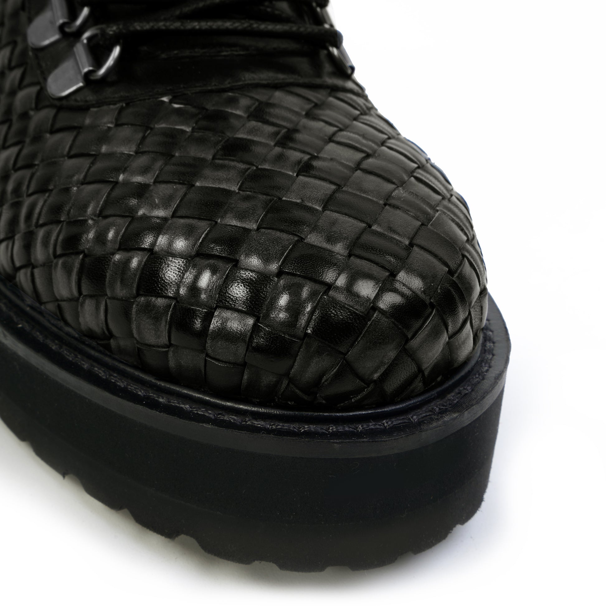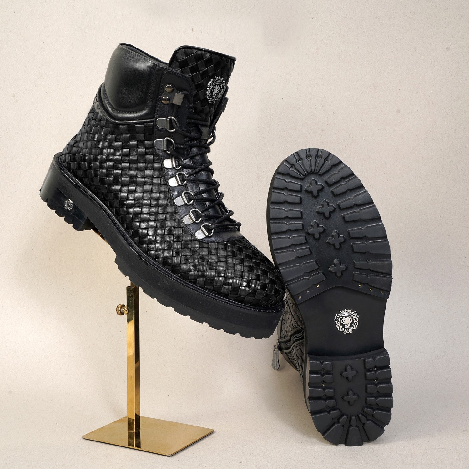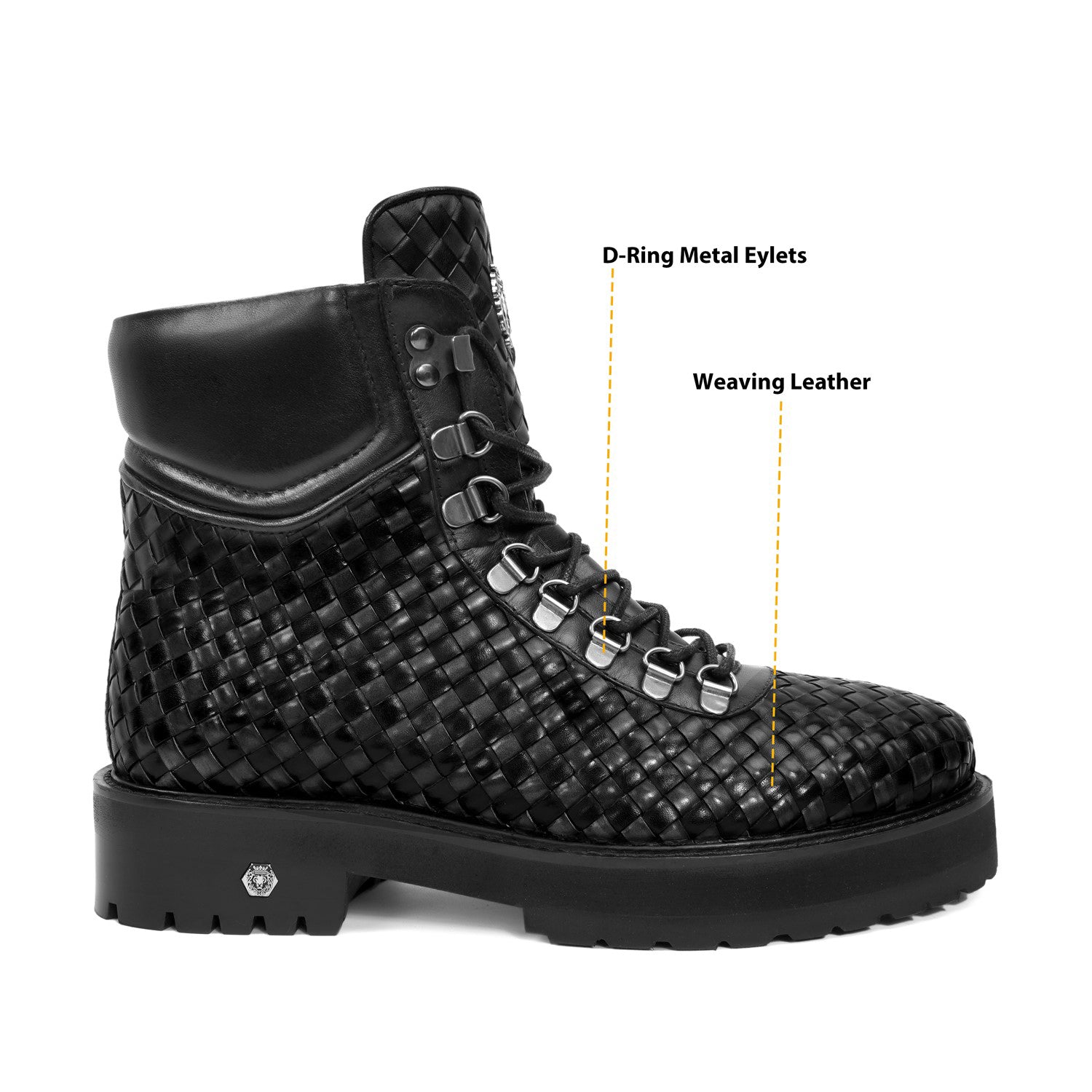 Premium Black Weaved Pattern Leather Lightweight Chunky Boots