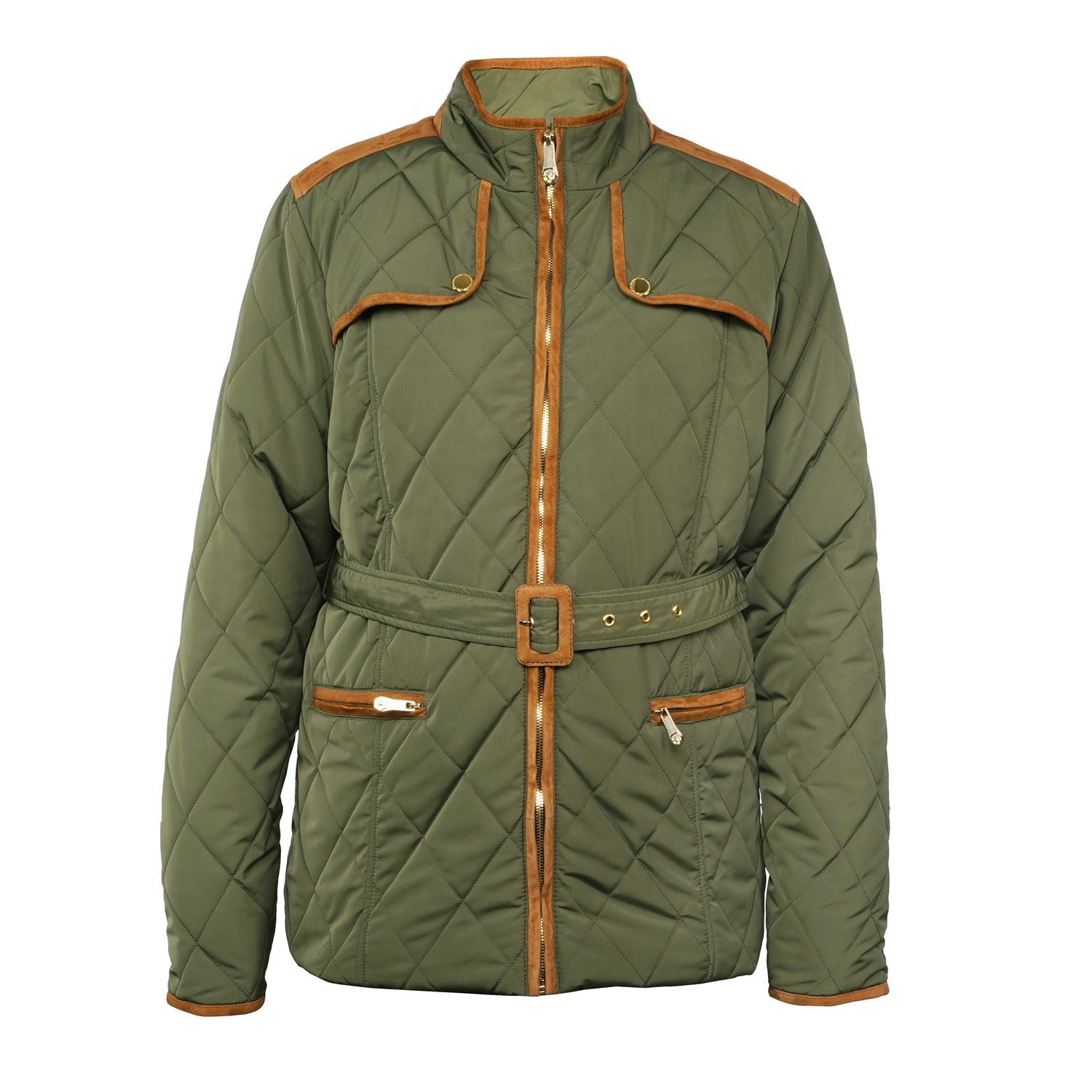 Premium Green Leather with Suede Detailing Puffer Waist Belt Jacket