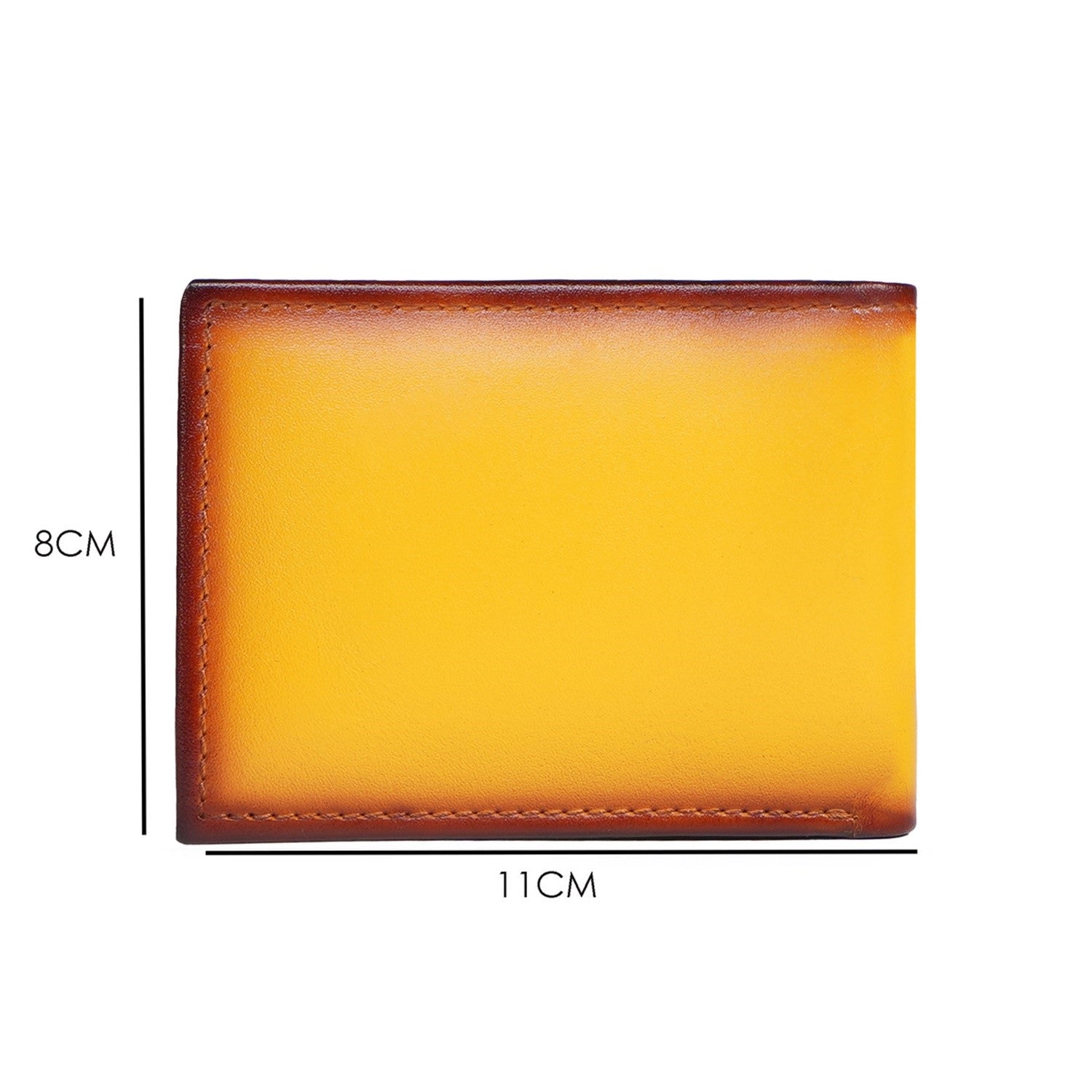 When your favoritism reaches that level, where you can not live without it. This handsome Yellow leather Bi-Fold wallet is handmade from the finest veg. The bi-fold opening wallet features two main pockets along with a small security pocket on both sides. Yellow leather with a polyester lining and features 2 card slots on Both sides, and two full-length pockets for notes. It has a total of 6 pockets, which makes it a perfect buy for today's generation. We are giving personalized options to choose your choice of color itself. You can click on CUSTOMIZE NOW Button (Just above the "ADD TO CART" button) & fill out the form to submit your customization requirements. Or you can reach us by Call, Email, WhatsApp, and DM.