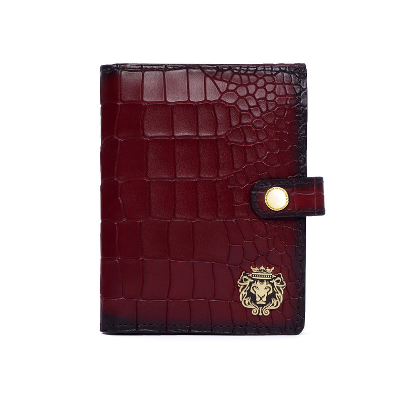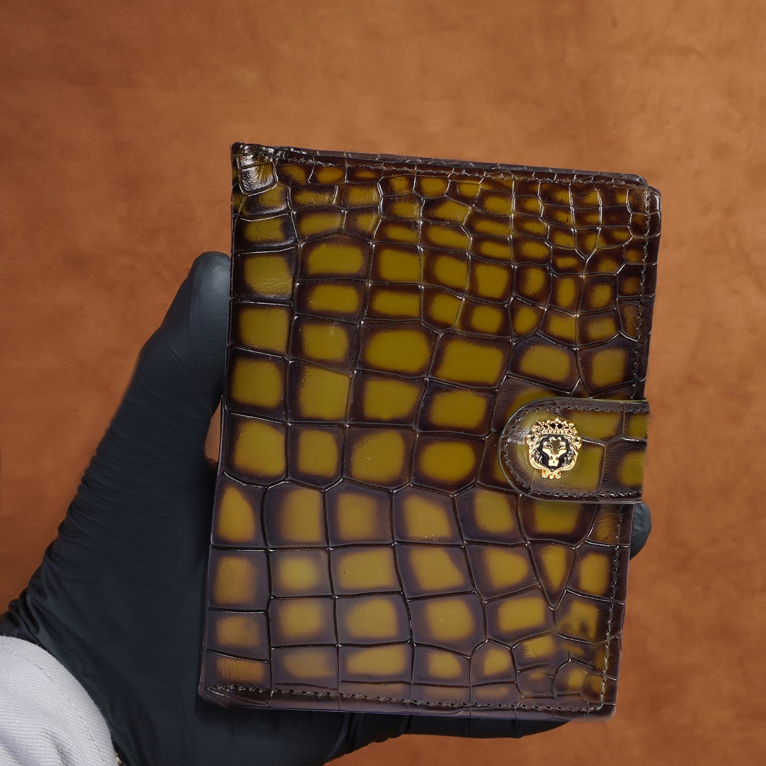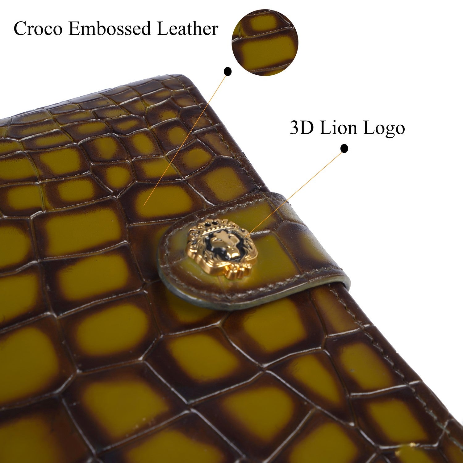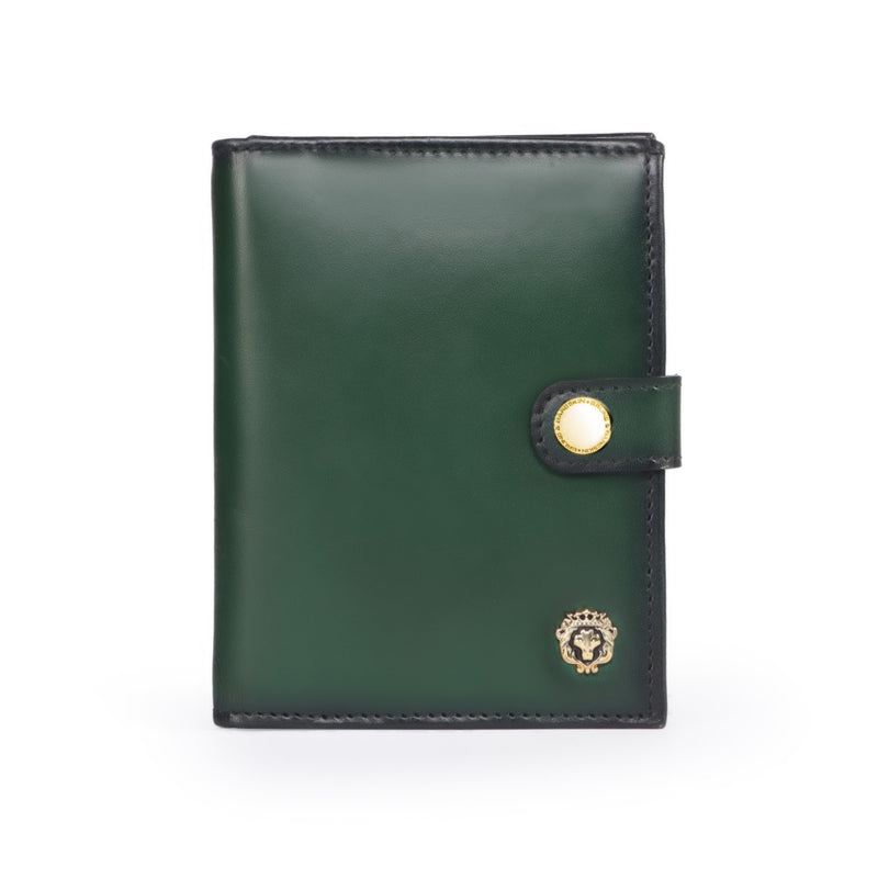 Premium Olive Leather Passport Holder with Foldable Boarding Pass is a sleek, jet-set essential handcrafted olive green full-grain leather boasting subtle embossed croco or pebbled texture for luxurious depth and a patina that personalizes with travel, featuring precision-stitched edges and a prominent 3D metal lion logo in antique gold